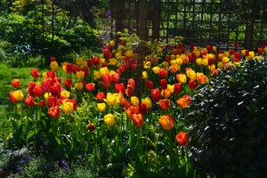 We decided to celebrate the glory of spring by visiting this NGS garden, a one acre modern cottage garden with borders, woodland and ponds. The main features of the garden were the lovely colourful collection of tulips which were at their best when we visited.