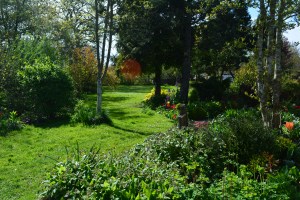 Throughout the rest of the garden we found relaxed styles of gardening and in places emphasis on enhancing habitats for wildlife and attracting wildlife into the garden. The wildlife pond had an island reached by a narrow wooden bridge.