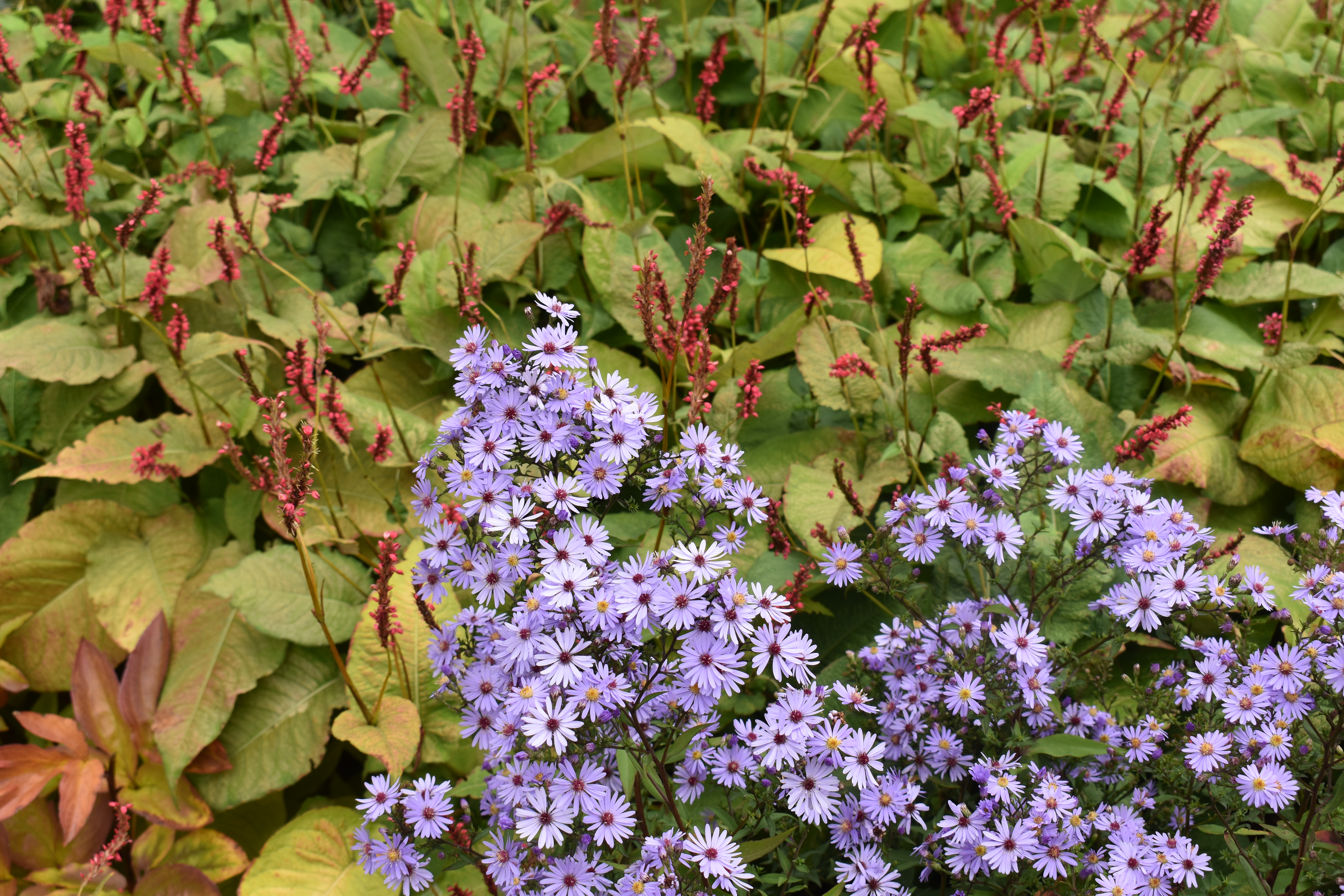 More colourful perennials star on the following page where I noted that,“One of the shining stars of our borders this month is the Aster family. There are so many available and we grow quite a few. I still use the name Aster as I am not sure about all the name changes imposed onto gardeners by the DNA botanists. They show no respect for gardens, plant hunters and us gardeners.”