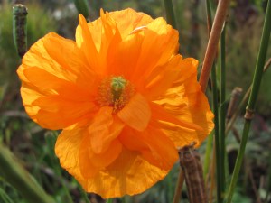 When it opens it is an orange sun. It outshines whatever sits alongside it. As a self-seeder it appears in different places each year – where it chooses not where we choose. It is better than us at knowing good neighbours.