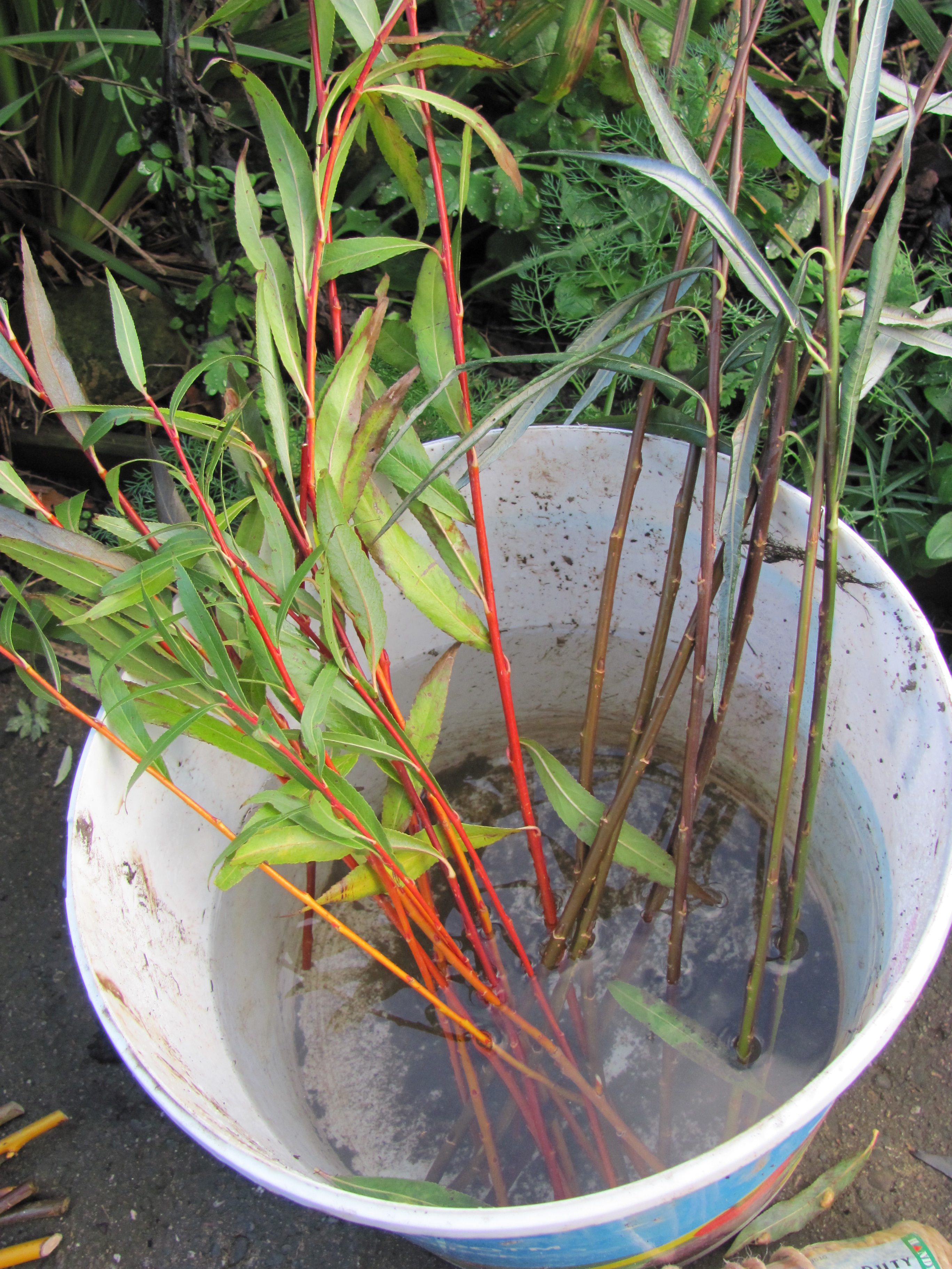 The whispier stems of the willows provided cuttings to strike in a bucket of water – oh so simple.