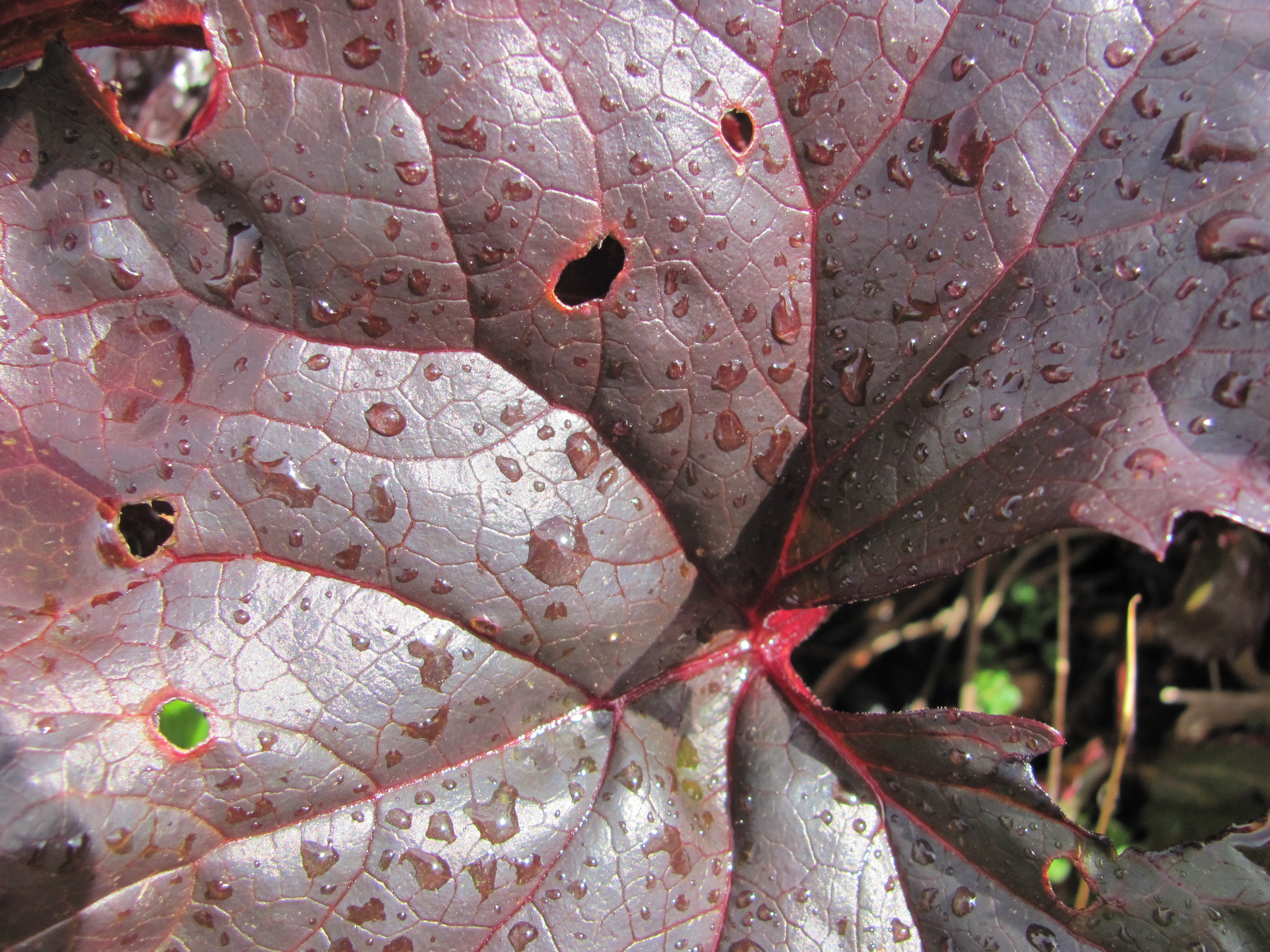 Rain sits in shining droplets acting as tiny mirrors and prisms affecting the light. Each droplet sits like a bubble of liquid mercury.