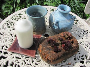 The rain even tried to fill up a pottery vase on the garden table in the Chicken Garden.