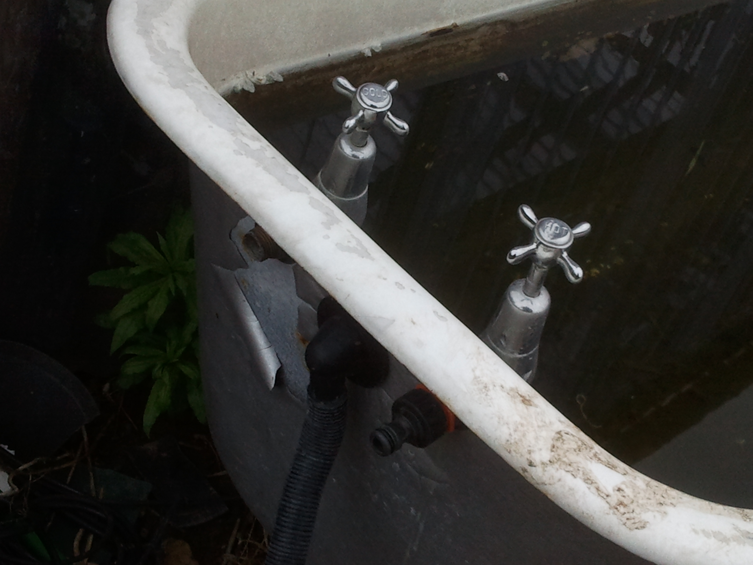 Baths featured on many plots for water storage, this one even retained its tap. Memories of the seventies came flooding back when we spotted the style of the tap.