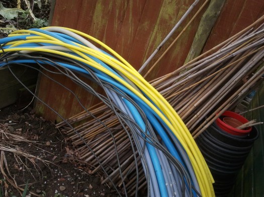 This supply of hoolahoops awaited their turn to be used to support netting that would protect crops from pests.