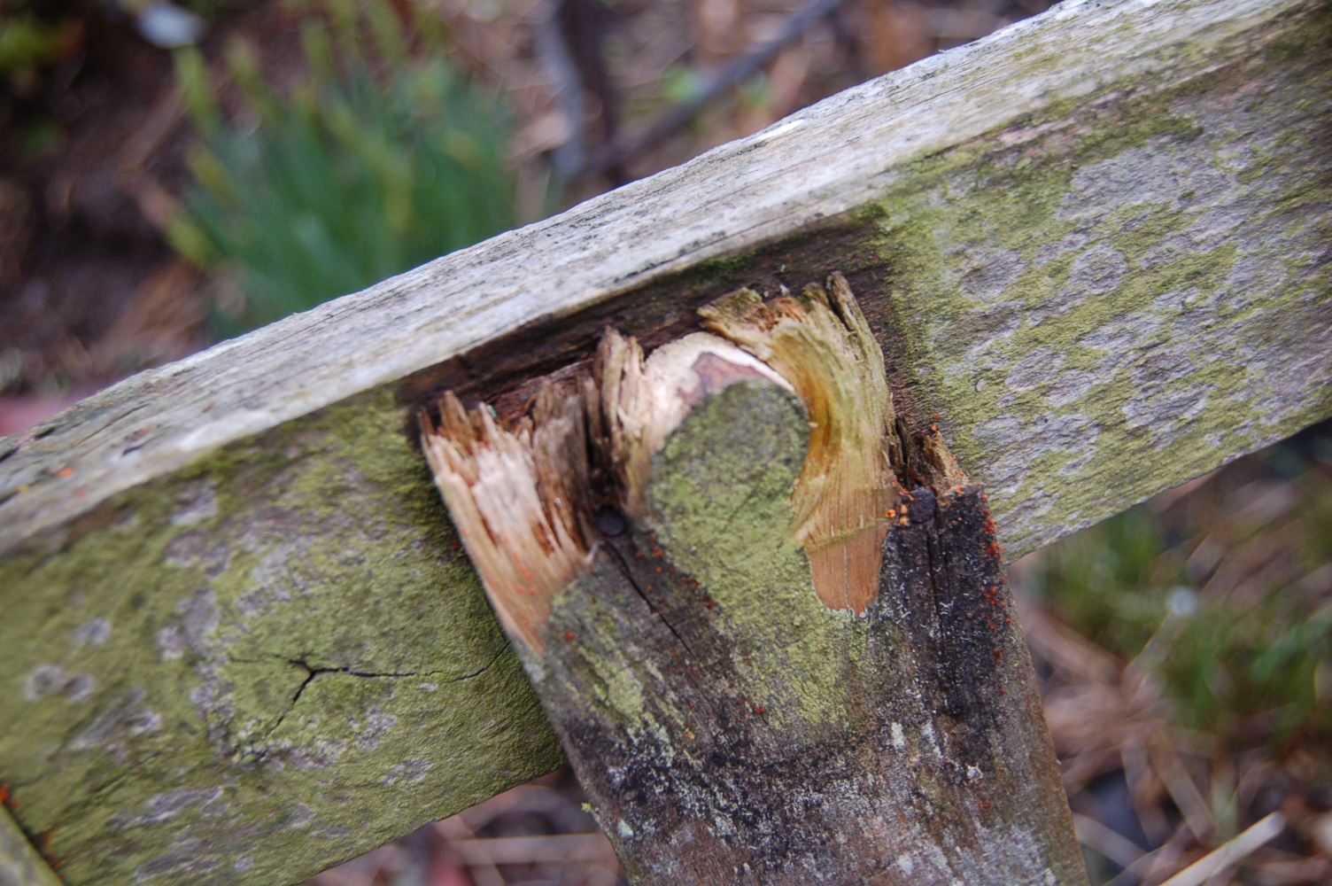 The fence that runs along the bottom of our garden needs replacing. The winter wet and cold has rotted many parts of it.We always regard this part of our boundary as important because it includes the gate which gives us access to the wider countryside and so are eager to keep it in good repair.
