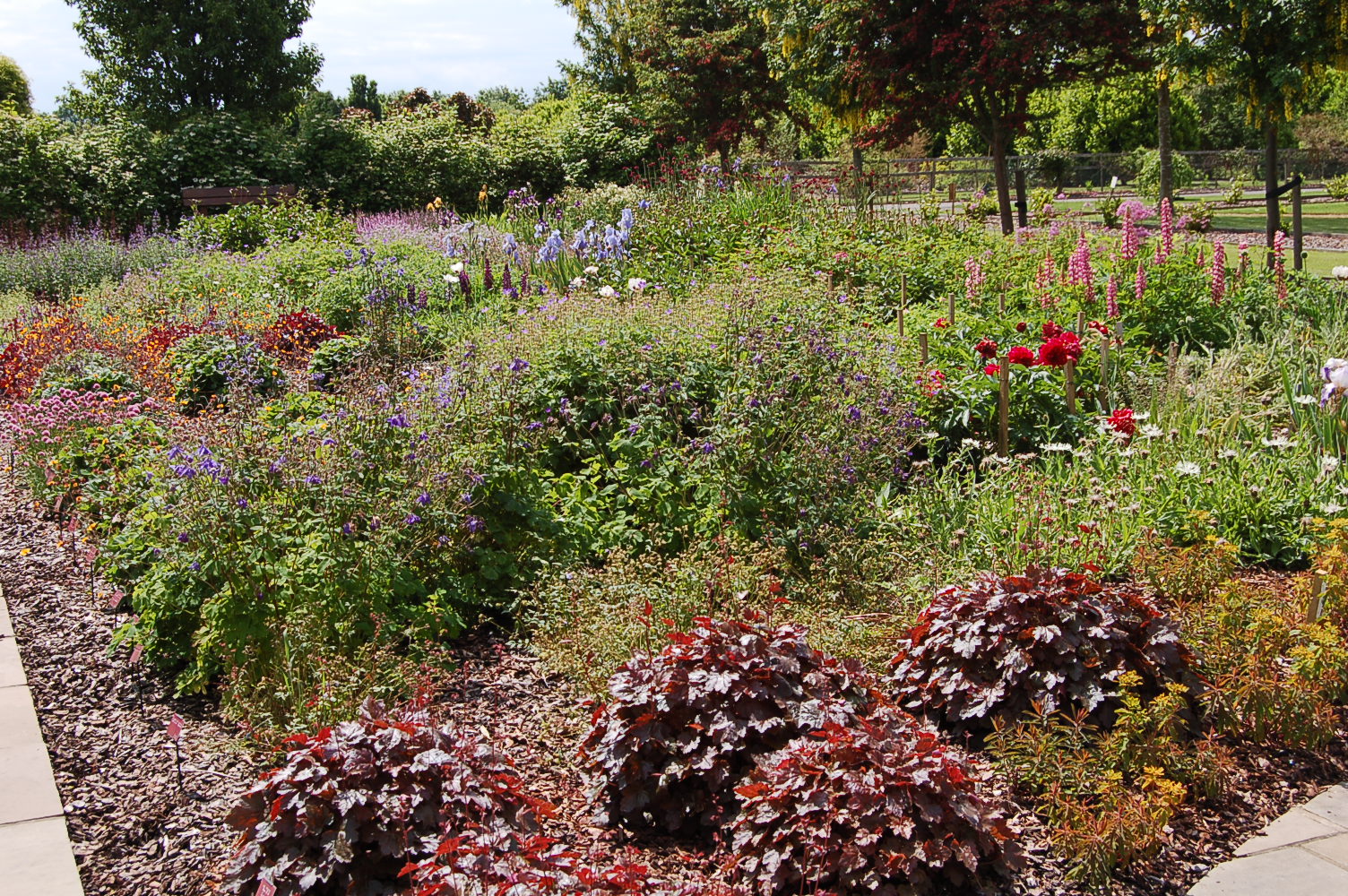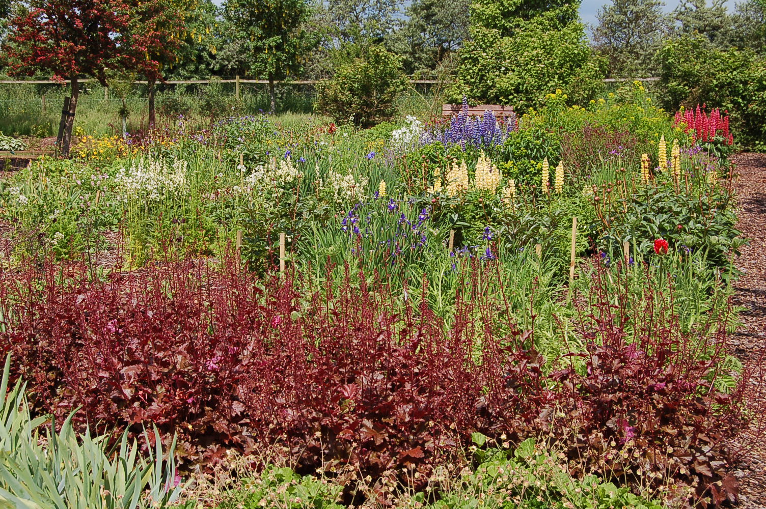 The garden is a collection of small garden rooms displaying different types of garden styles and conditions, from an annual meadow to a rose garden and from raised beds to double borders. The most unusual is the “Rogues Gallery” where garden thugs live together and warn us of their behaviour.