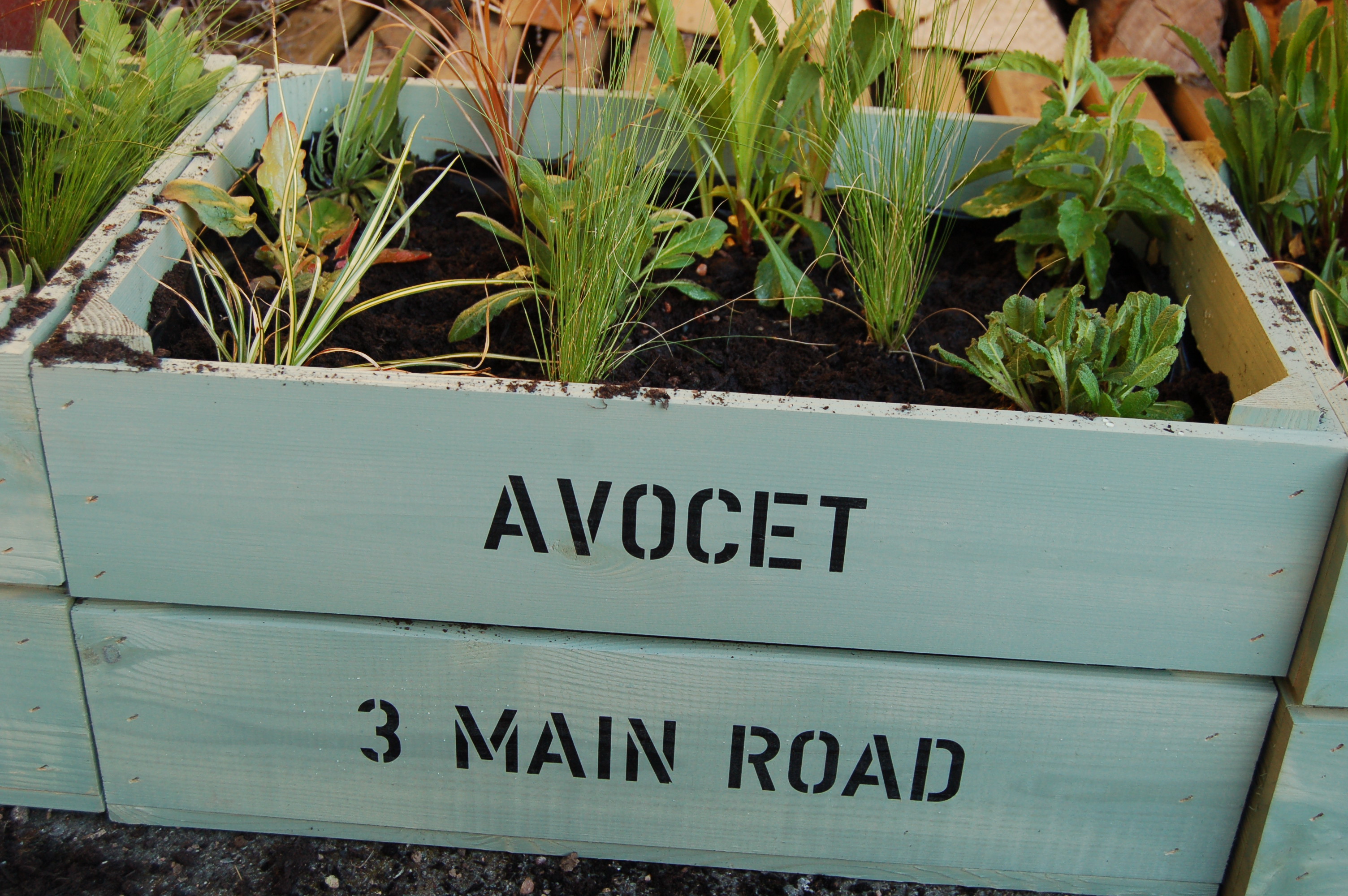 As well as the boxes we had a wooden trug stenciled with the words “born to garden”. This was a saying I first saw when visiting a Yellow Book open garden a few years ago. There the phrase was on a sign cut from wood and displayed on the inside wall of a summer house. I sought out the gardener to ask where he had found the sign but he was unable to help as it was a gift. And I have been looking out for it ever since. when we ordered our personalised boxes it seemed a good opportunity to make our own version.
