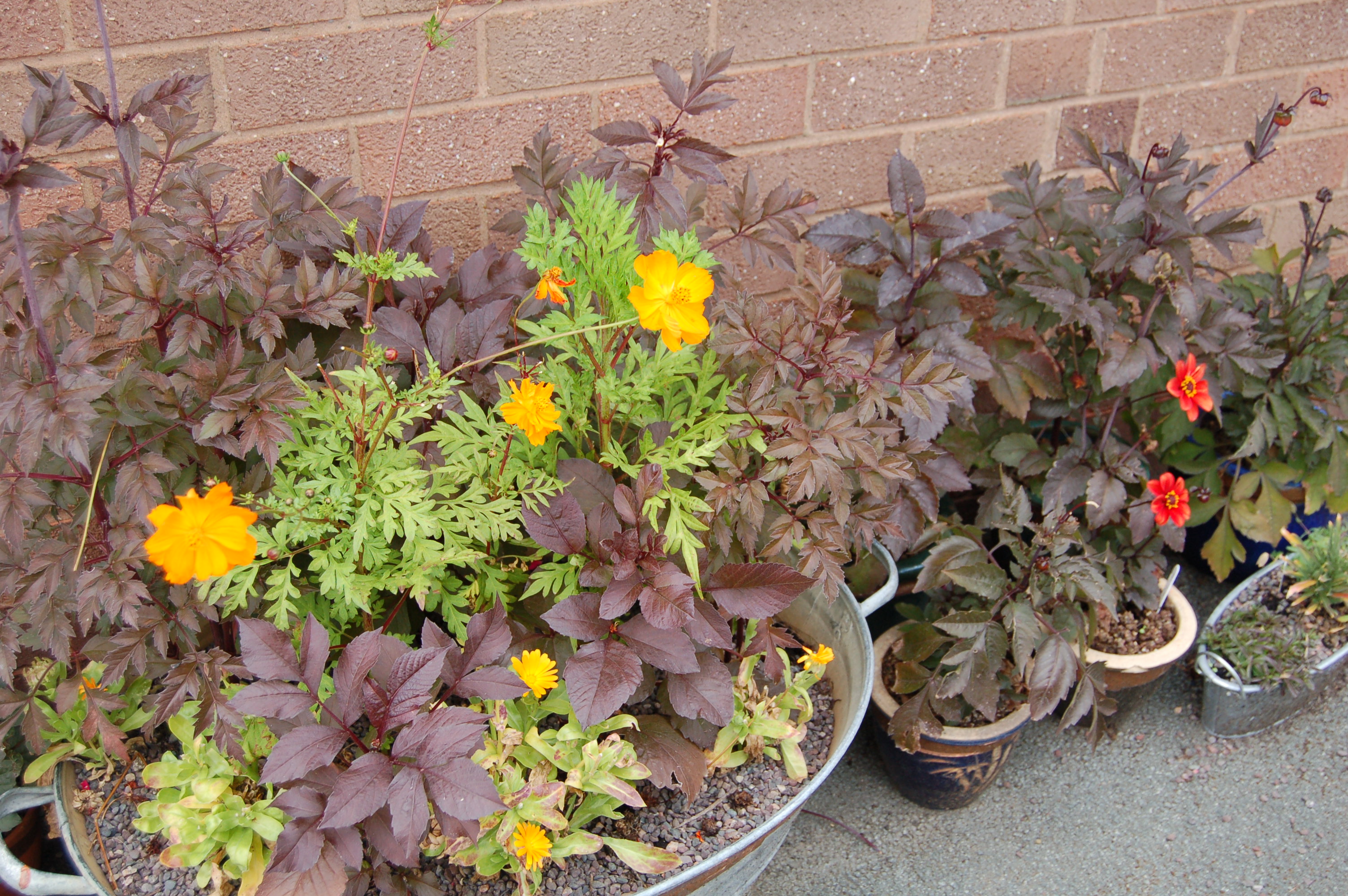The Dahlias in the vintage galvanised containers along the house wall are still flowering but having a bit of a rest before hopefully producing more flower buds to delight the eye in a few weeks time.