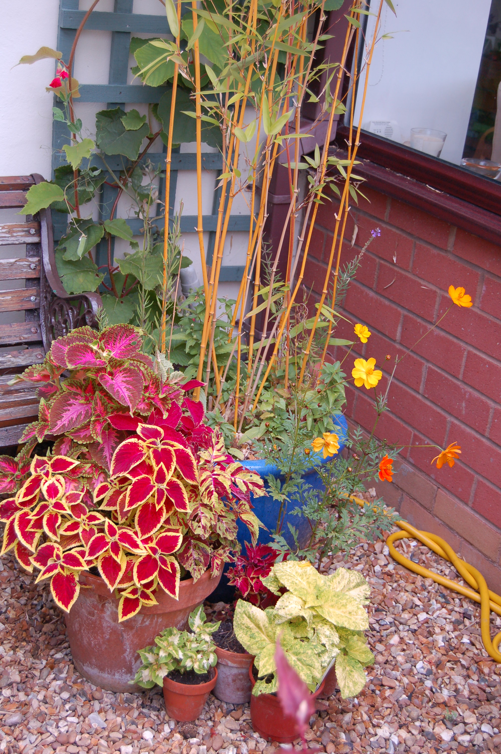 The Tropical Garden which was one of this year’s projects is looking particularly good at the moment. It is so full of contrasts. Contrasts in flower colour, leaf shapes, textures and colour.