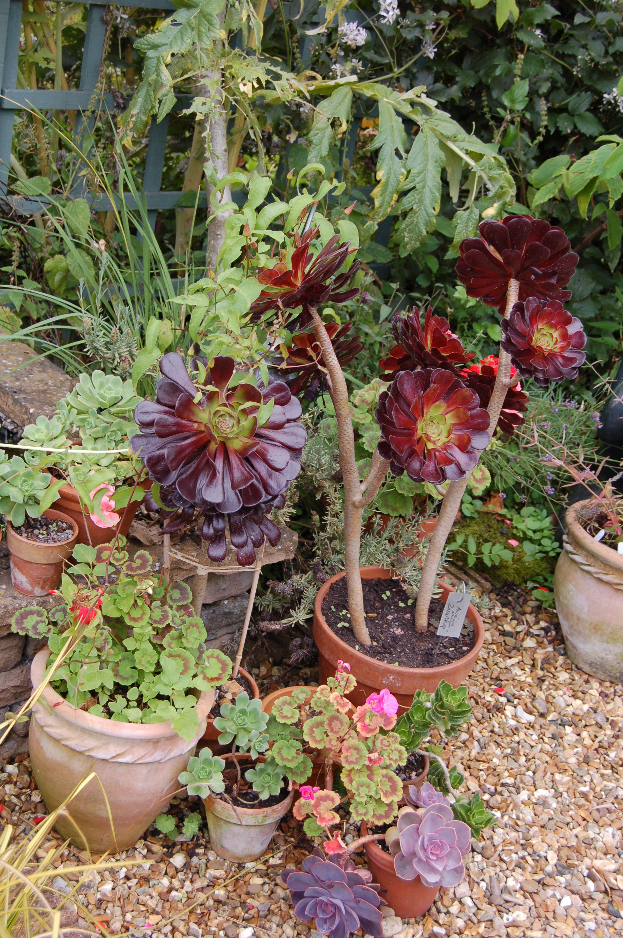 In the Rill Garden the Aeoniums are all doing well showing great leaf colour but best of all must be Aeonium arboreum” Schwarzkopf” which is tree like in form with the blackest glossiest leaves possible.