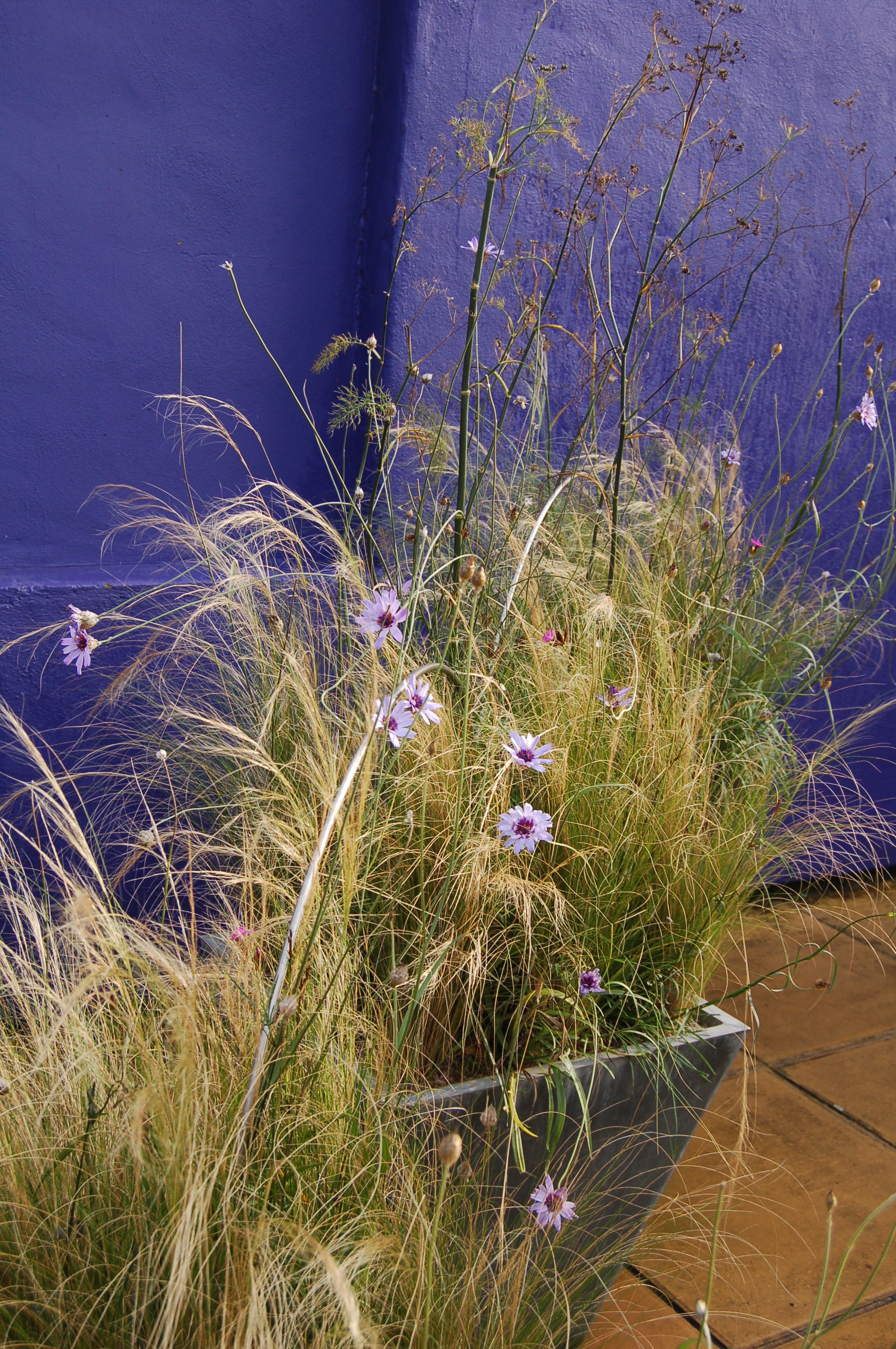 Wonderful variety found here. I love the pot of grasses against that dark blue wall.