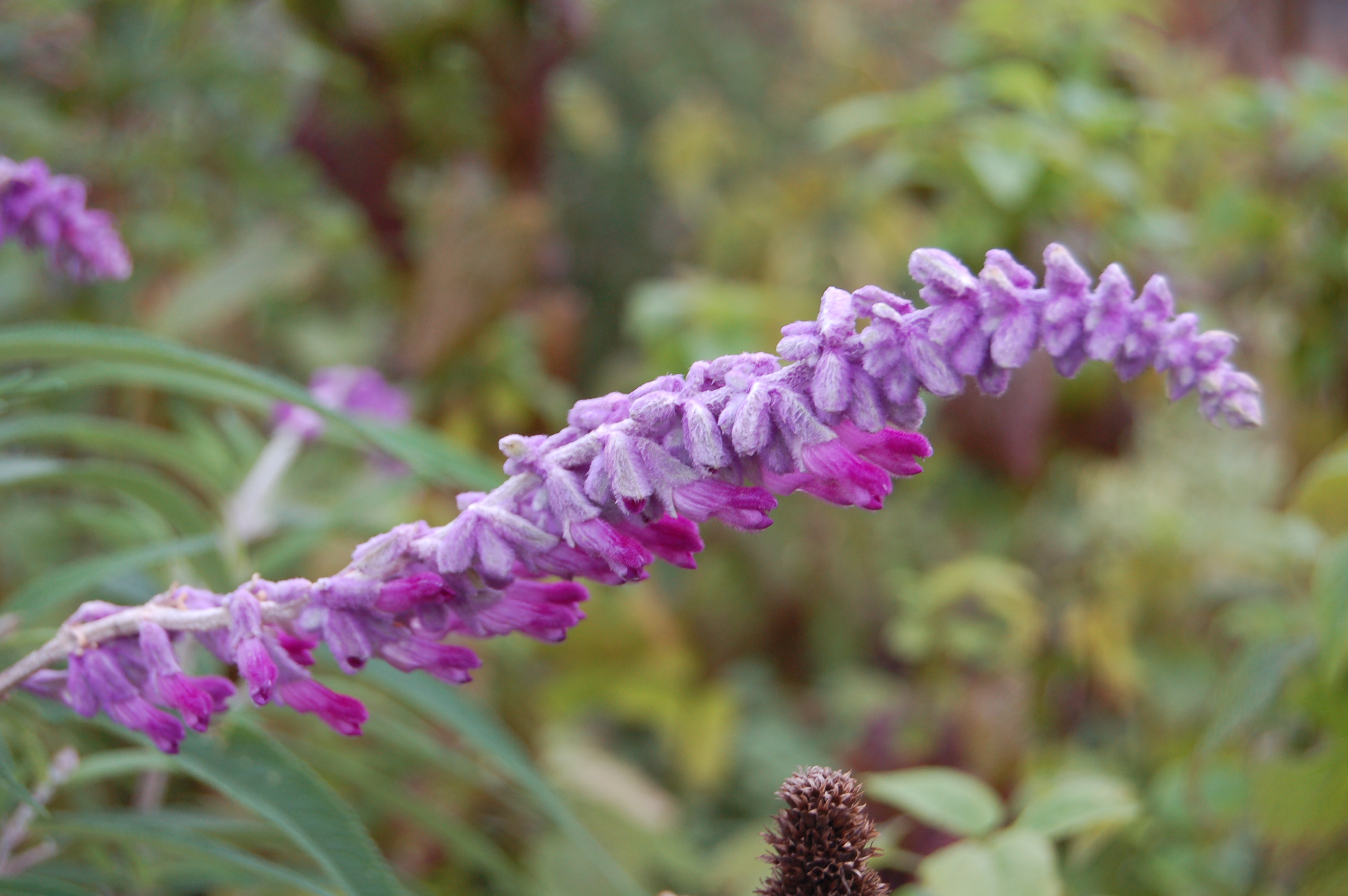 The bright colours of the late flowering half-hardy perennial Salvias can cheer up the dullest of days. An unexpected flower however, unexpected but equally bright, was that of a candelabra Primula.