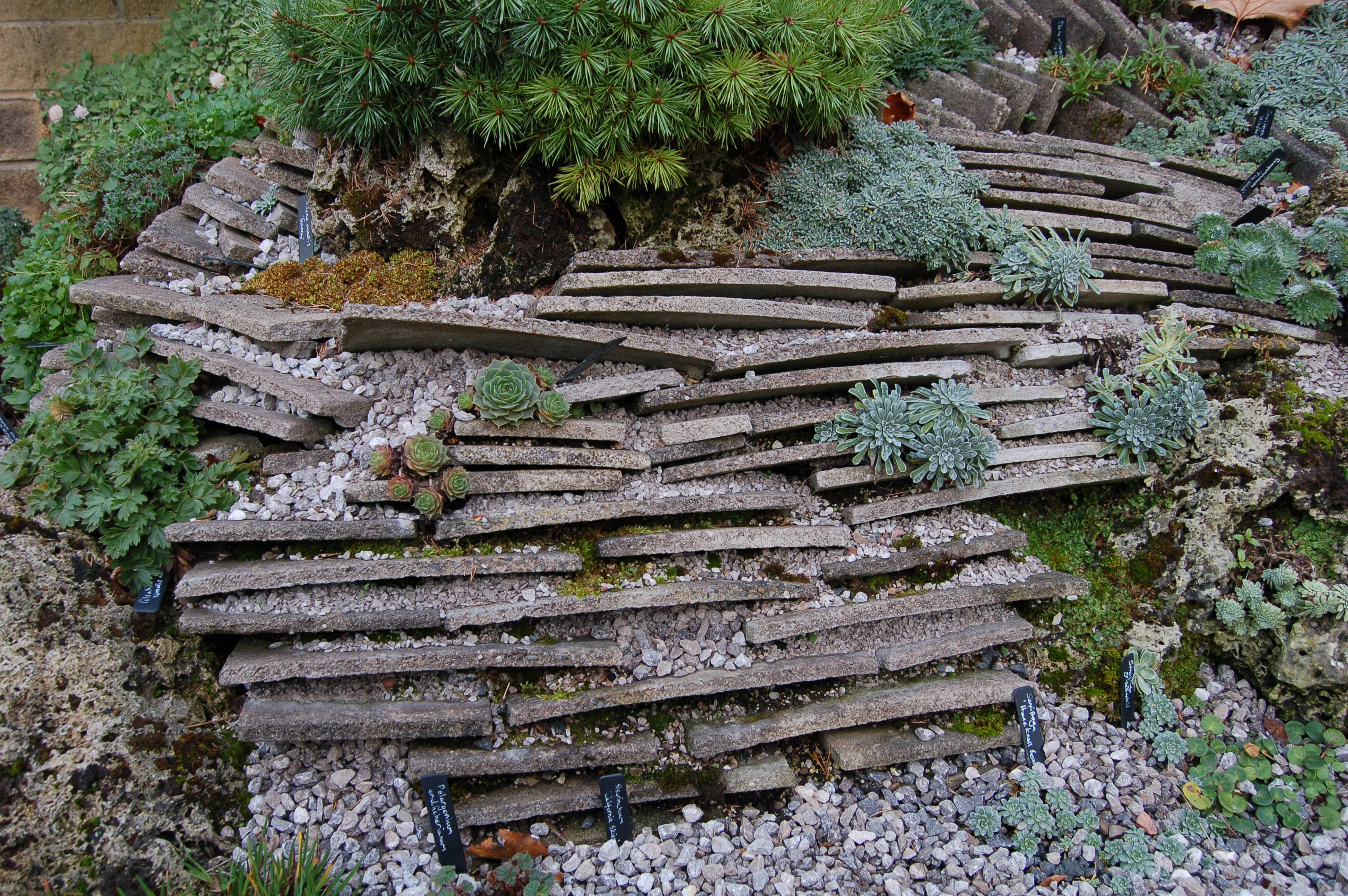 One reason for this return to Harlow Carr was to look at the area dedicated to alpines. We had recently been gifted two old buttler’s sinks which we aim to convert into alpine troughs. We were hoping for inspiration. In the alpine house itself it was the various miniature Oxalis which entranced us, but on the paved area outside we found the alpine troughs which inspired us to make something special of our two sinks.