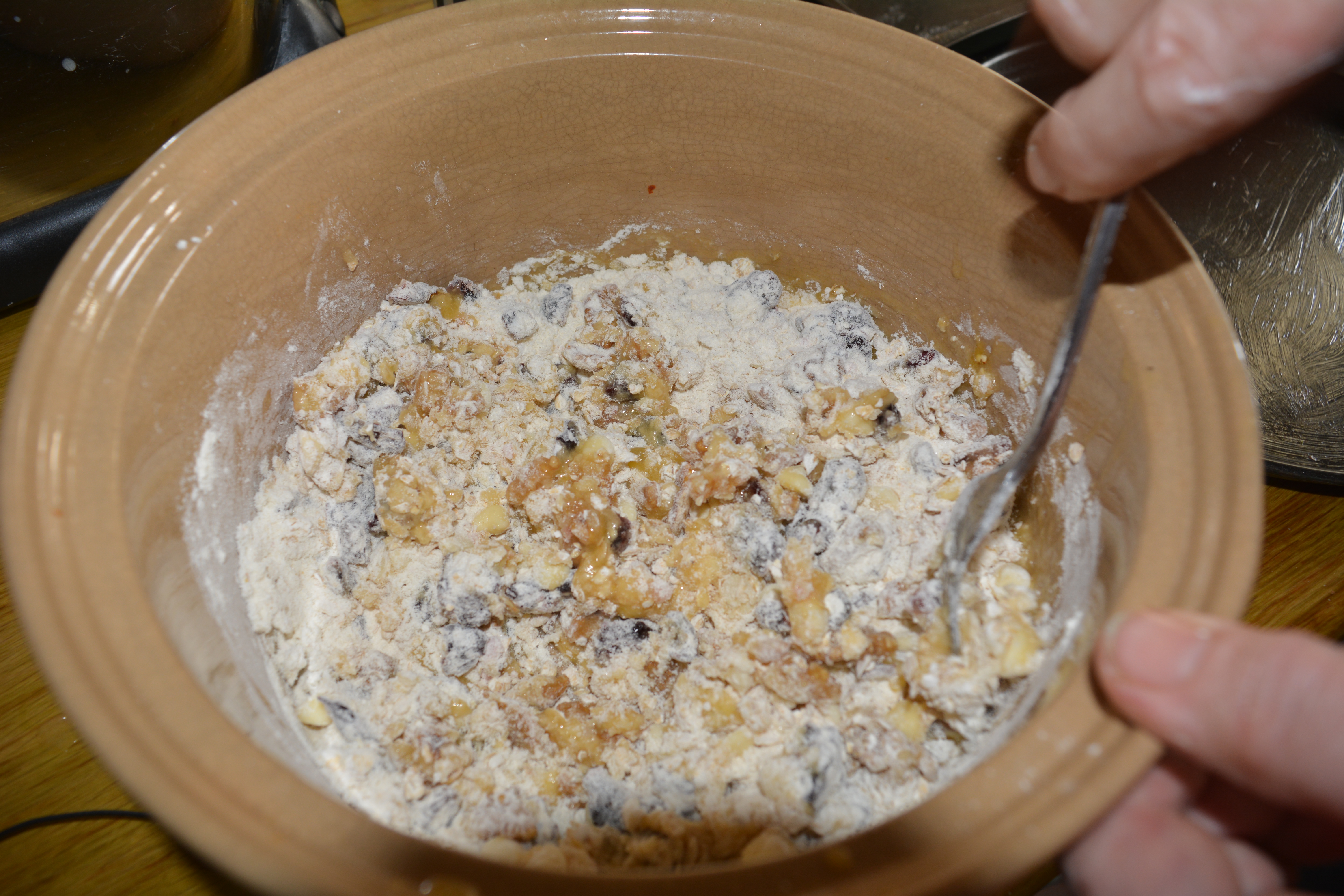 We mixed the dry ingredients in with a mixture of softened butter, an egg and a teaspoon of vanilla and beat them all together until fluffy in consistency.