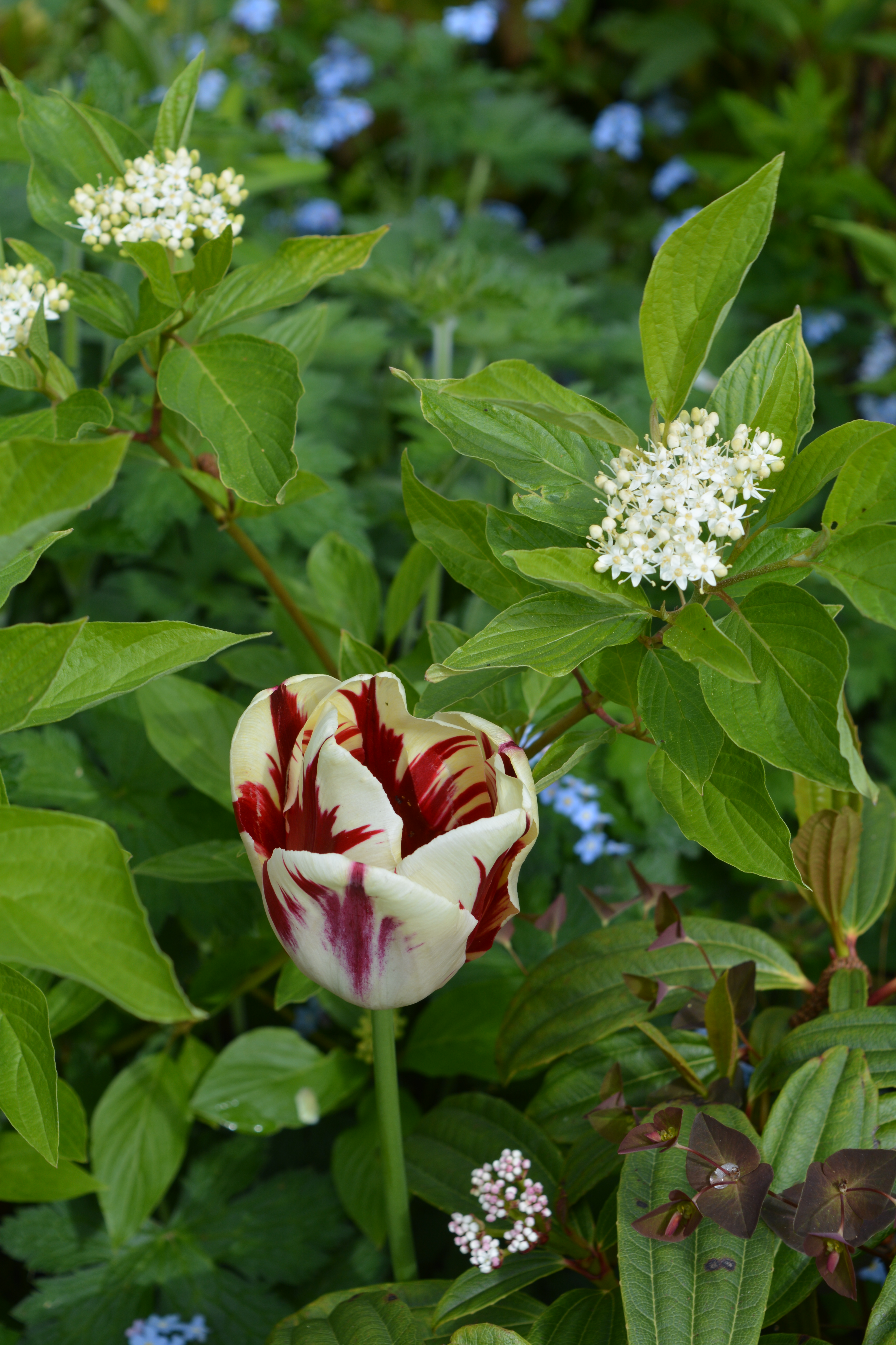 We opened our gardens three times last week (Monday 9th, Thursday 12th and Saturday 14th May and in between managed to give a talk to a garden society on the Tuesday, so by Saturday night we were exhausted and our knees and backs ached. But as it was all for the National Garden Scheme charities however much we ached it was worth it.