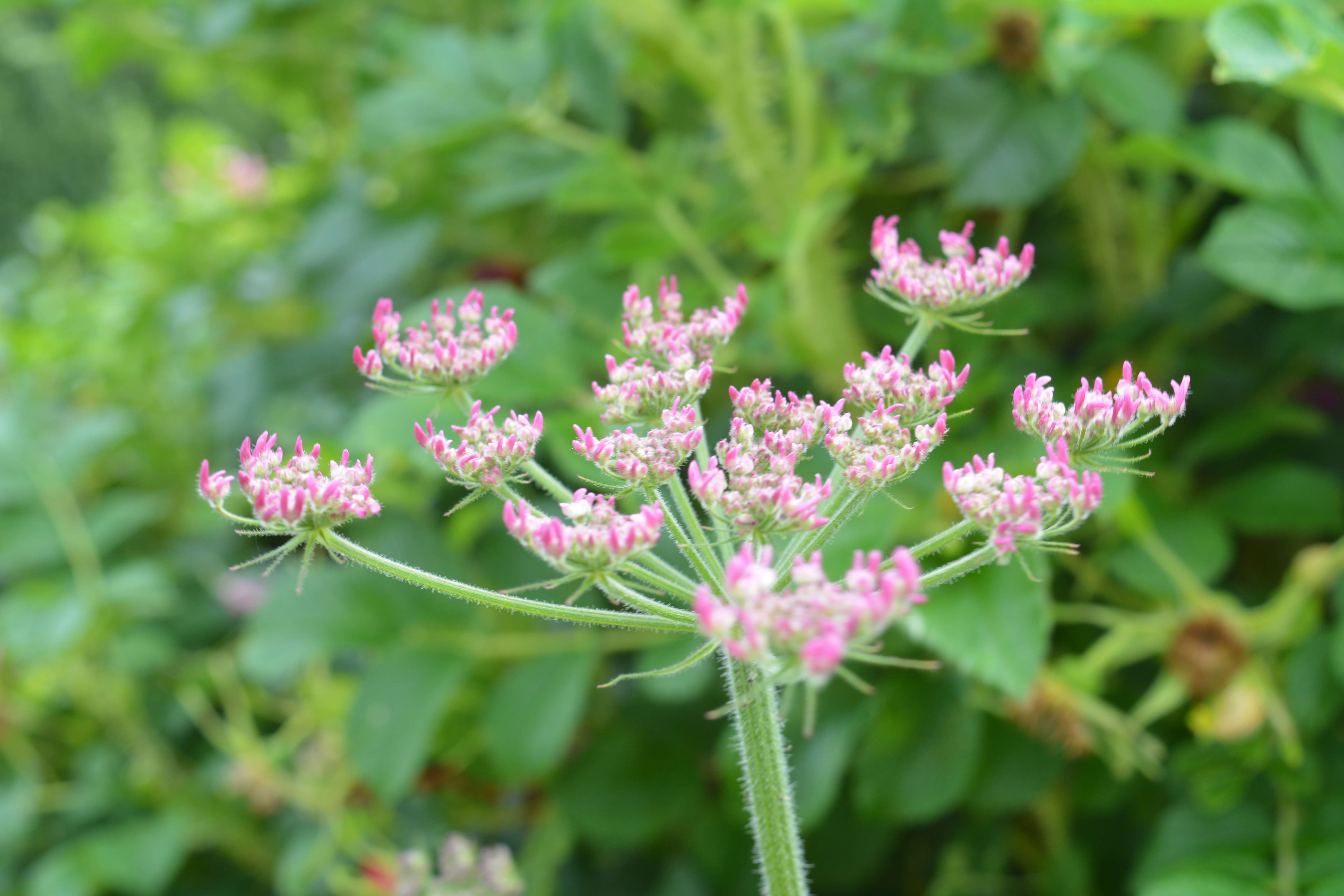 A stream appeared alongside the path we followed downhill and it accompanied us right down to the pool as the planting changed to reflect the damper air and ground. Rambling wild roses and native shrubs added plenty of colour and texture to the hedges.