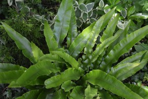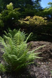 Hosta leaves and fern fronds looked lush and fresh and appeared in every shade of green, some glaucous and some almost yellow. Their textures were emphasised also by the light, every curl and ripple of leaf and each curl and twist of fern fronds.