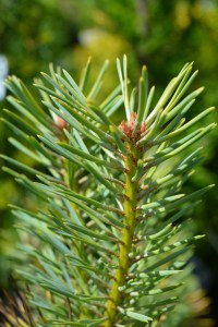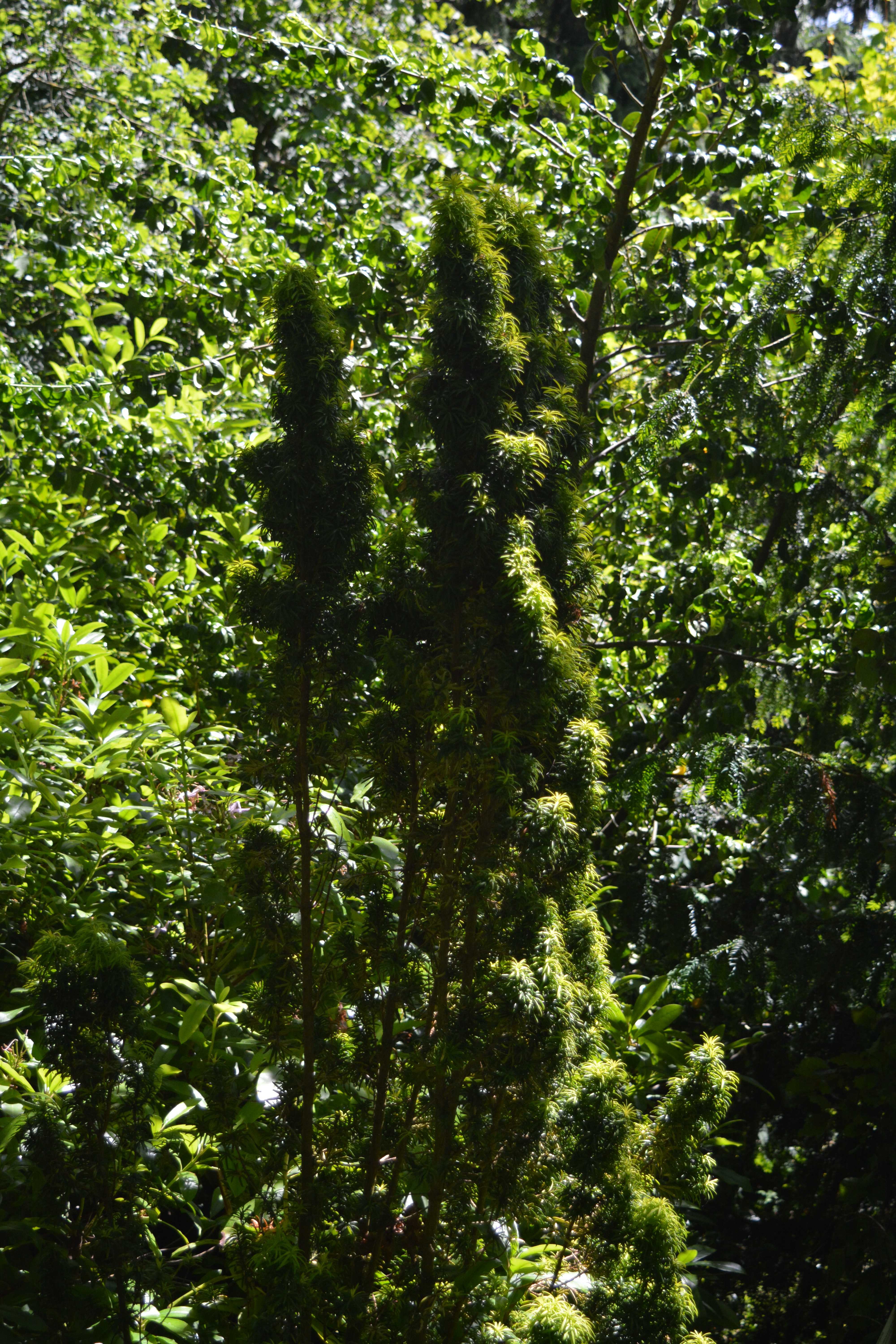 Conifers are difficult to appreciate in such a heavily planted hillside garden but on this day they seemed extra interesting with extra interest in their needle shapes and colours.