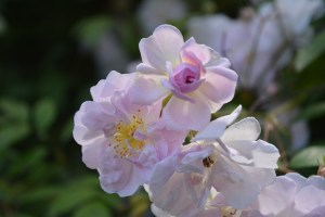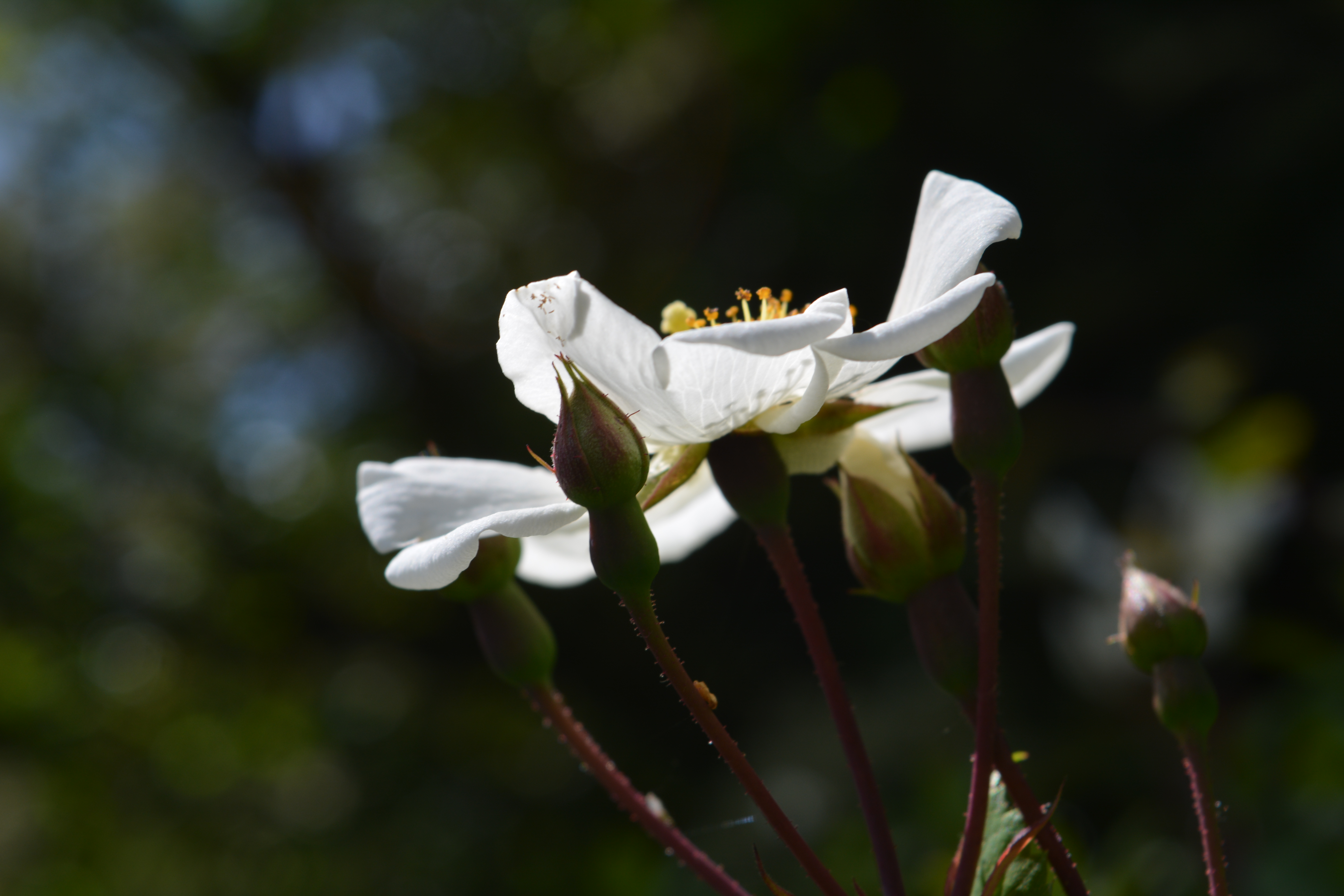 Roses seemed to have appeared from nowhere. In a garden full od trees and shrubs with interesting foliage, bark and stems rose bushes out of flower really do disappear. But in June suddenly the subshine finds heir beautiful scented flowers. Most here are simple blooms including our native roses.