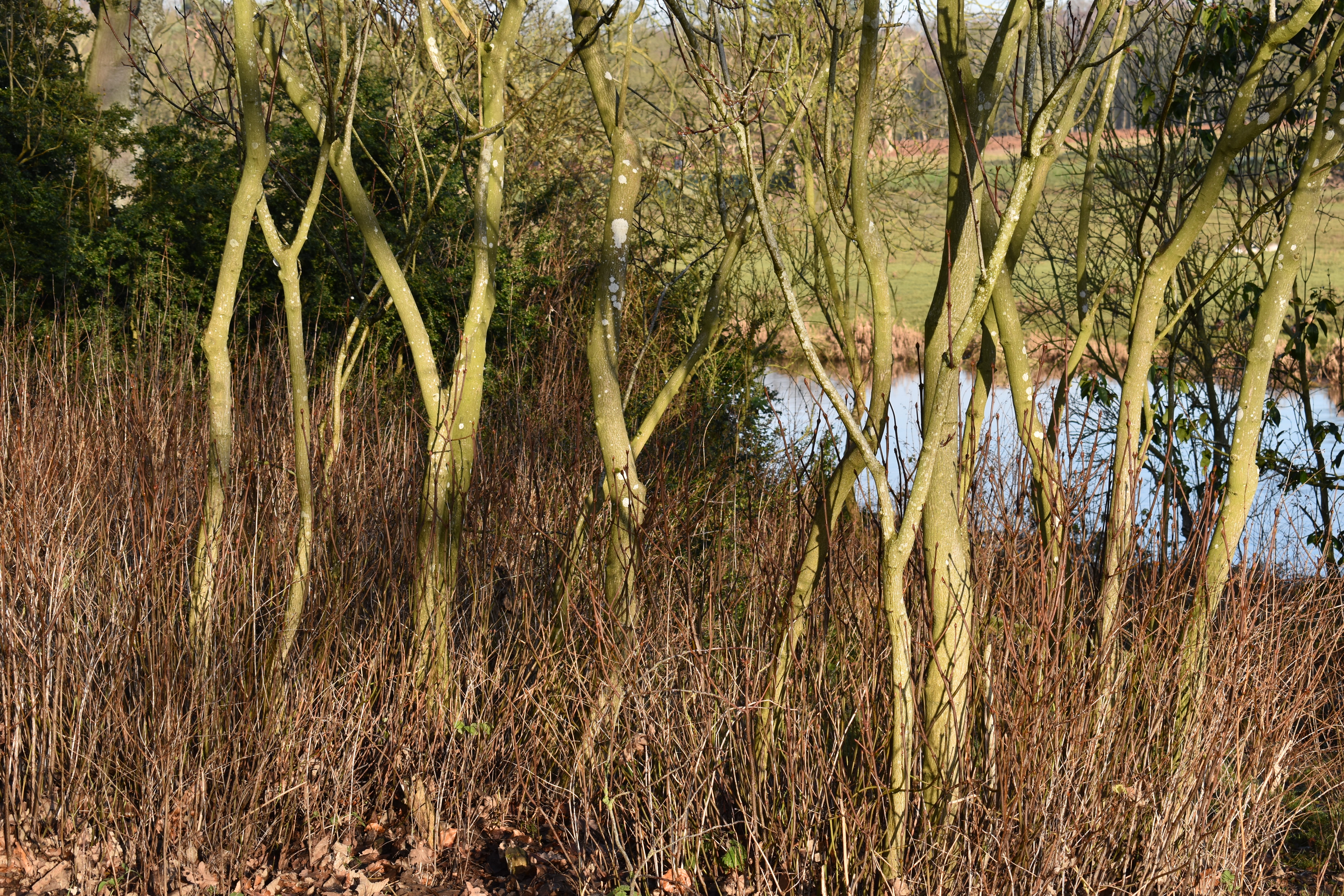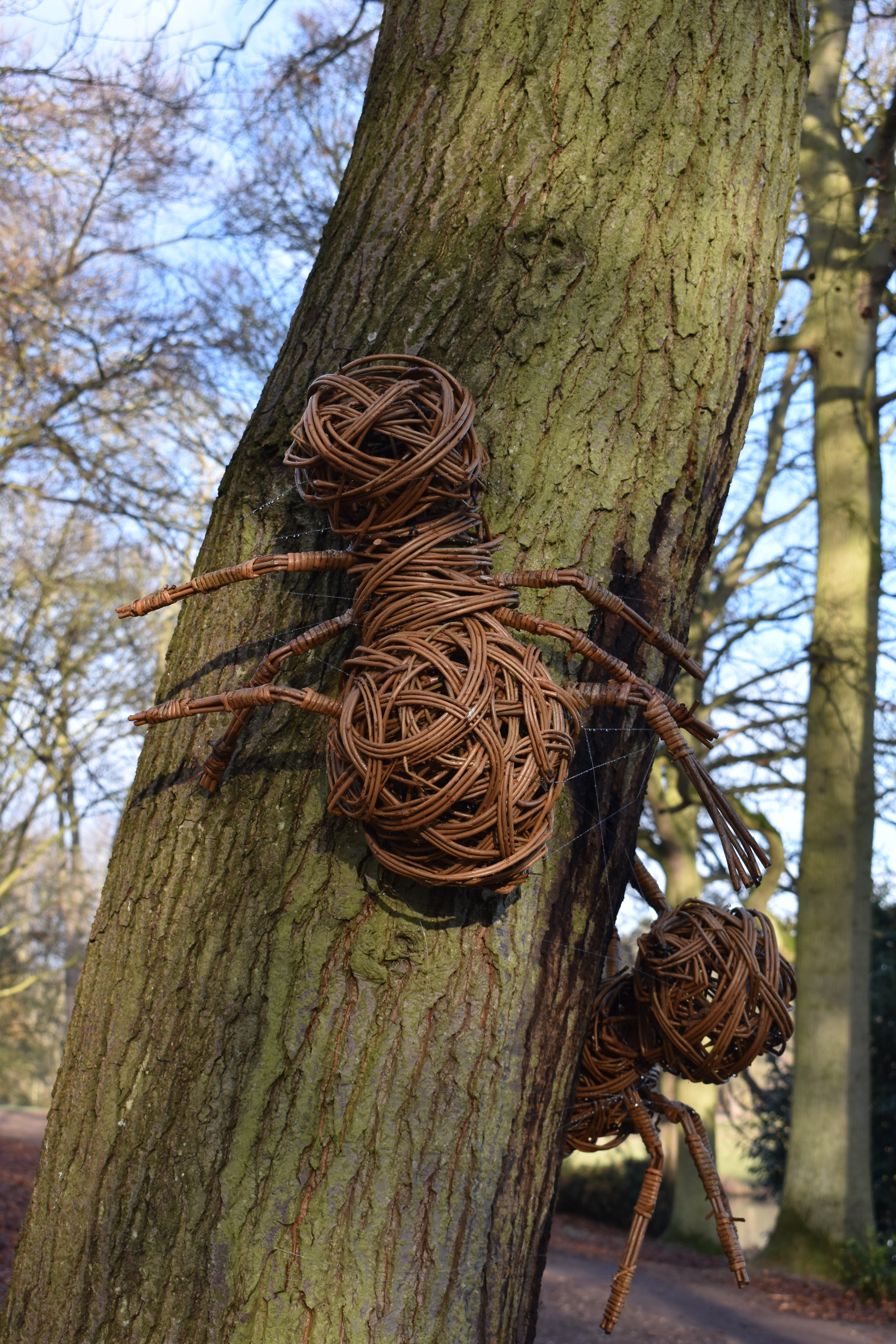 We were surprised to see willow sculptures decorating an area beneath beech, sweet chestnut and oak trees, depicting insects commonly found here. The floor was deep in leaves from these trees, the carpet of leaves home to many insects and invertebrates. Hence it was a lively area scattered with blackbirds and song thrushes busily tossing leaves about in search of food. They were joined by a few robins, redwings and mistle thrush. While watching them at work a sparrow hawk shot through the boughs and landed above the boundary fence, rested awhile and then quietly flew off over the meadows.