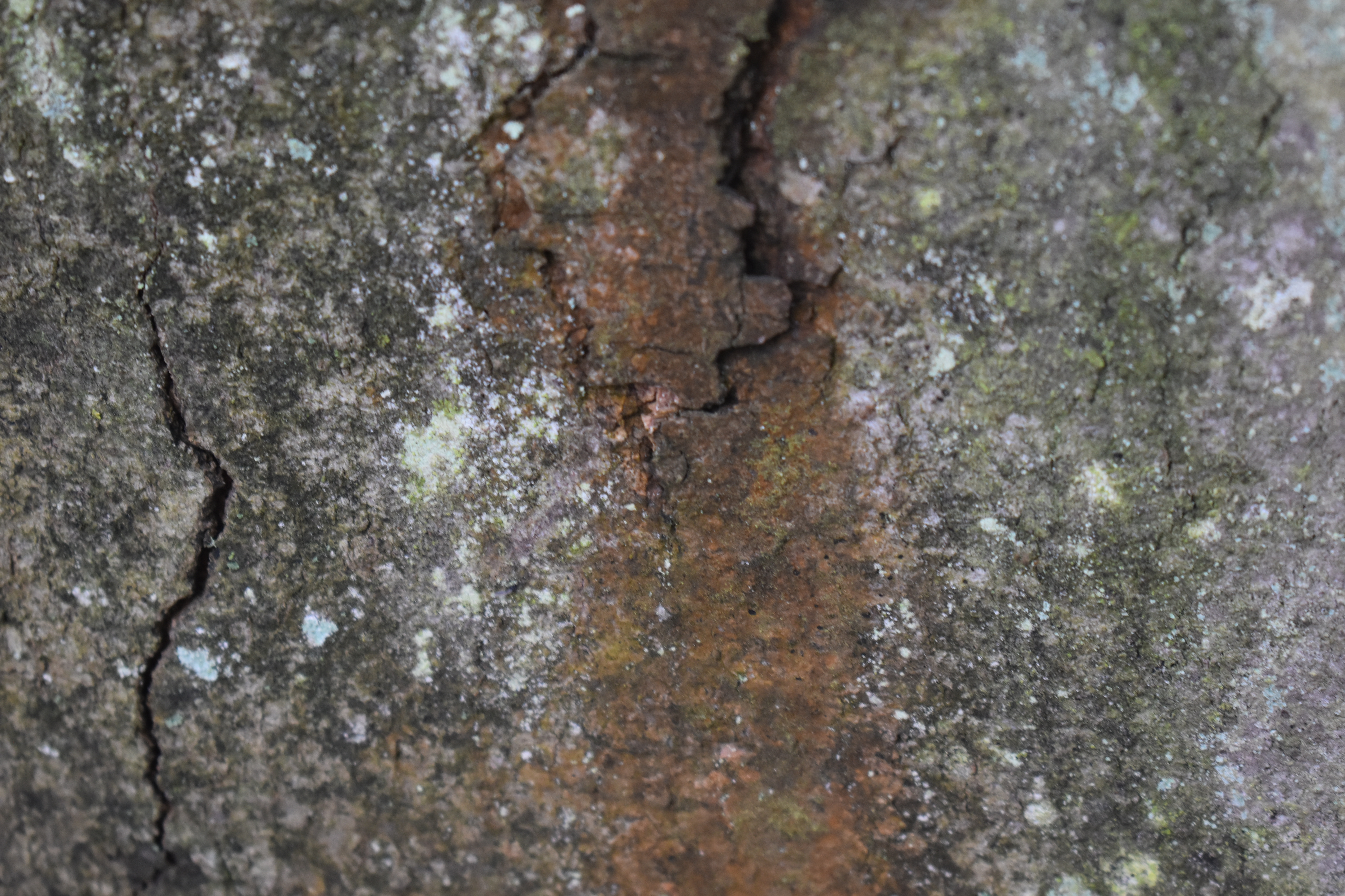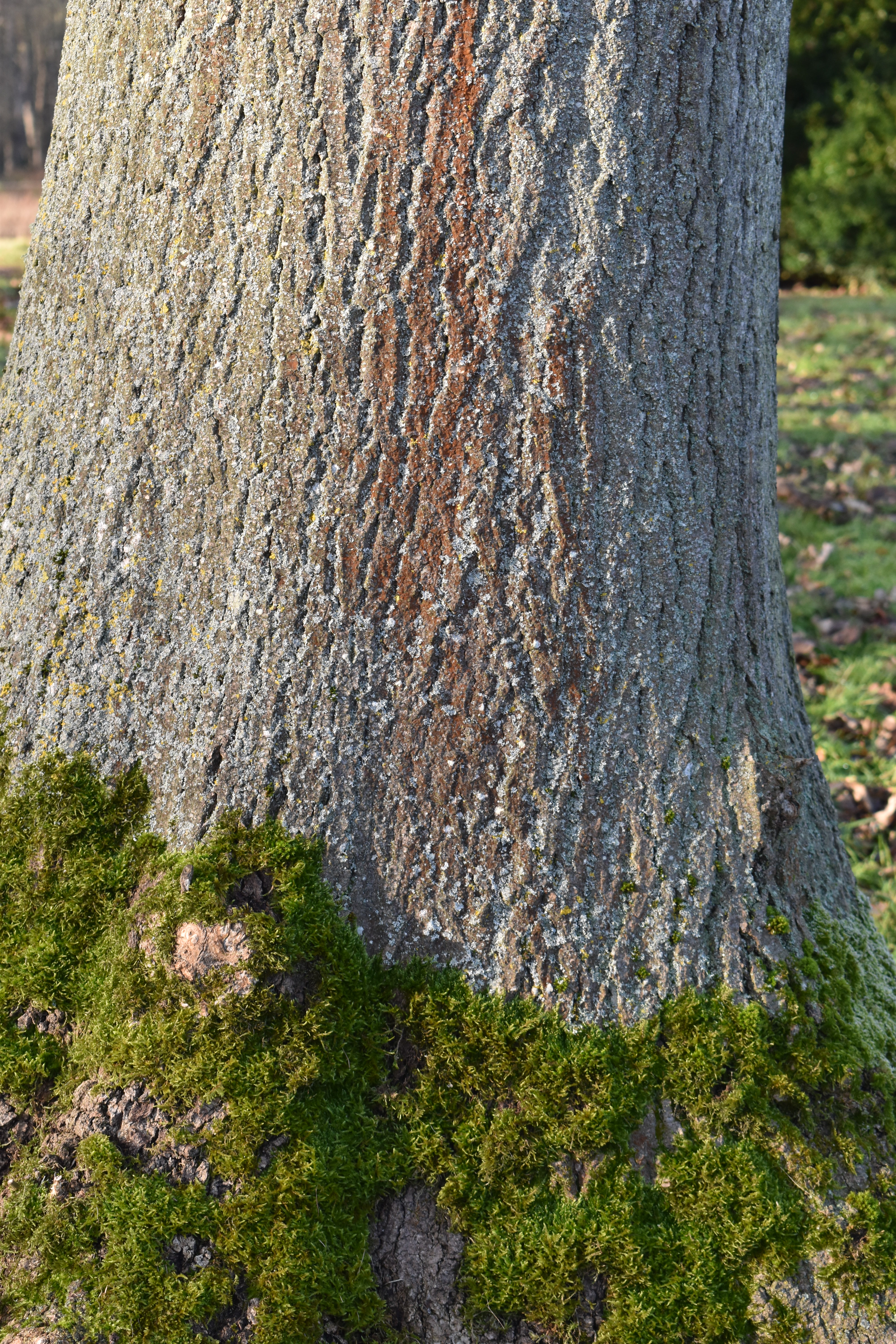 This walk proved an excellent place to do just that. Early on into our walk we came across a huge specimen tree covered not in mosses or lichen but in our native Ivy, Hedera helix, a brilliant shelter, food source and breeding place for all sorts of wildlife. Not long after we found a tree coated near its base in moss. But it also displayed covering by an orange-brown lichen above the moss.