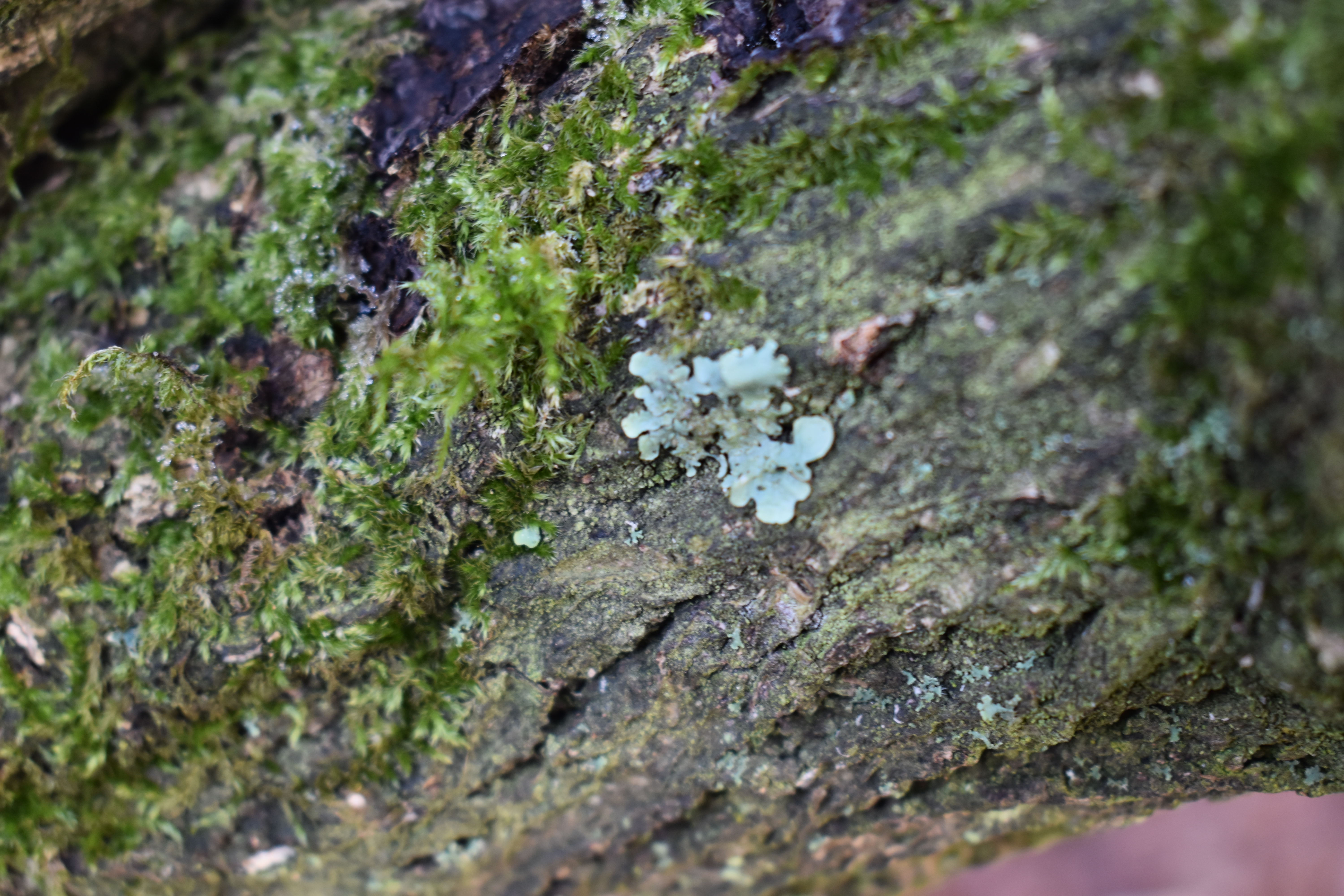 Looking down by our feet there were just as many lichen and mosses to be seen and enjoying growing on fallen boughs and rotting tree stumps.