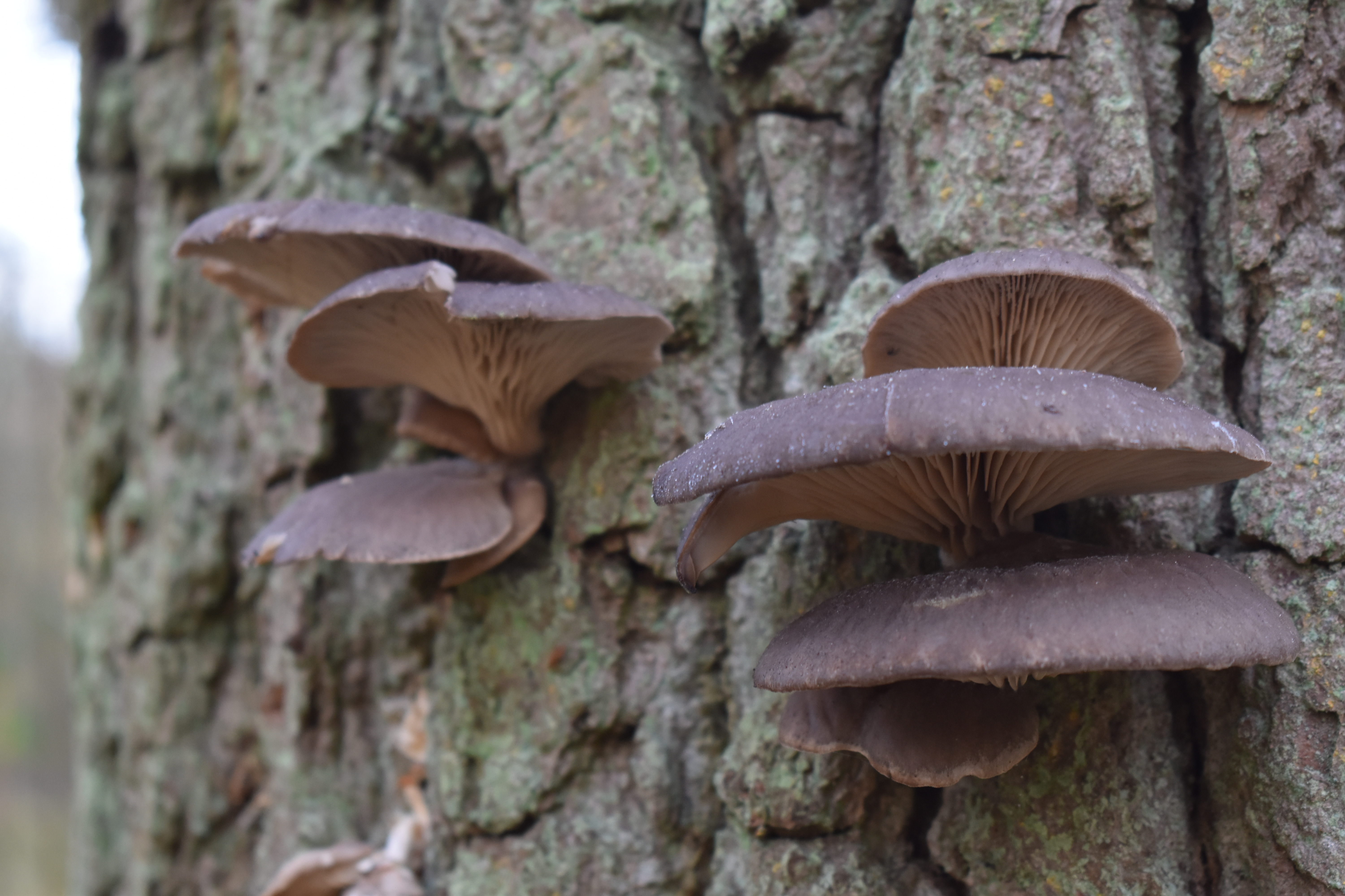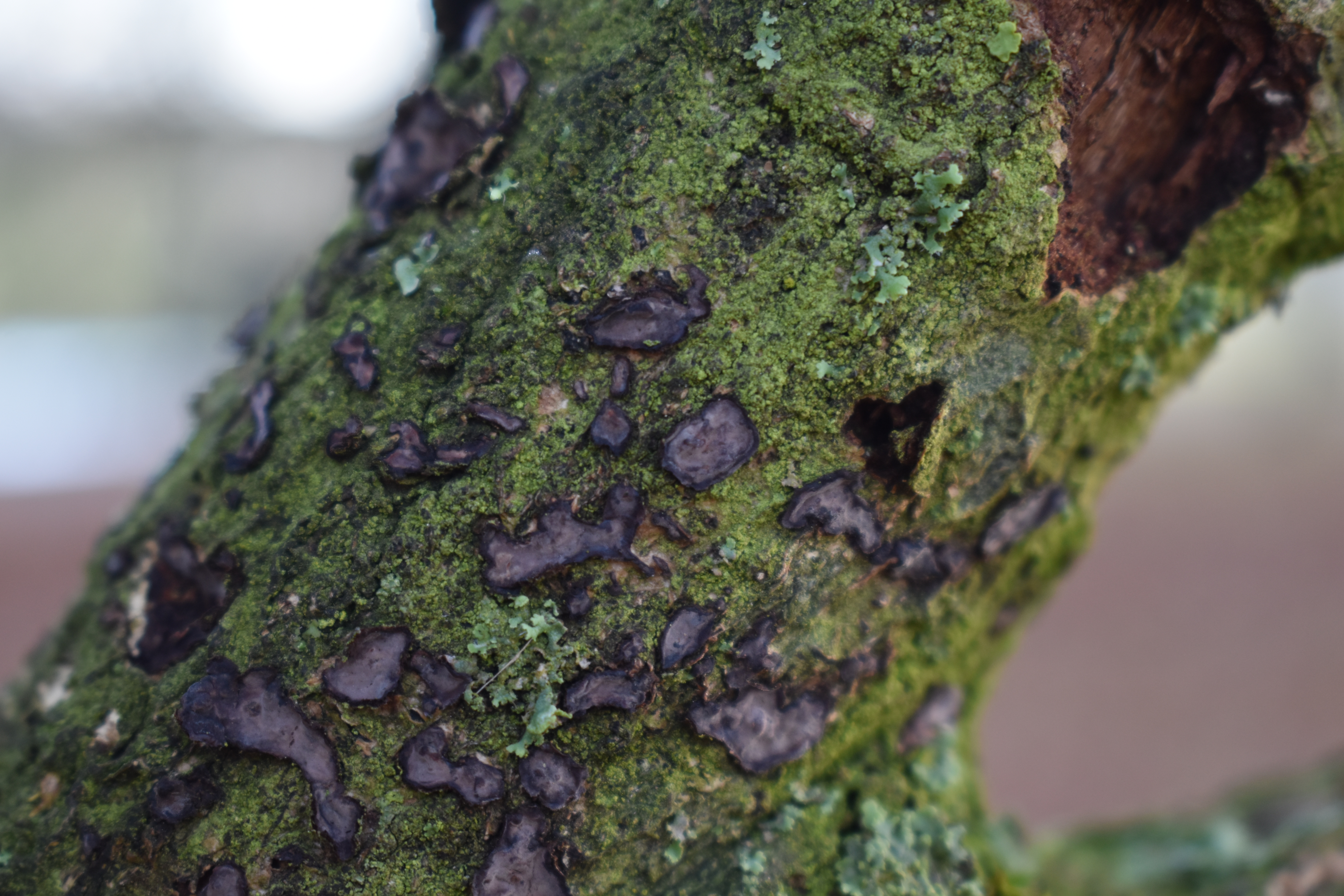 While scrutinising tree trunks for lichen and moss growing on them it was inevitable that we would also spot some winter fungi too. The black fungi were growing on Sycamore leaves and we believe they relate to a fungal disease seen on most Sycamore trees by the end of the growing season.