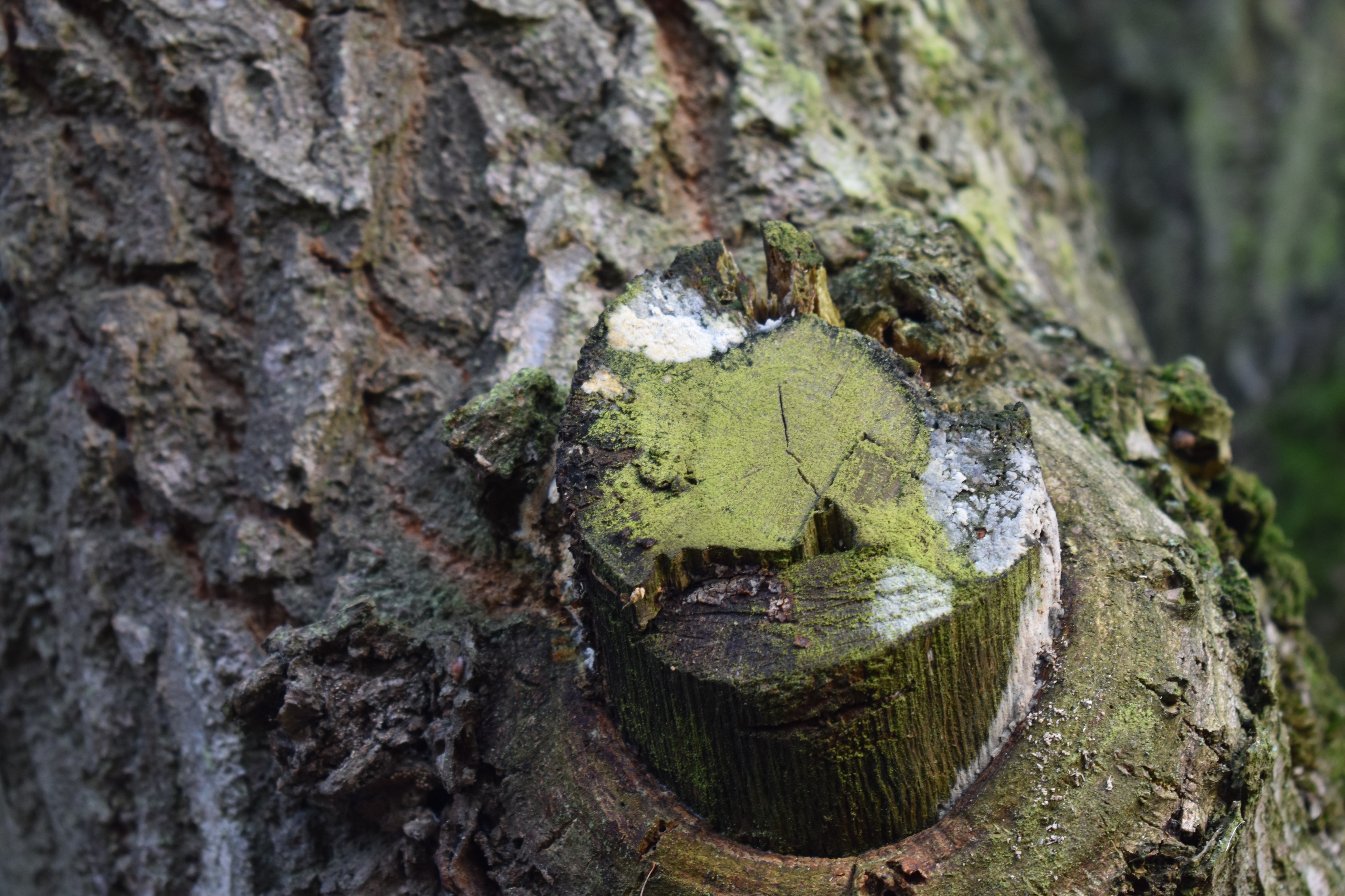 The photo below shows mosses and lichen growing on the rotting stump of a felled tree.