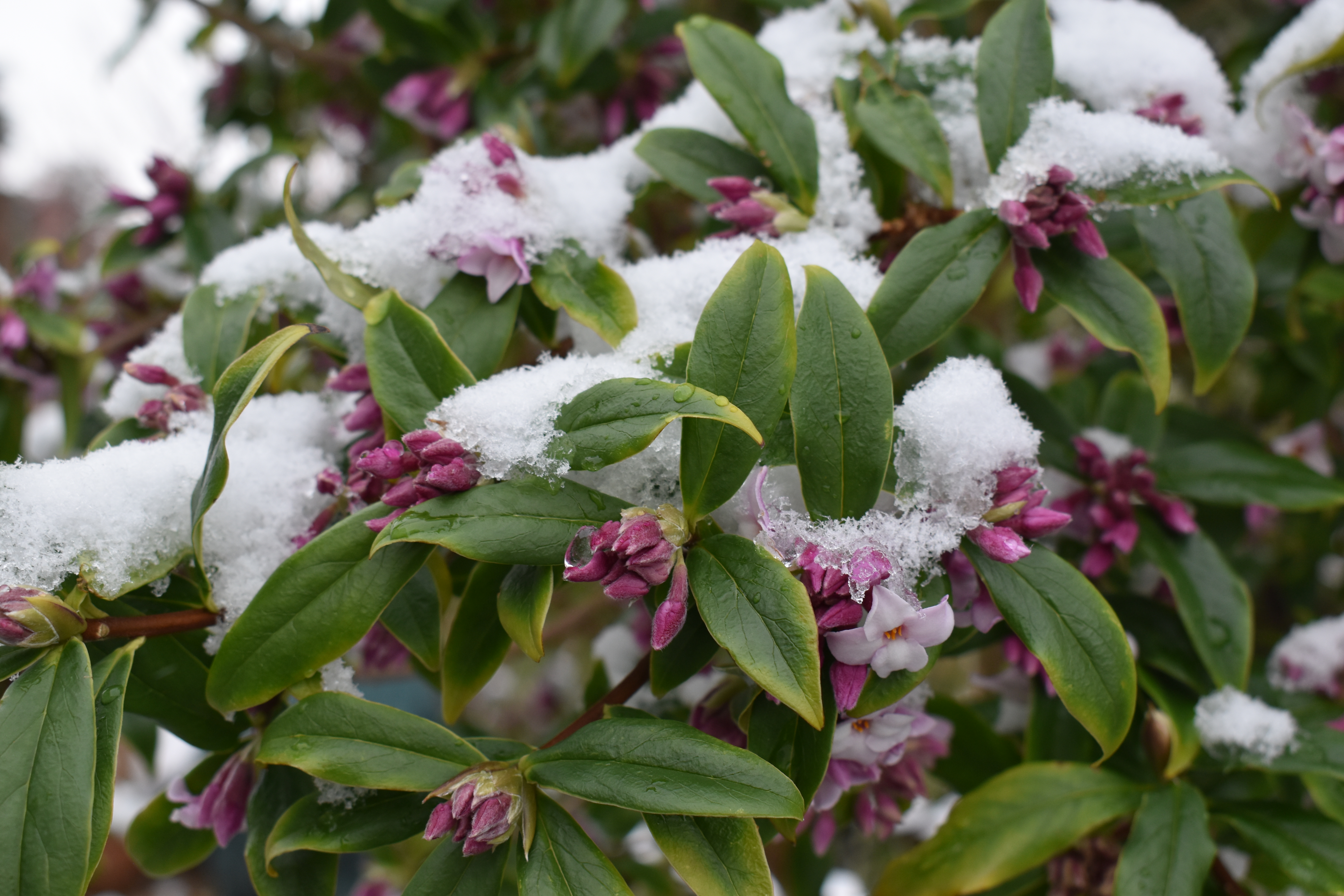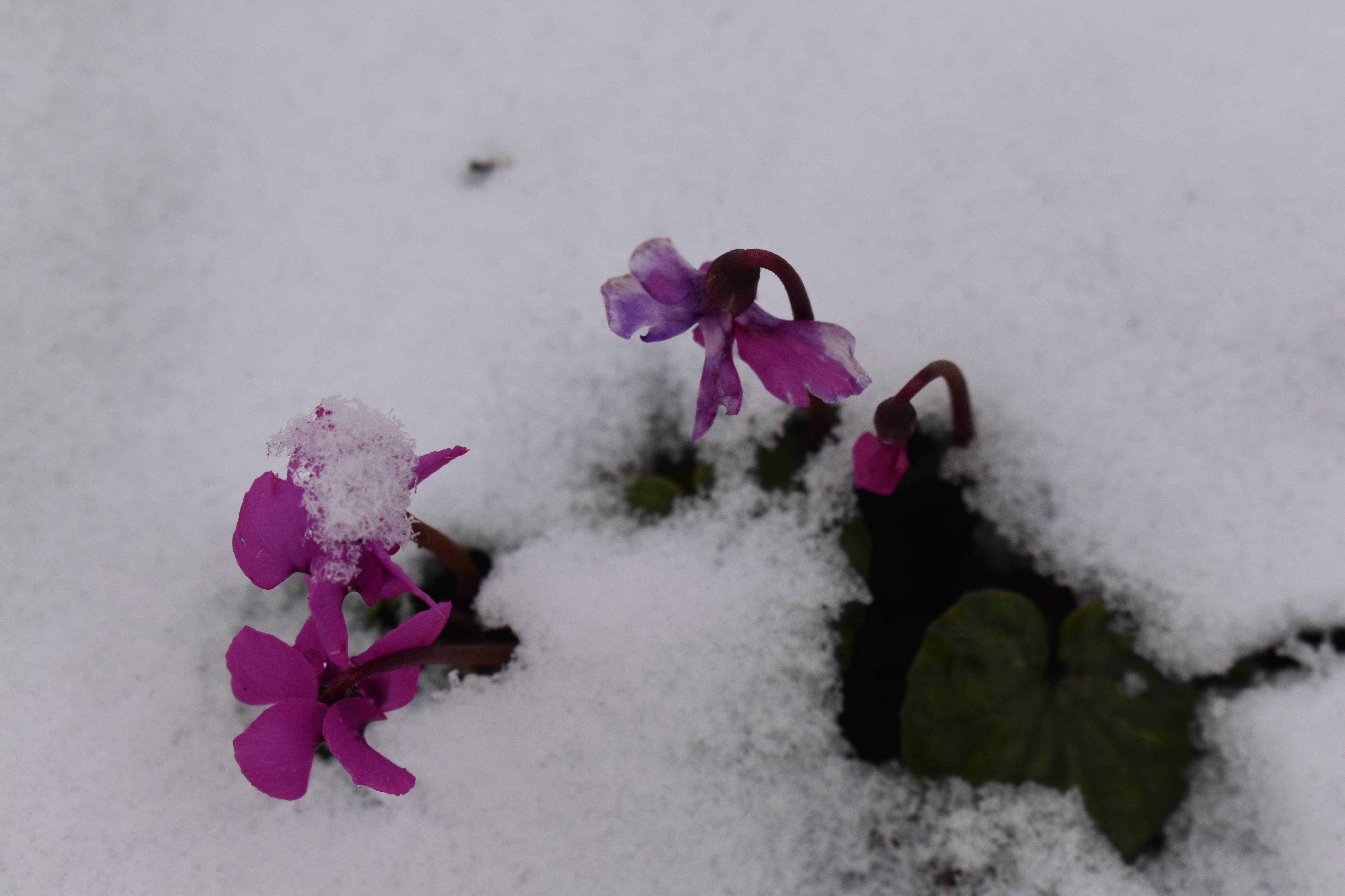I love the bright colours of the flowers against the clear whiteness of the fresh snow. 🙂