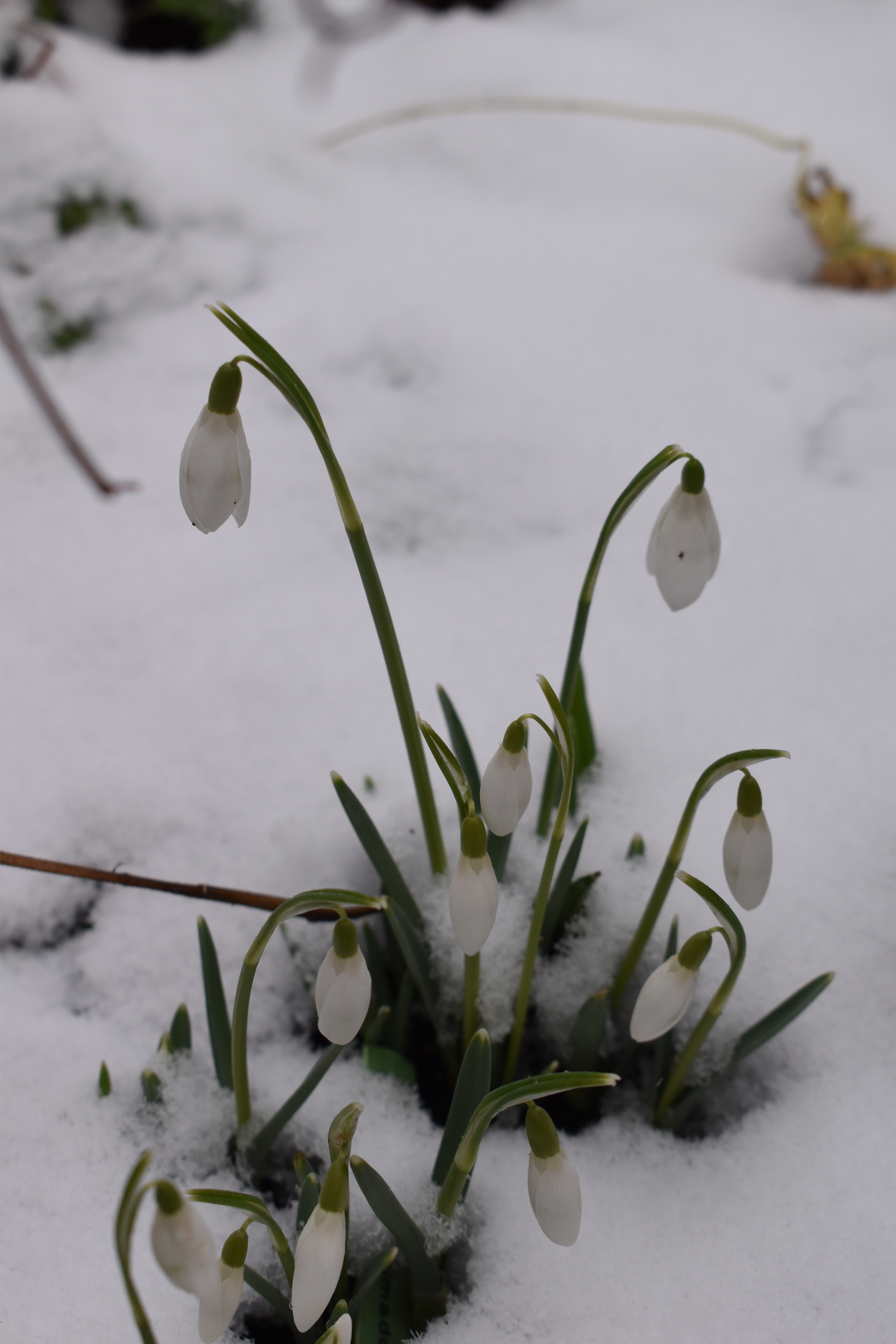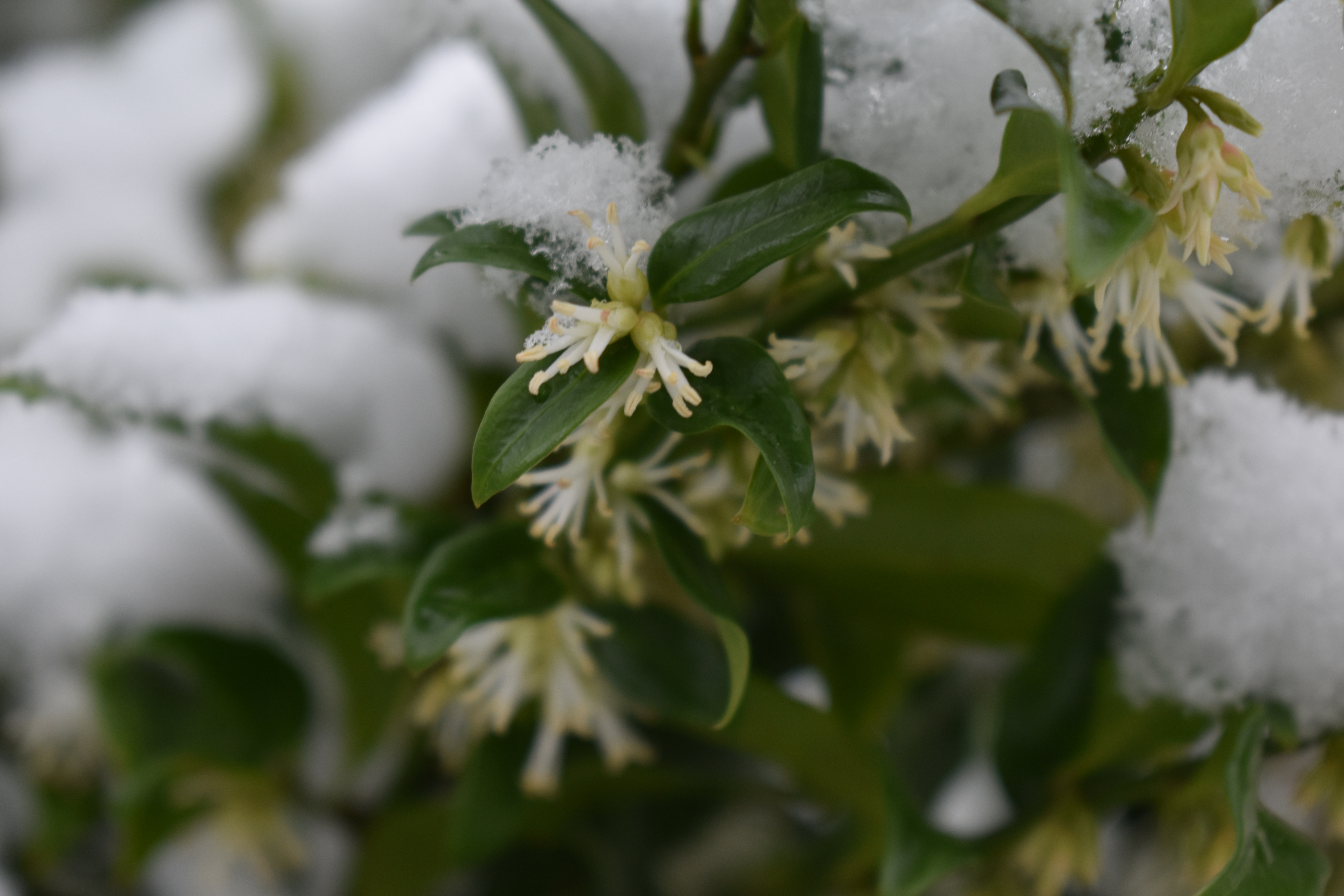 I had planned one day in late January to take a wander around our garden taking photos of flowers blossoming in our garden wether in season or not. But we awoke to an all-white garden! Mother Nature had sent us overnight snow showers to blanket our patch.