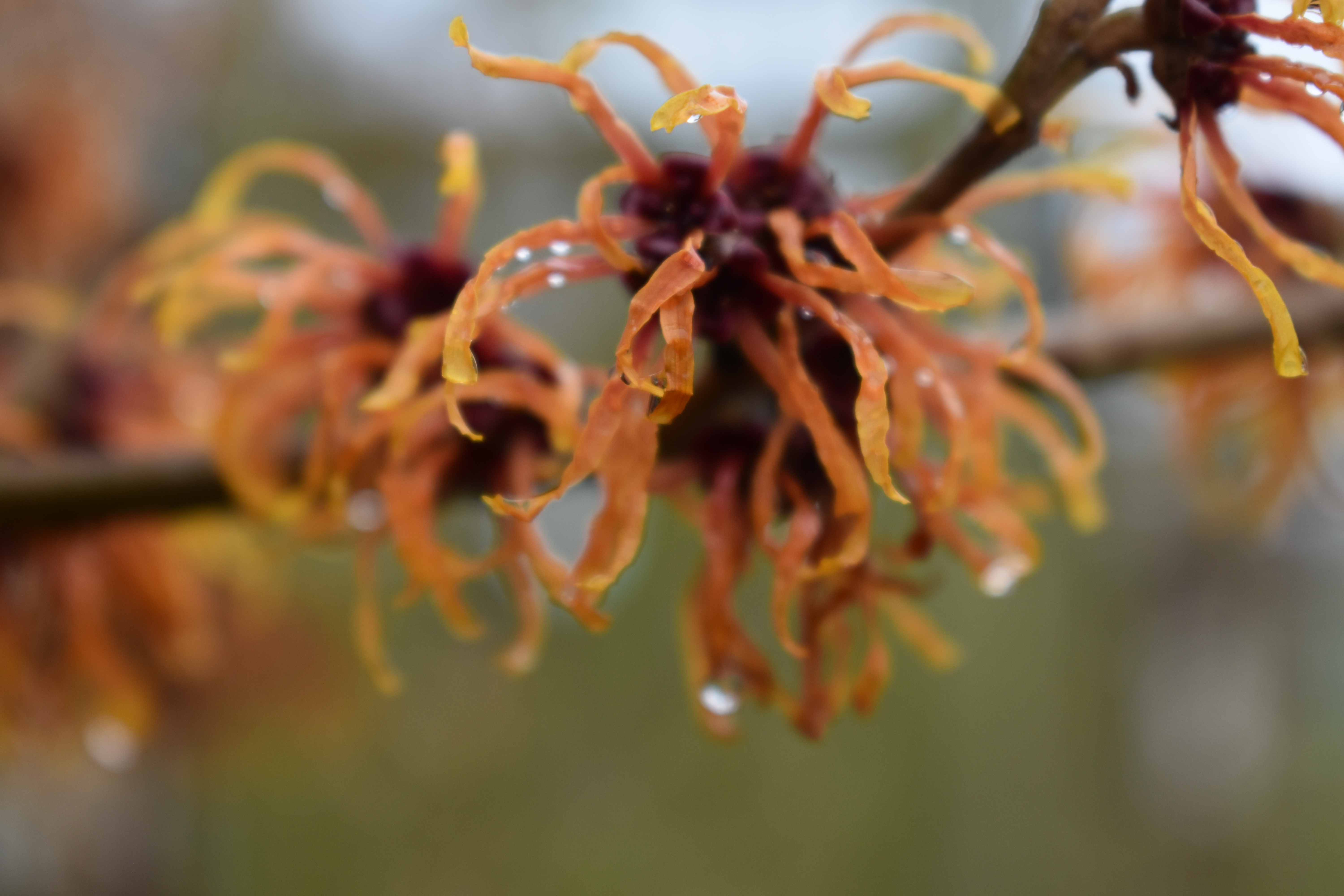Below this trio of pictures are of our three Witch Hazels, Hamamelis ‘Jelena’, H. ‘Harry’ and H. ‘Diane’ which are lightly and sweetly scented.