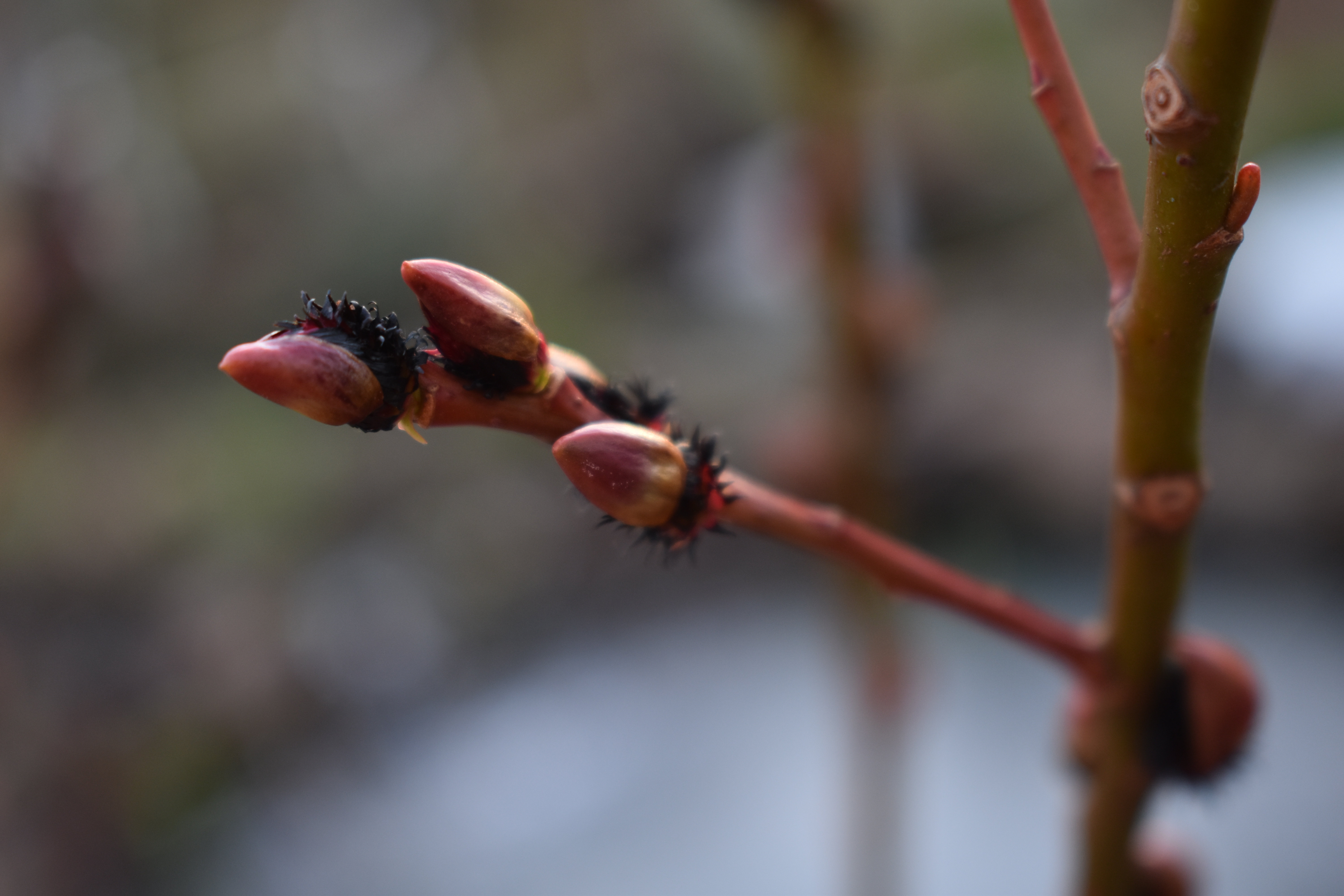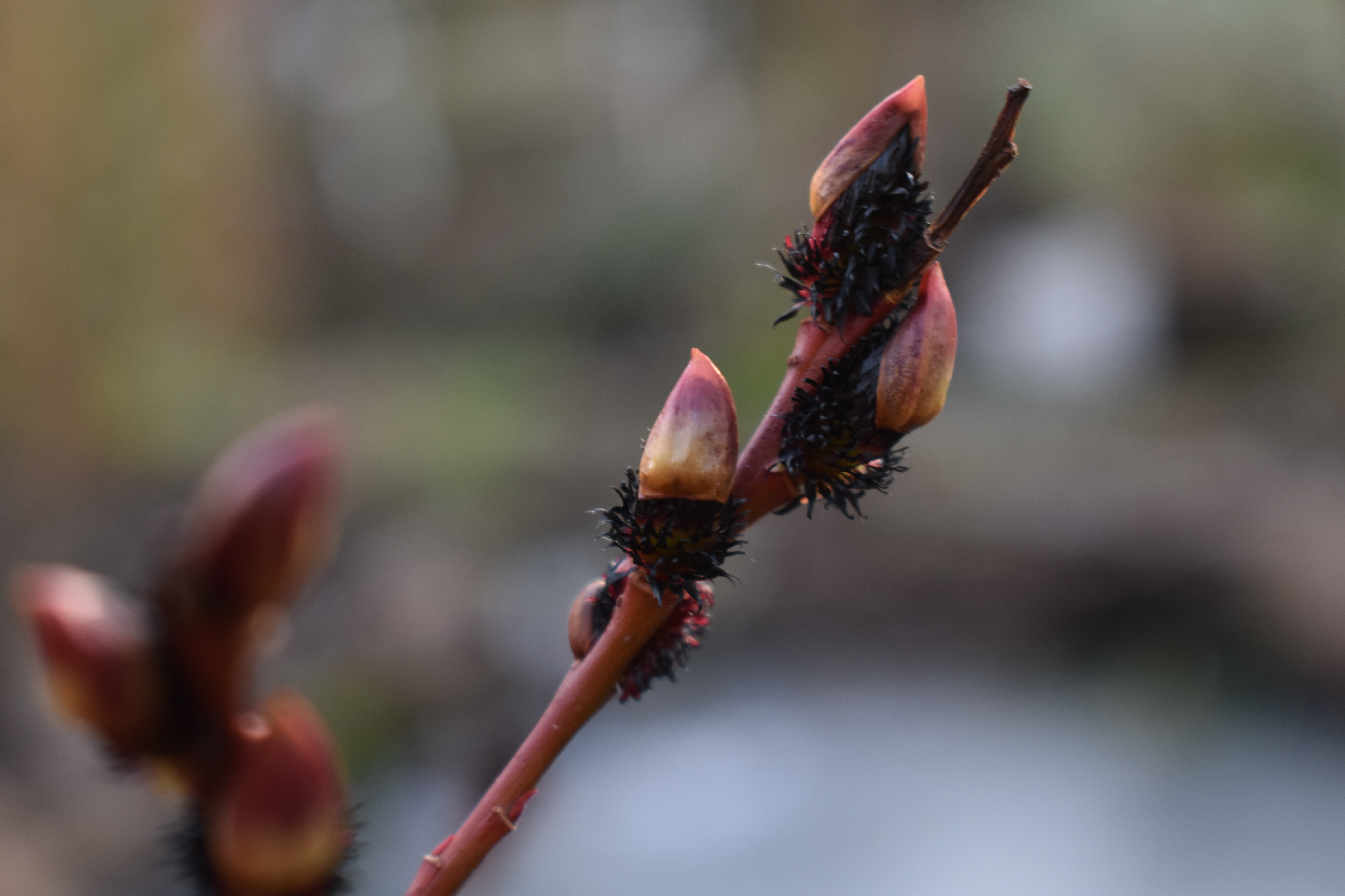 Another Salix gracilistyla variety that we grow around our wildlife pond is S. g. ‘Melanostachys’ which has stumpy catkins like Mount Aso but these are red and black. So dramatic when caught in the winter sunlight! My photos of it below show the catkins half formed but already looking good.