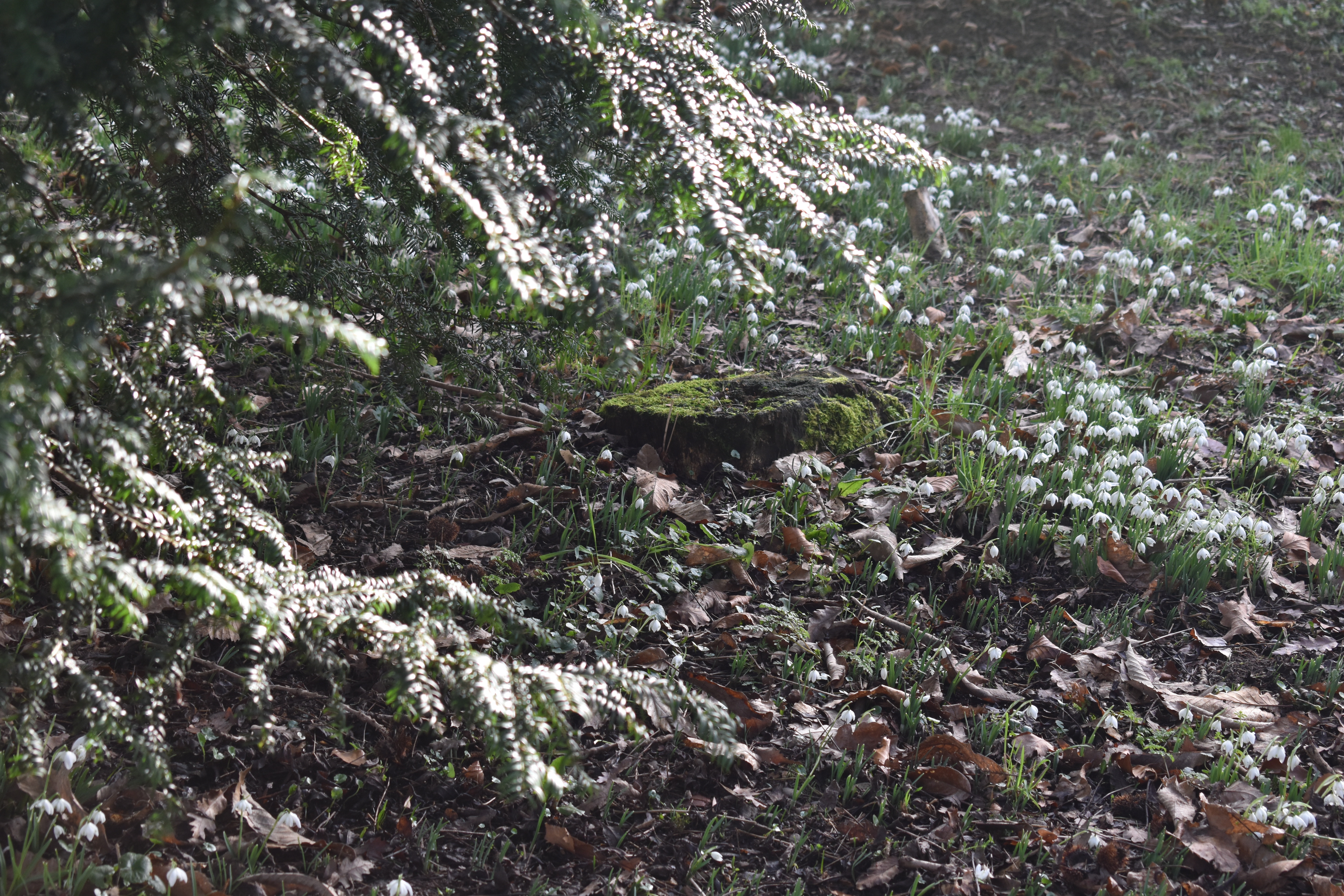 Conifers acted as effective frames for taking shots of more snowdrops.