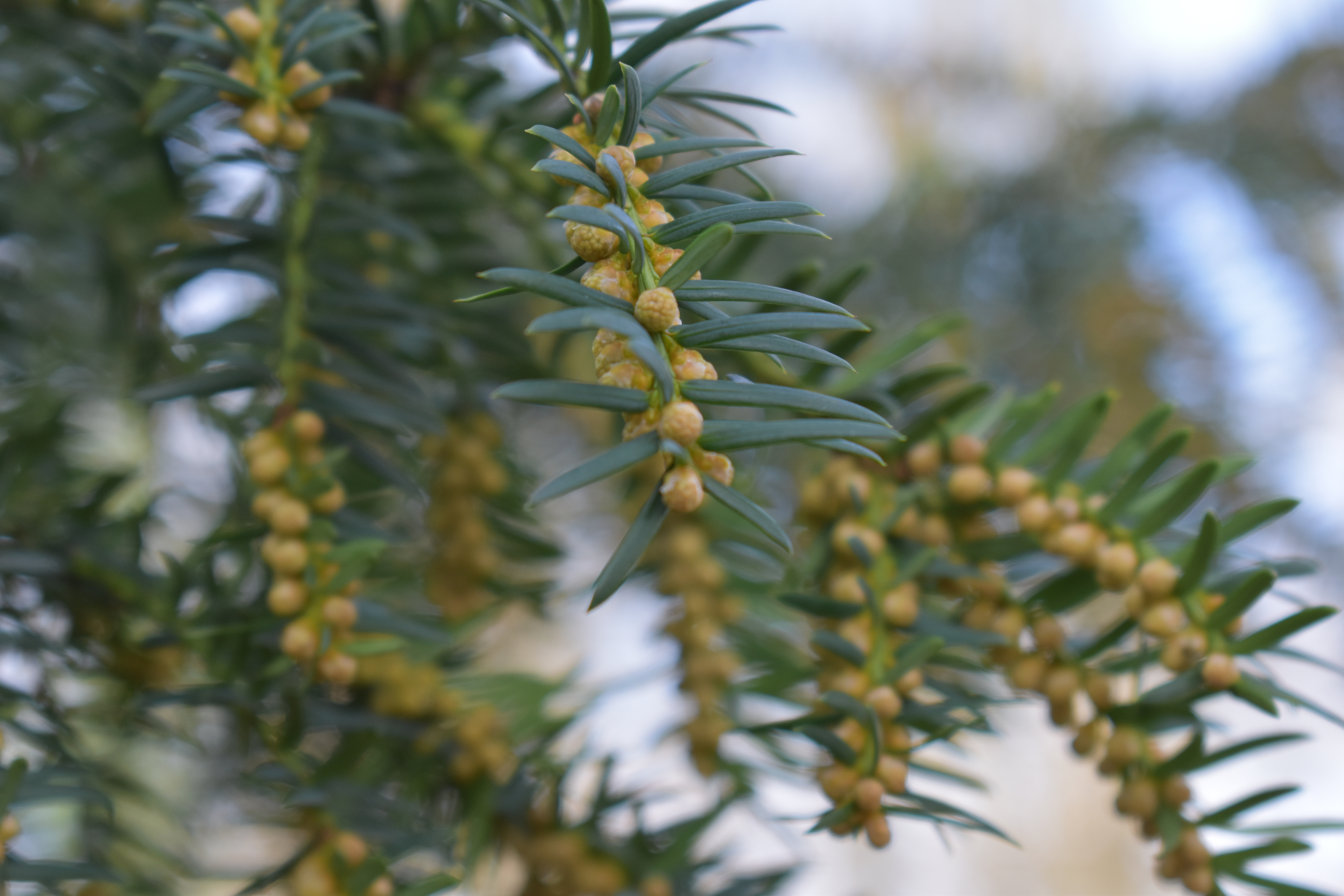 Leaving the snowdrops behind we discovered more different coniferous trees alongside our pathway, now muddy underfoot after recent wet weather. Looking skyward at mature coniferous trees they are such a strong contrast to the light open outlines of their deciduous cousins. Sometimes conifer foliage appears quite glaucous but others appear black and heavy. As we found each one we tried to photograph their needles or scales.