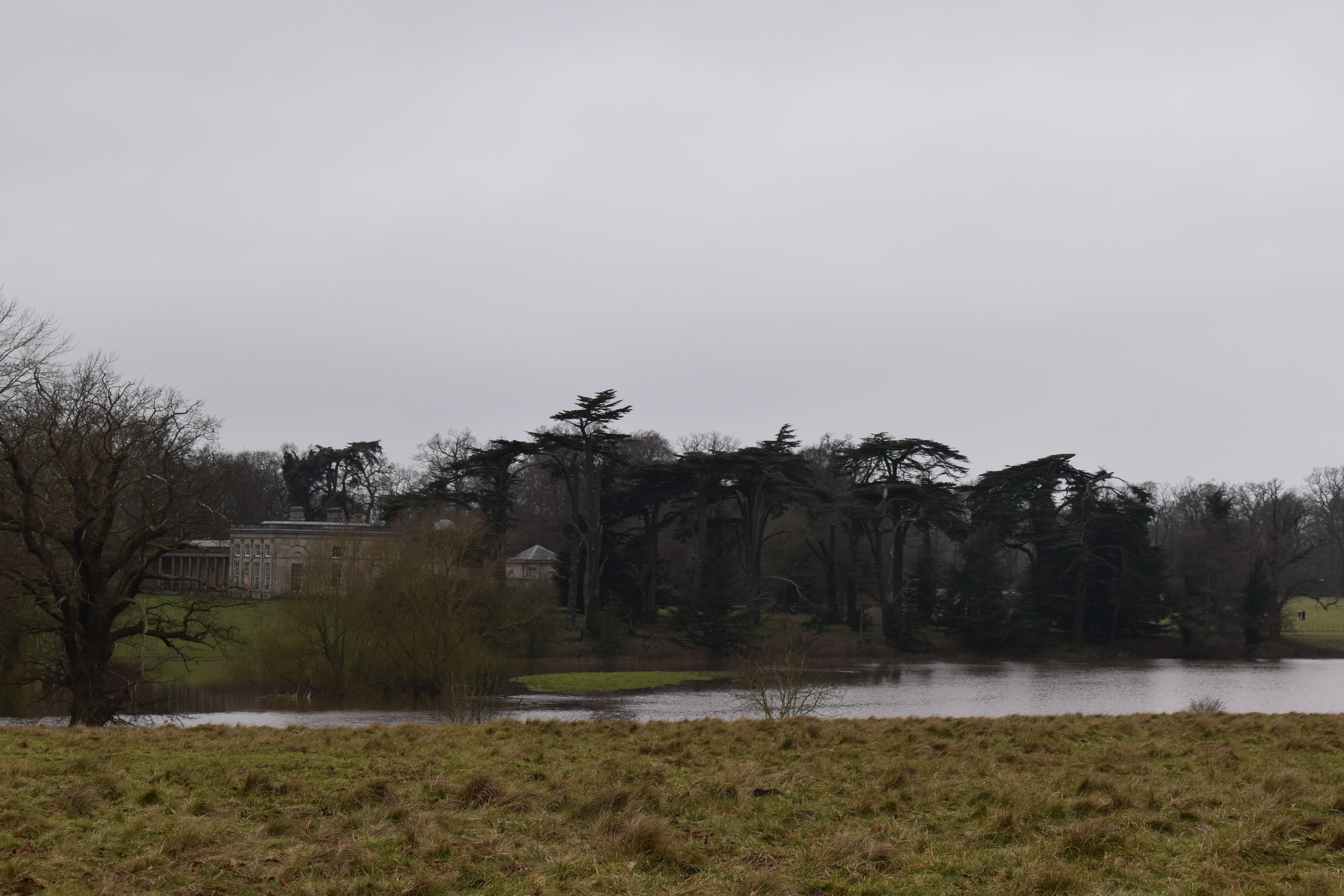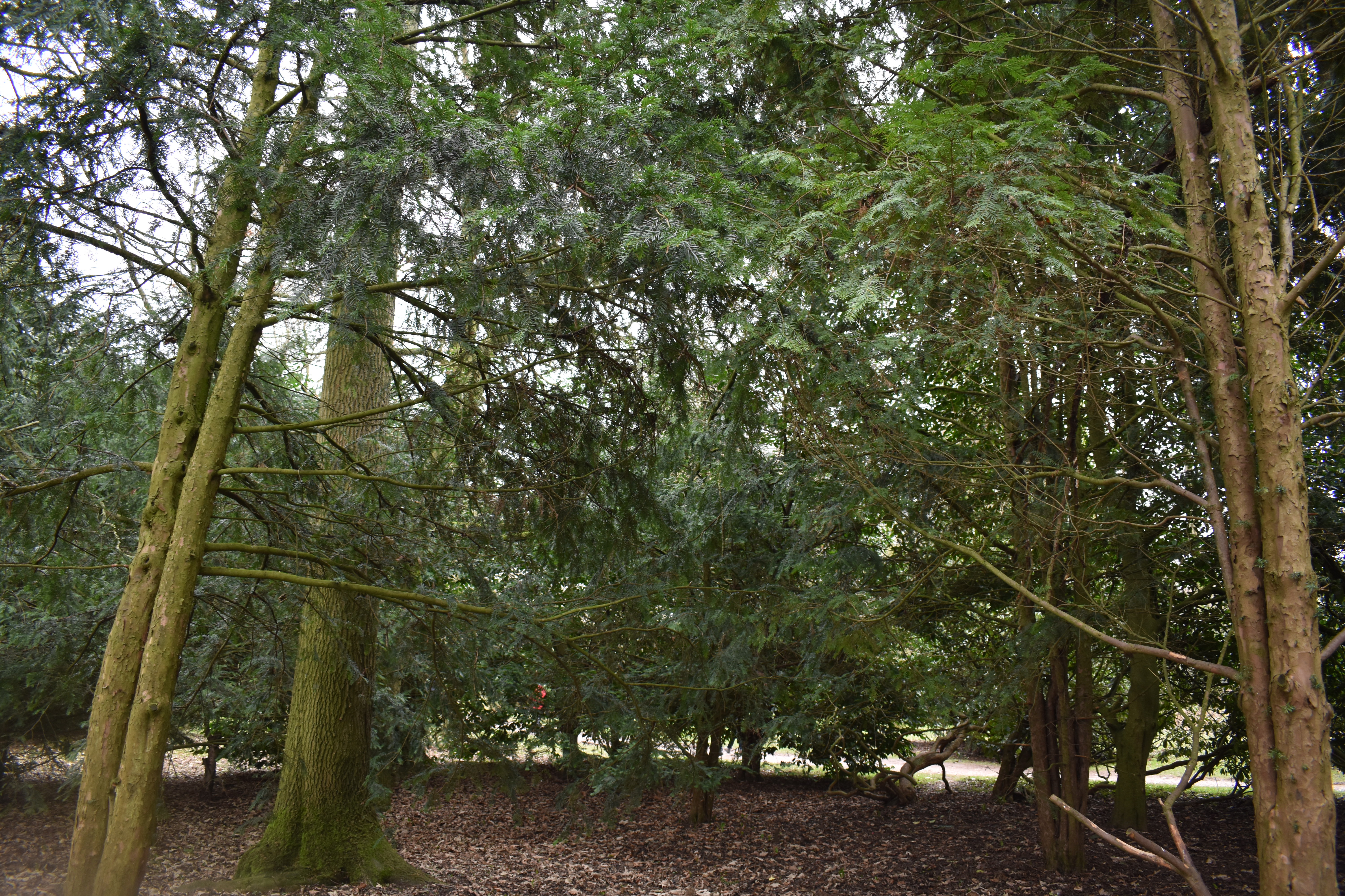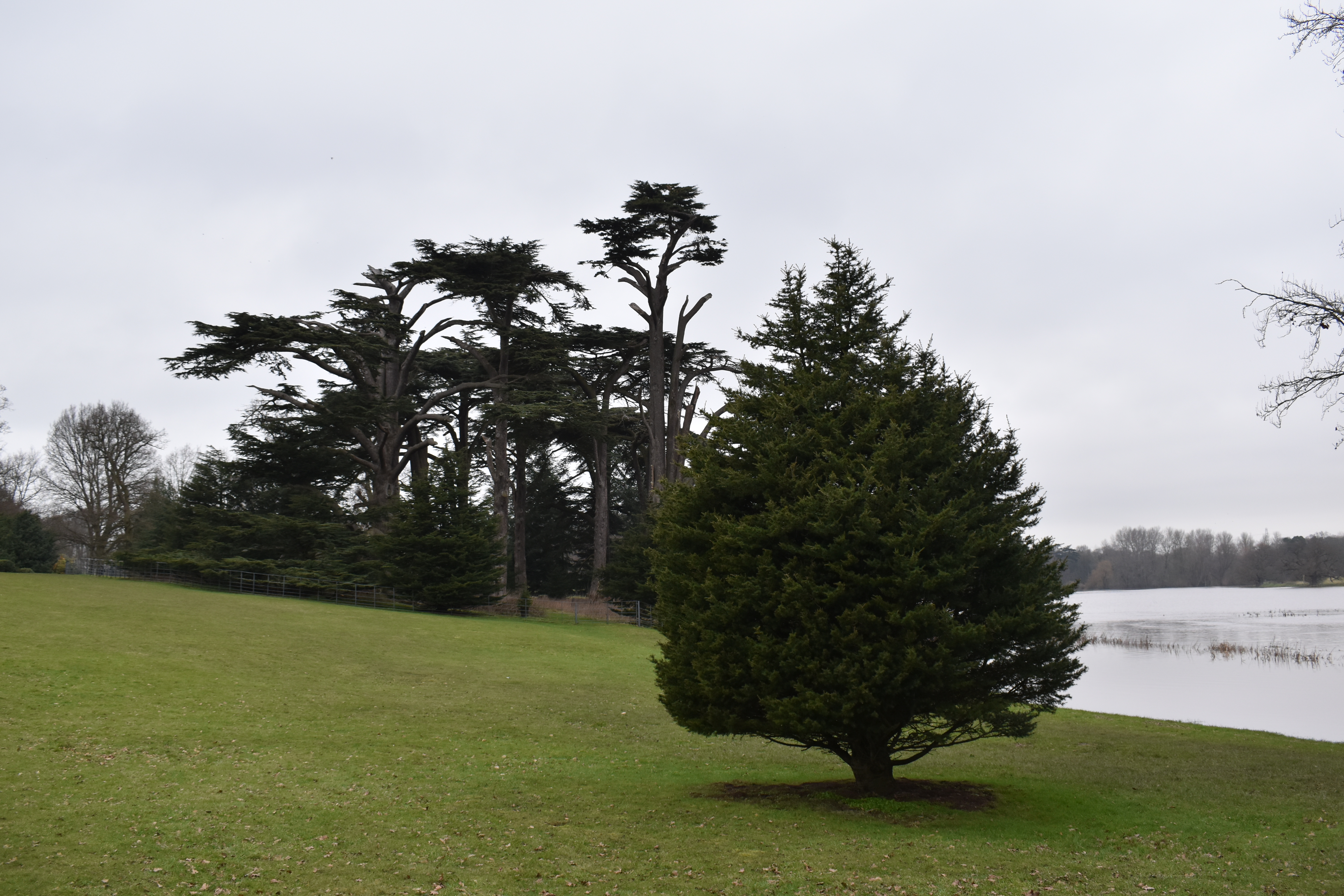 We had one final clump of very special coniferous trees to enjoy. We could see them as we left the woodland path filling the area between the river and the buildings. These are the ubiquitous cedars seen at most stately homes and they are need of constant attention from tree surgeons as they are dropping huge branches as they wither slowly away.