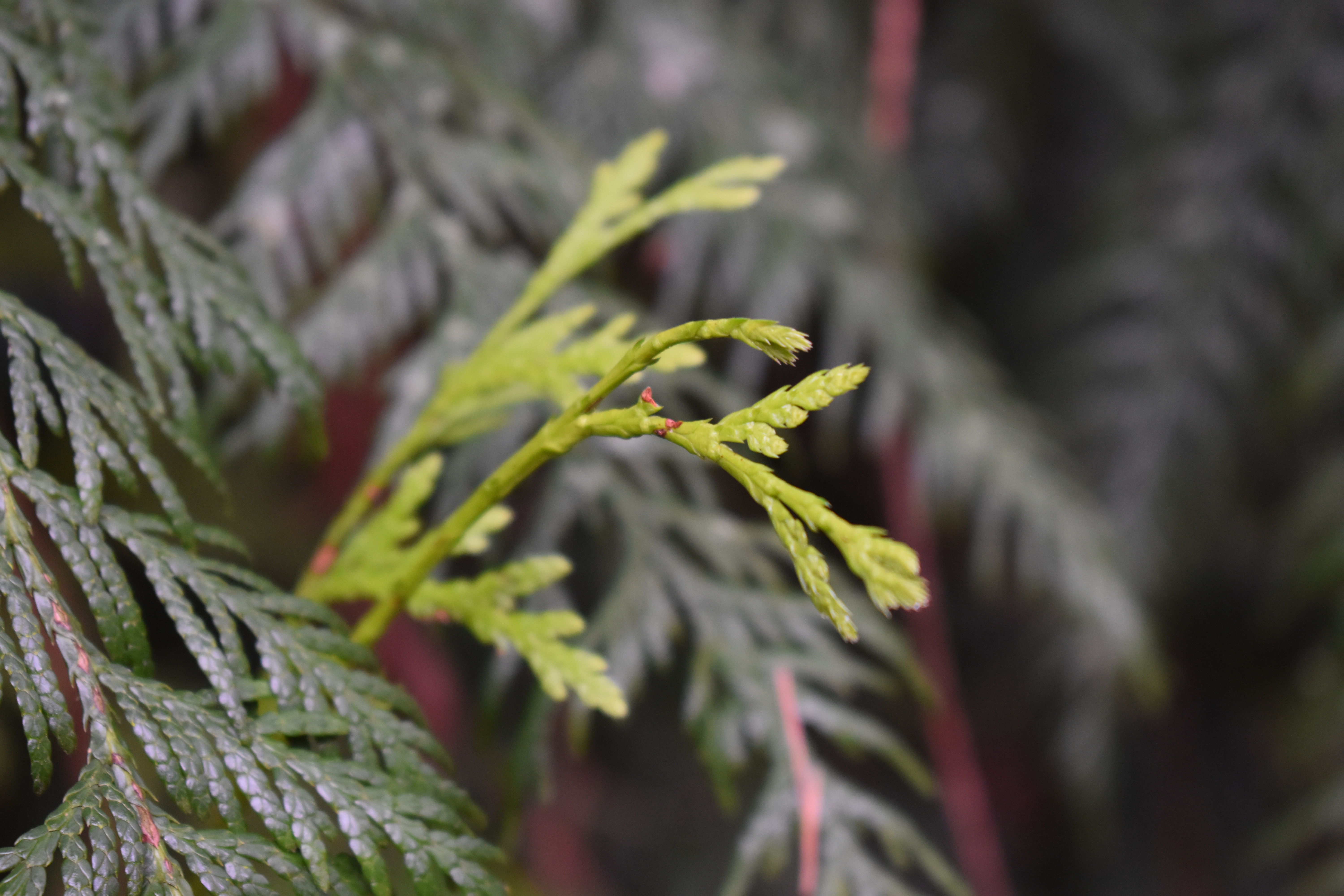 As we took a turn off the main track we came across the first of our conifers to have scales rather than needles. New growth was a bright grass green against the more glaucous tints of last years foliage.