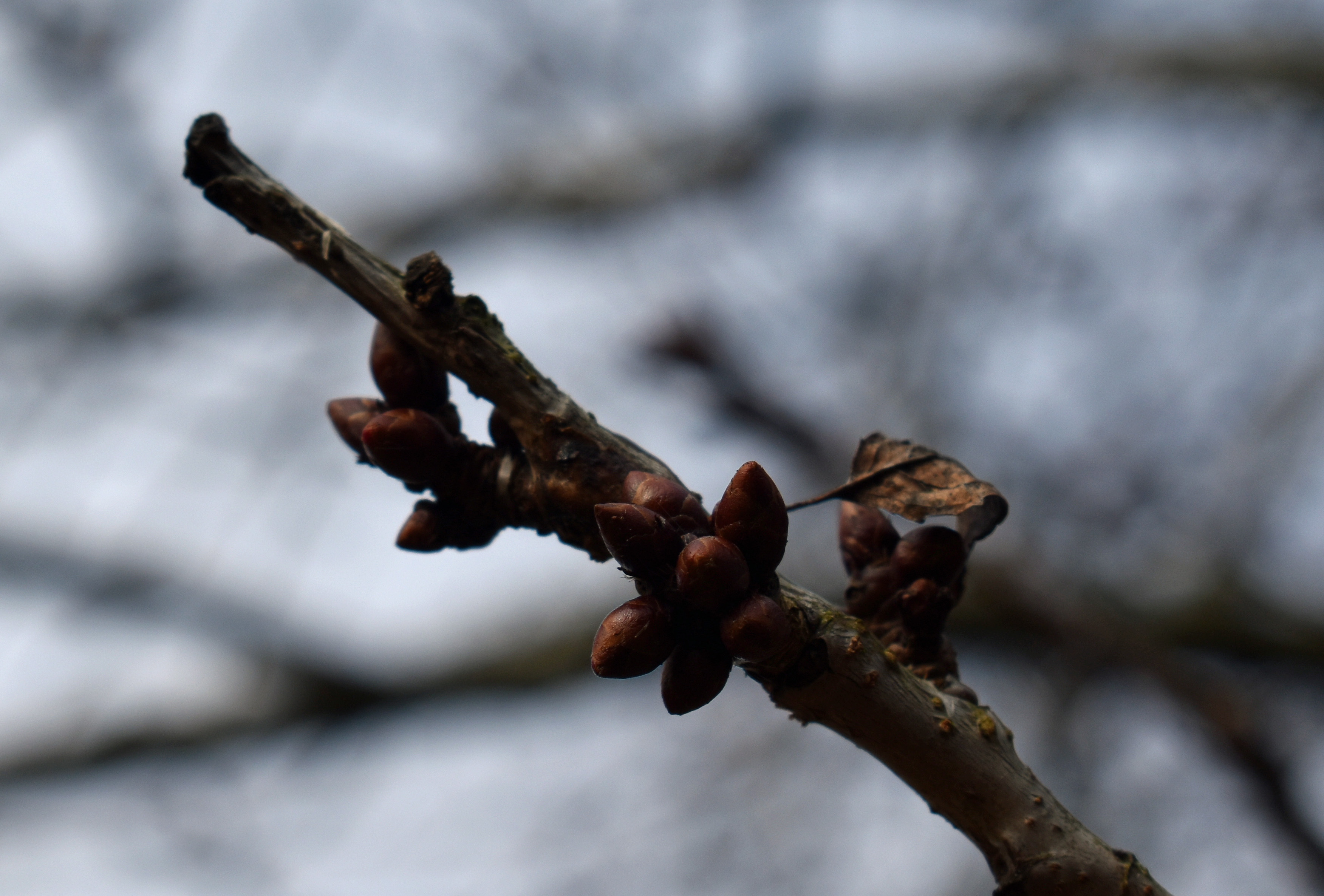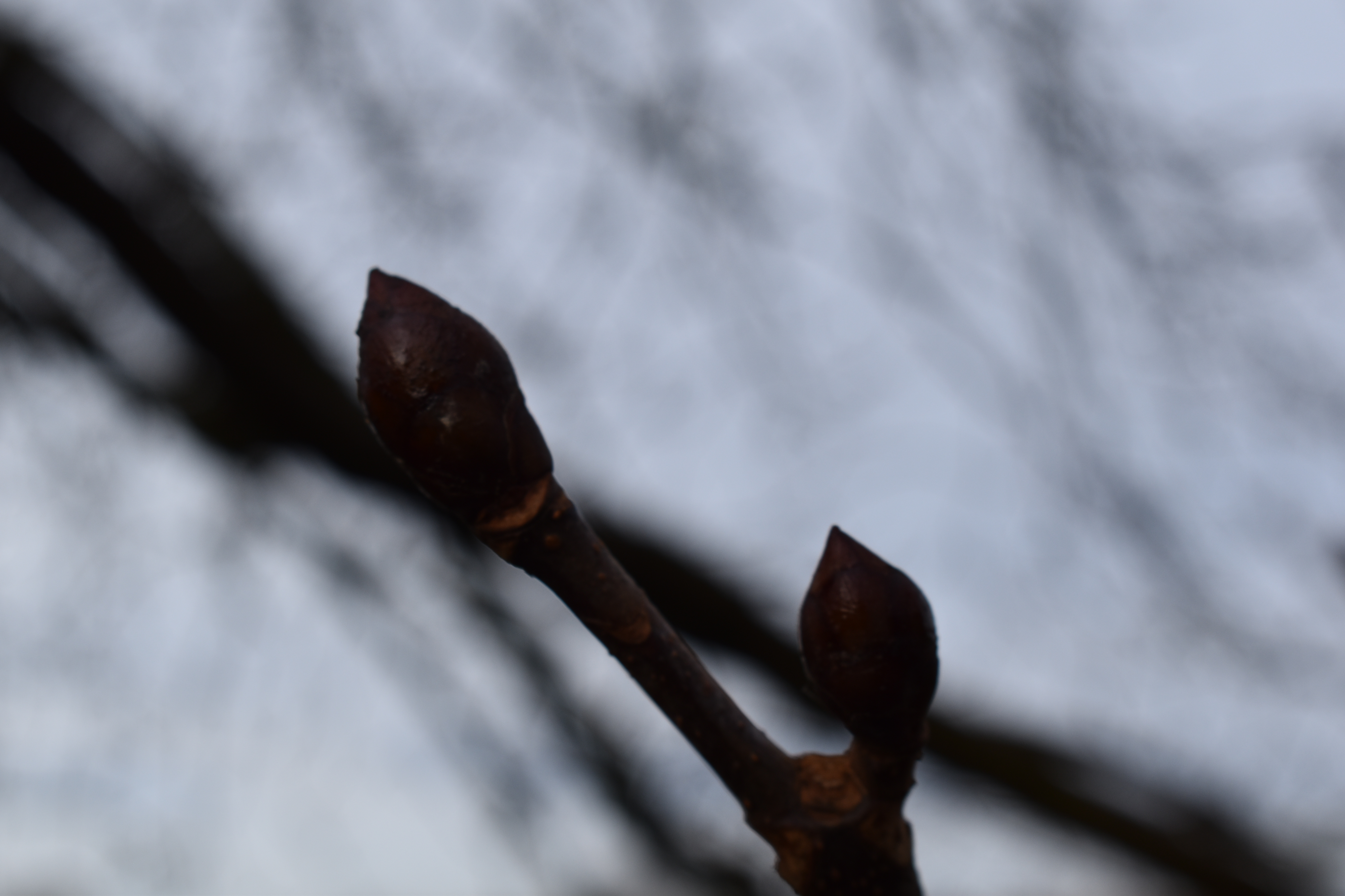 I decided to look out for early signs of buds hoping that some were showing promise of greener times to come. Leaf buds were very small with one exception, big sticky buds! I presume these were from a chestnut of sorts.