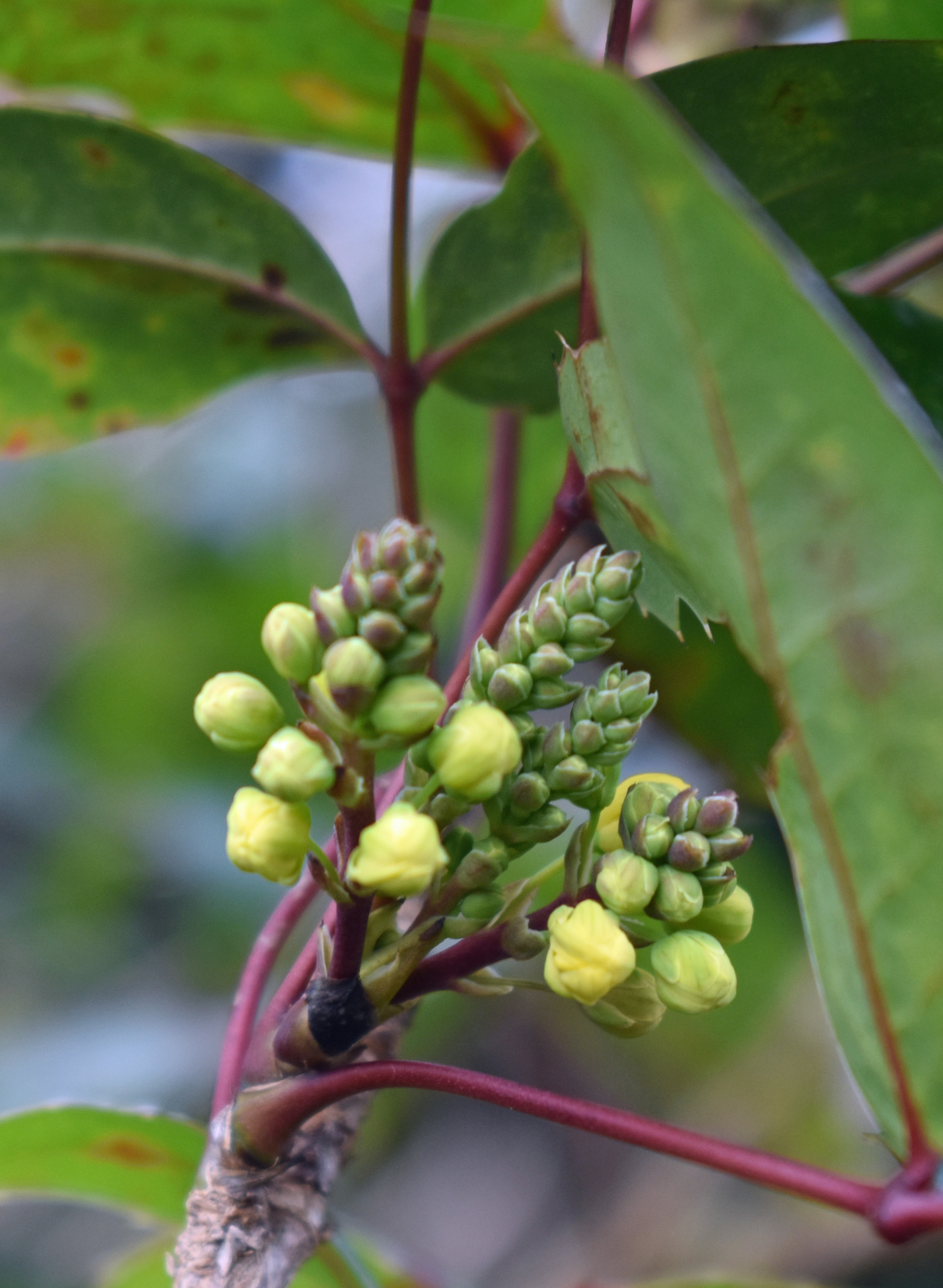 As we began our walk we began to find many buds of early flowers of evergreen shrubs like these viburnum intermingled with a few out of season brave souls like this rose.