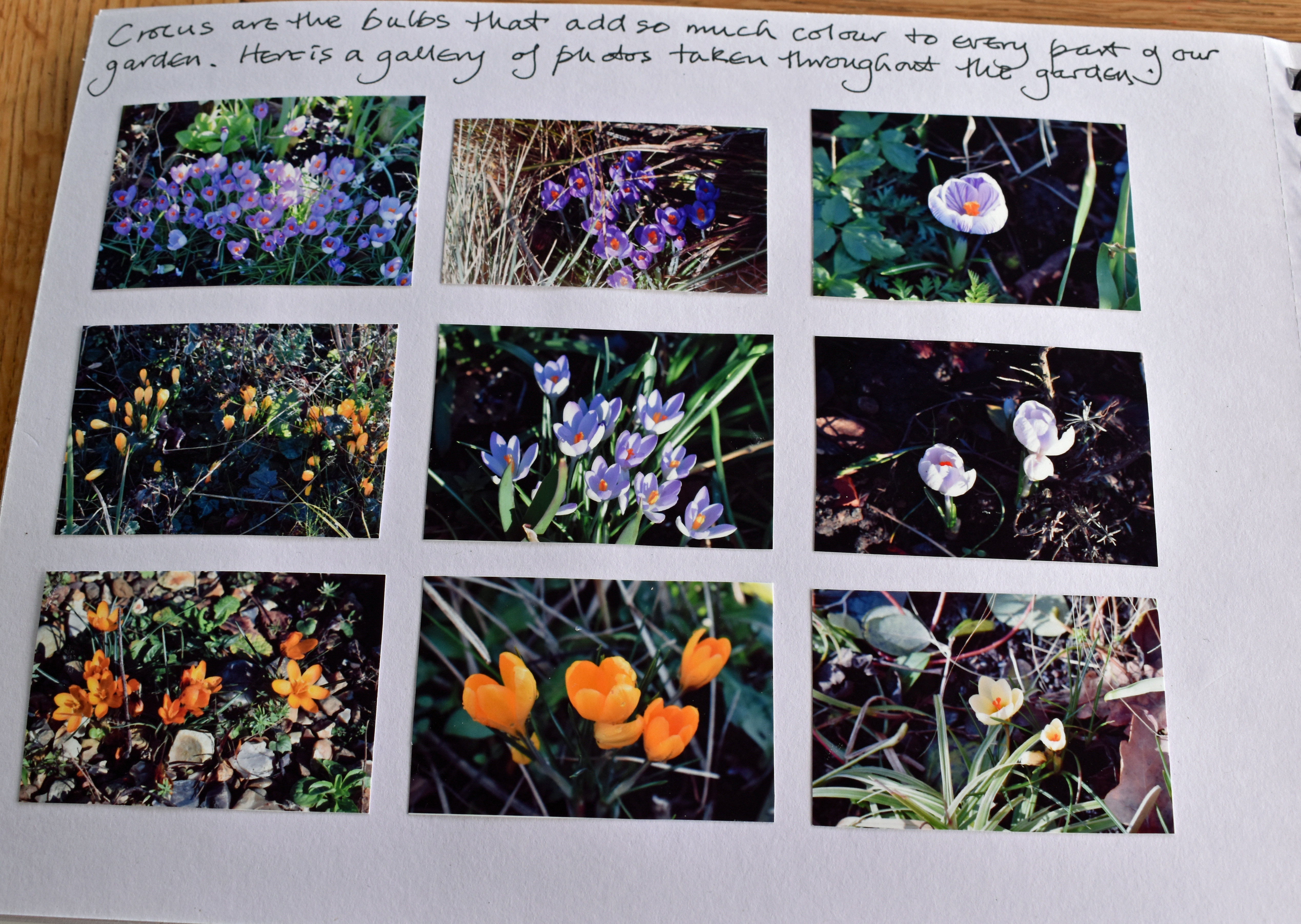 More bulbs appear over on the next double page spread, this time crocus. I wrote, “Crocus are the bulbs that add so much to every part of our garden. Here is a gallery of photos taken throughout the garden.”