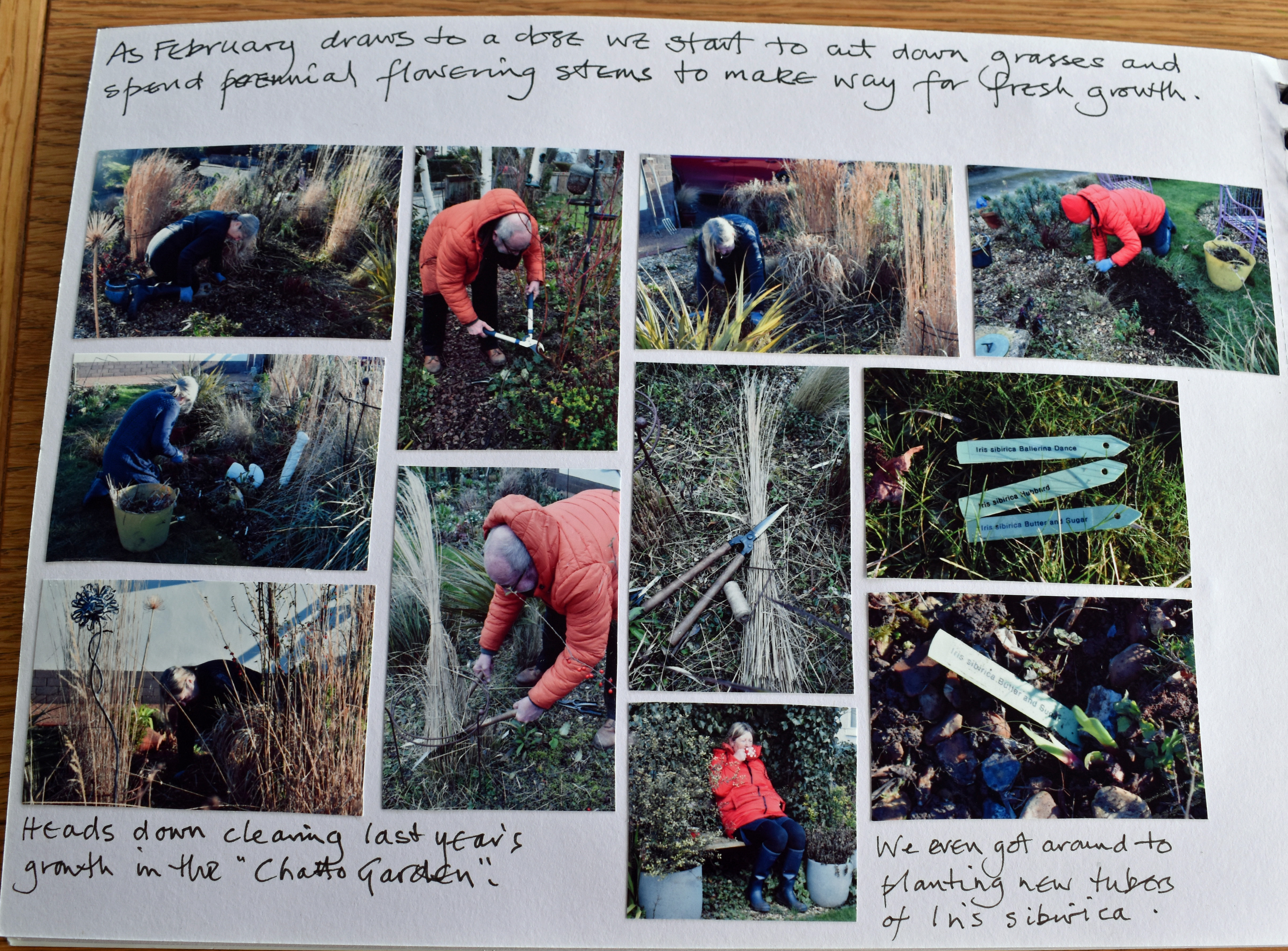 My last page for this month looks at some of the garden tasks we have been tackling. Here I wrote, “As February draws to a close we start to cut down grasses and spent perennial flowered stems to make way for future growth.”