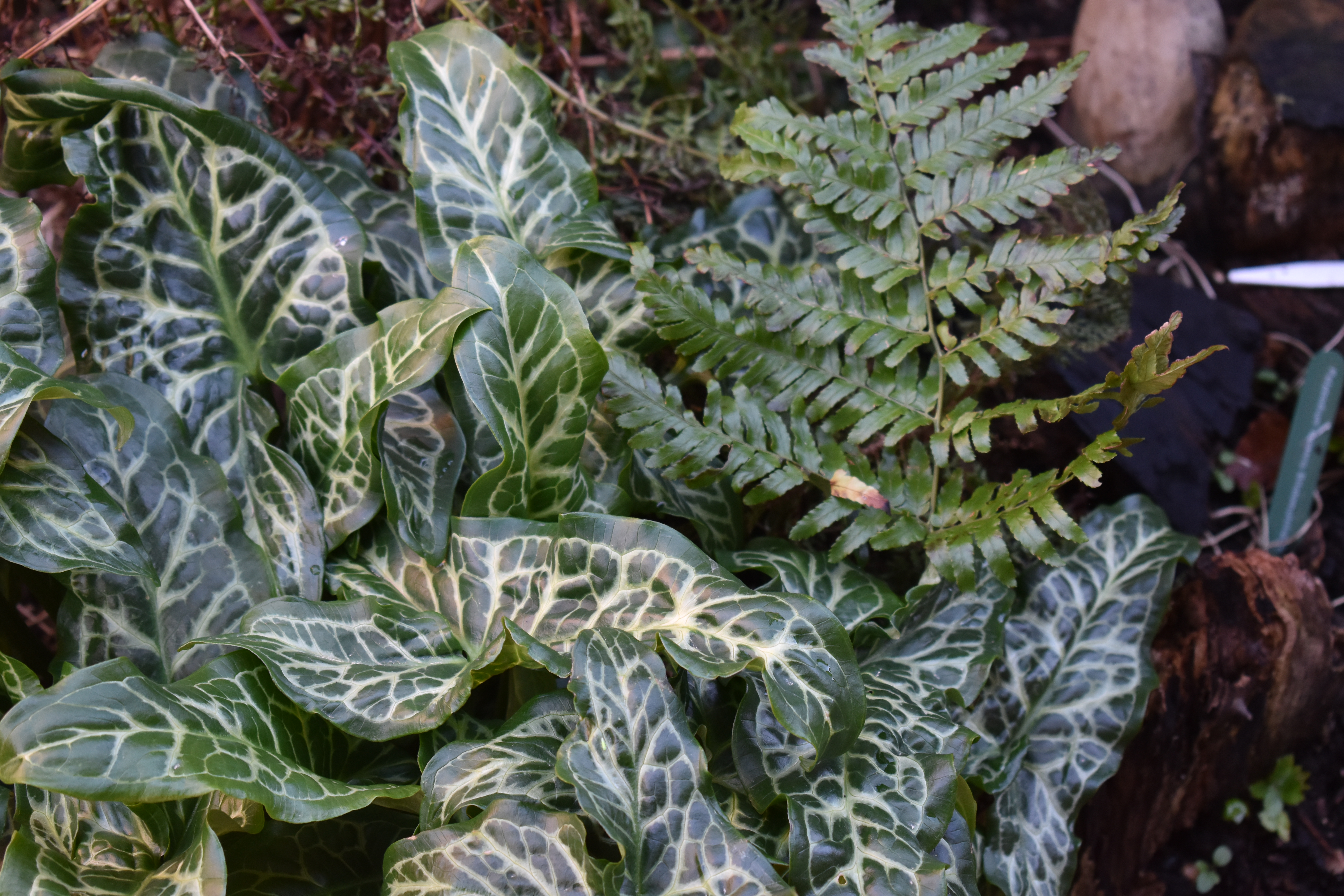 Foliage takes over next and it provides much more subtle colours, mostly shades of greens. “When we work away at our borders in the second half of February we are amazed at how much fresh foliage growth there is to see. Arum varieties look at their best now. They are joined by carex, cyclamen and celandines.”