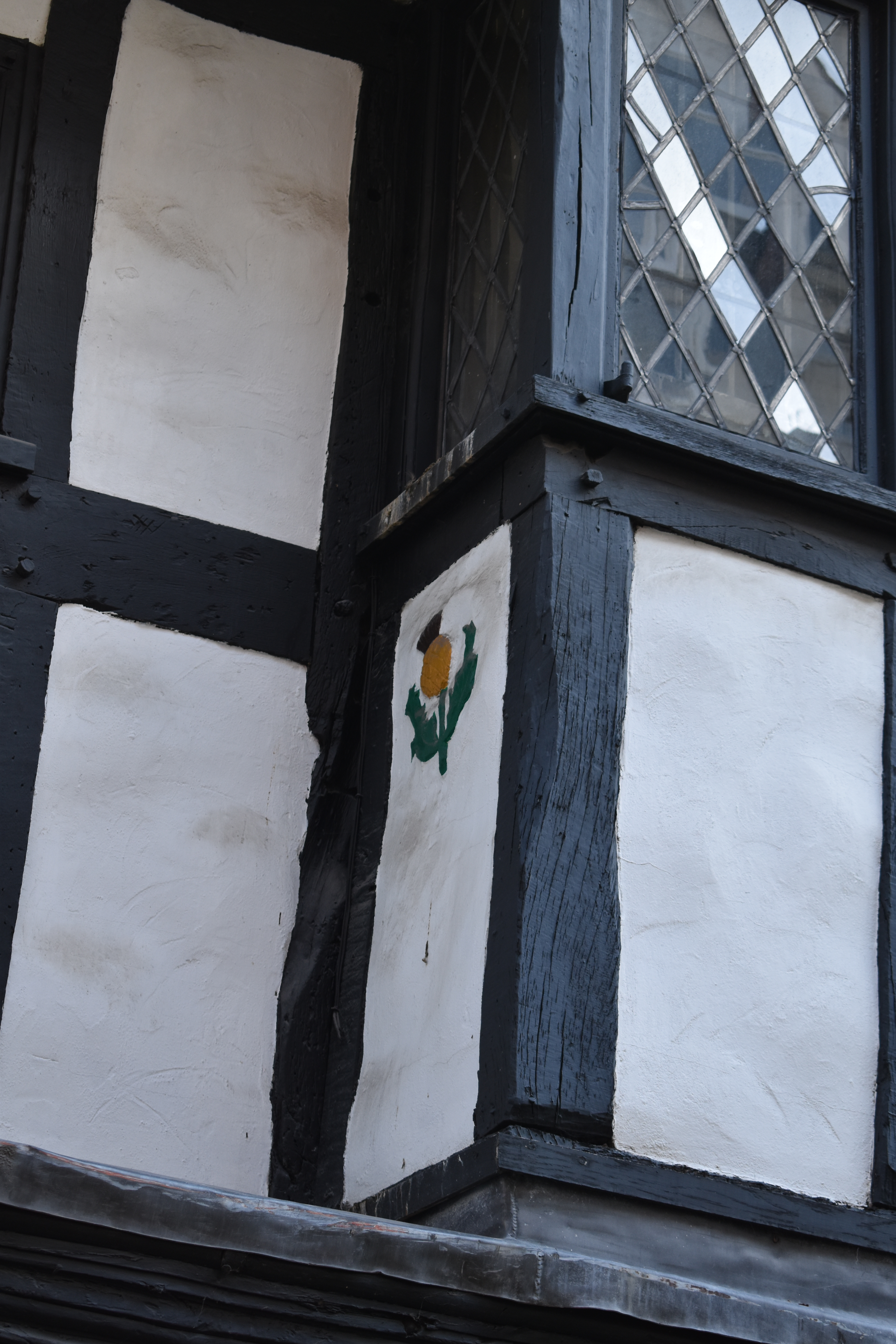 We left the openness of the green space and wandered back into town, via quiet red-bricked backstreets. We were aiming for Wyle Cop, a steep shopping street full of ancient attractive buildings housing unusual shops.