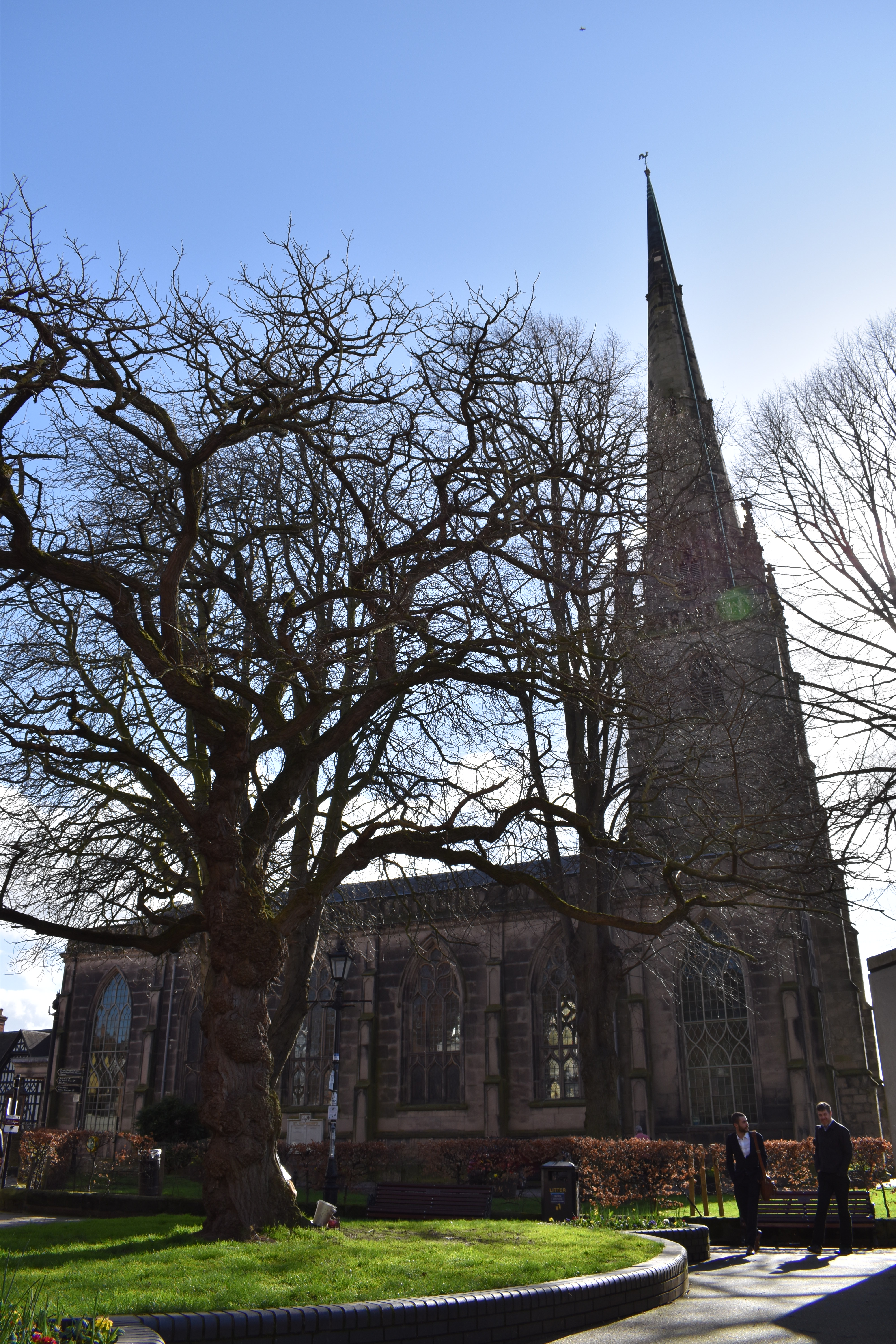 From the square we made our way towards another open area, the home of the original St Chads church. Today it presents as a green space dotted with seats for locals to rest and chat upon. The only stone work showing is a red sandstone chapel. The main church collapsed and was reduced to a pile of rubble overnight back in 1788. Thomas Telford designed its replacement which is still standing near the town park. I have a photo of the new church in my next blog – part two of this wander around Shrewsbury.