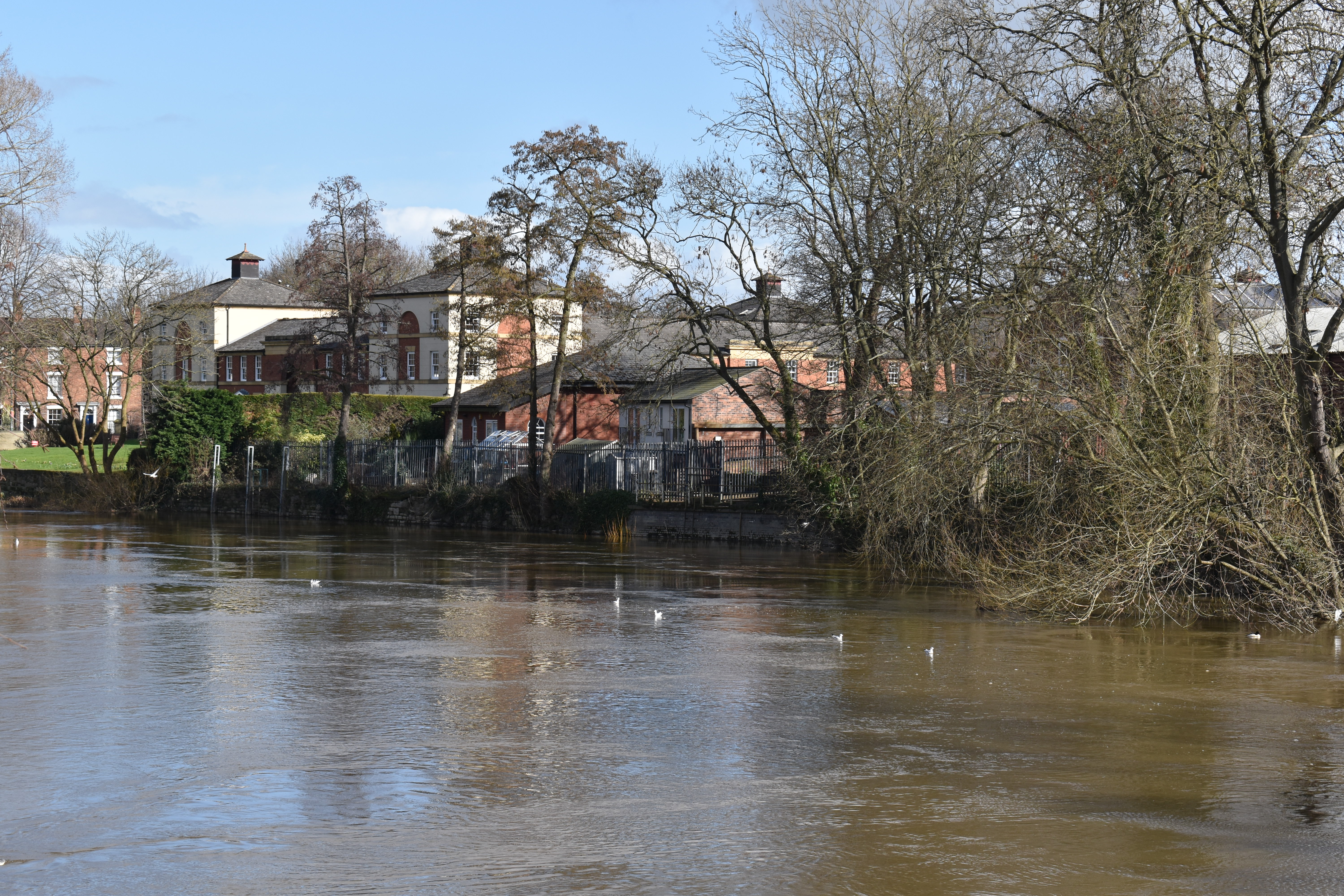 As promised we are back on our town wanders around Shrewsbury carrying on as we arrived at the river. We took a short but steep flight of stone steps to the toll path but flooding took away our choice of going left or right. Only our path to the right was open! To the left the path was under water!
