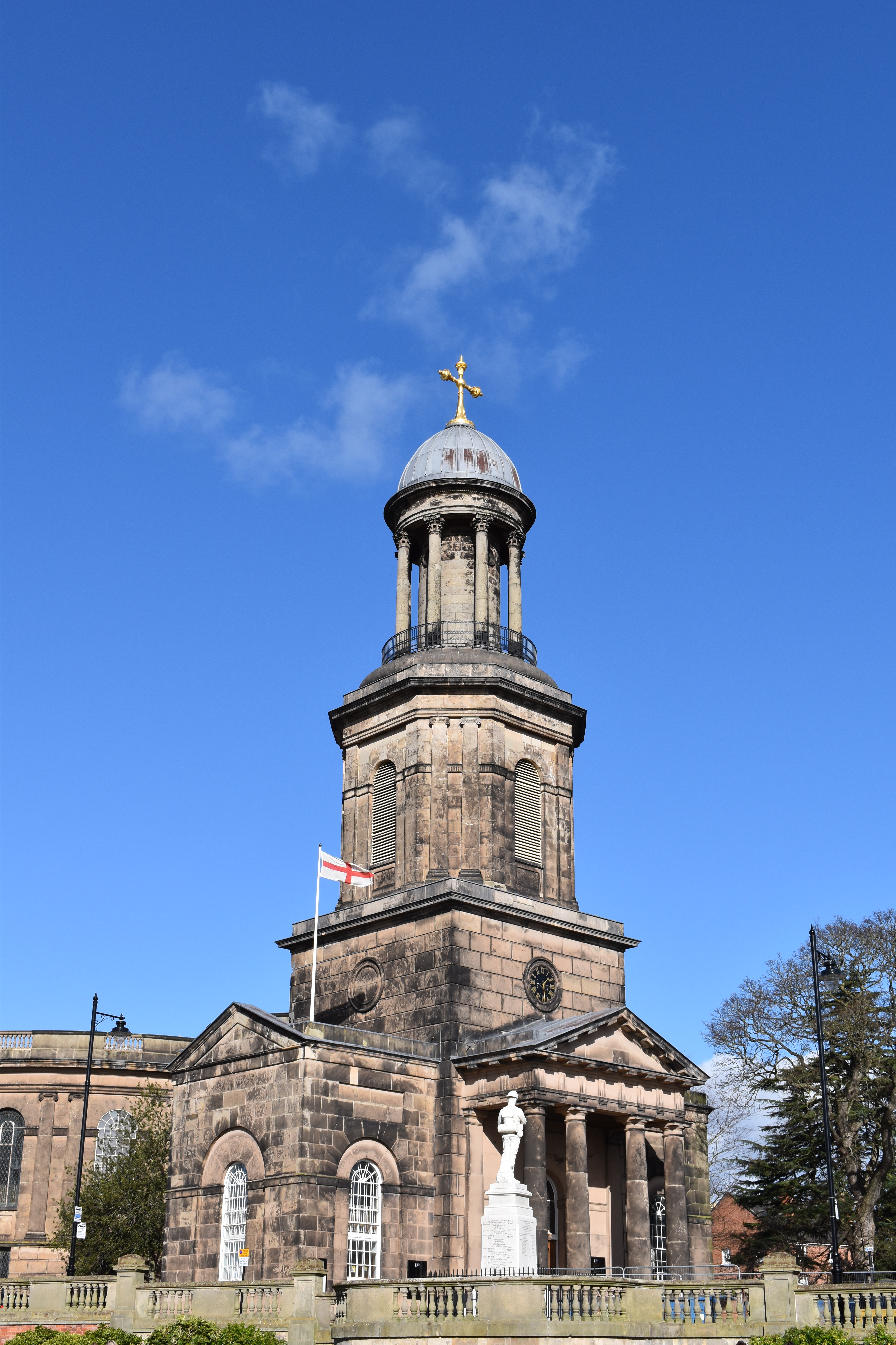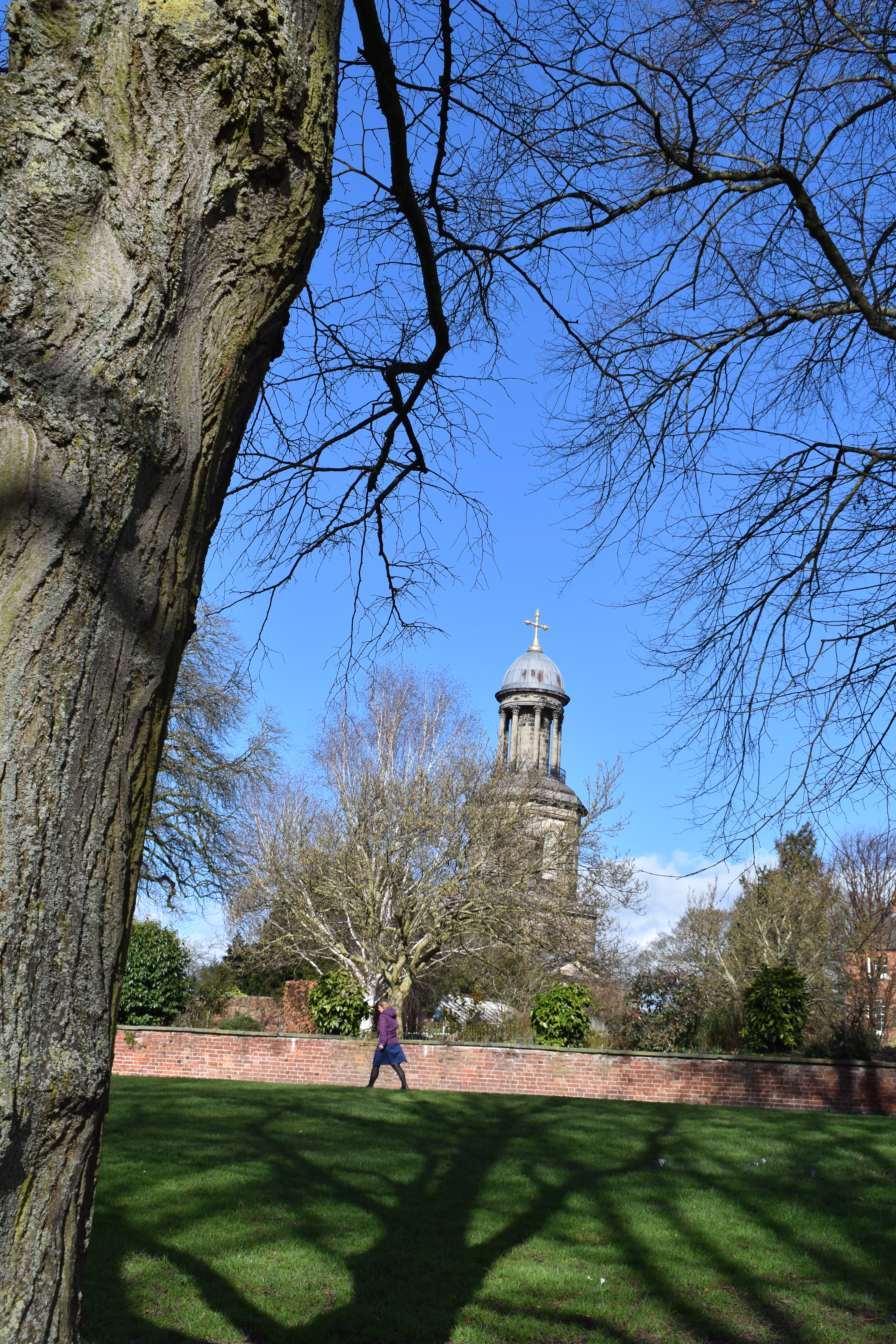 The grassed area of the park is on a slope upwards back towards town and towards the top of this slope we began to see the new St. Chad’s Church with its tower topped by a golden cross which caught the sun.