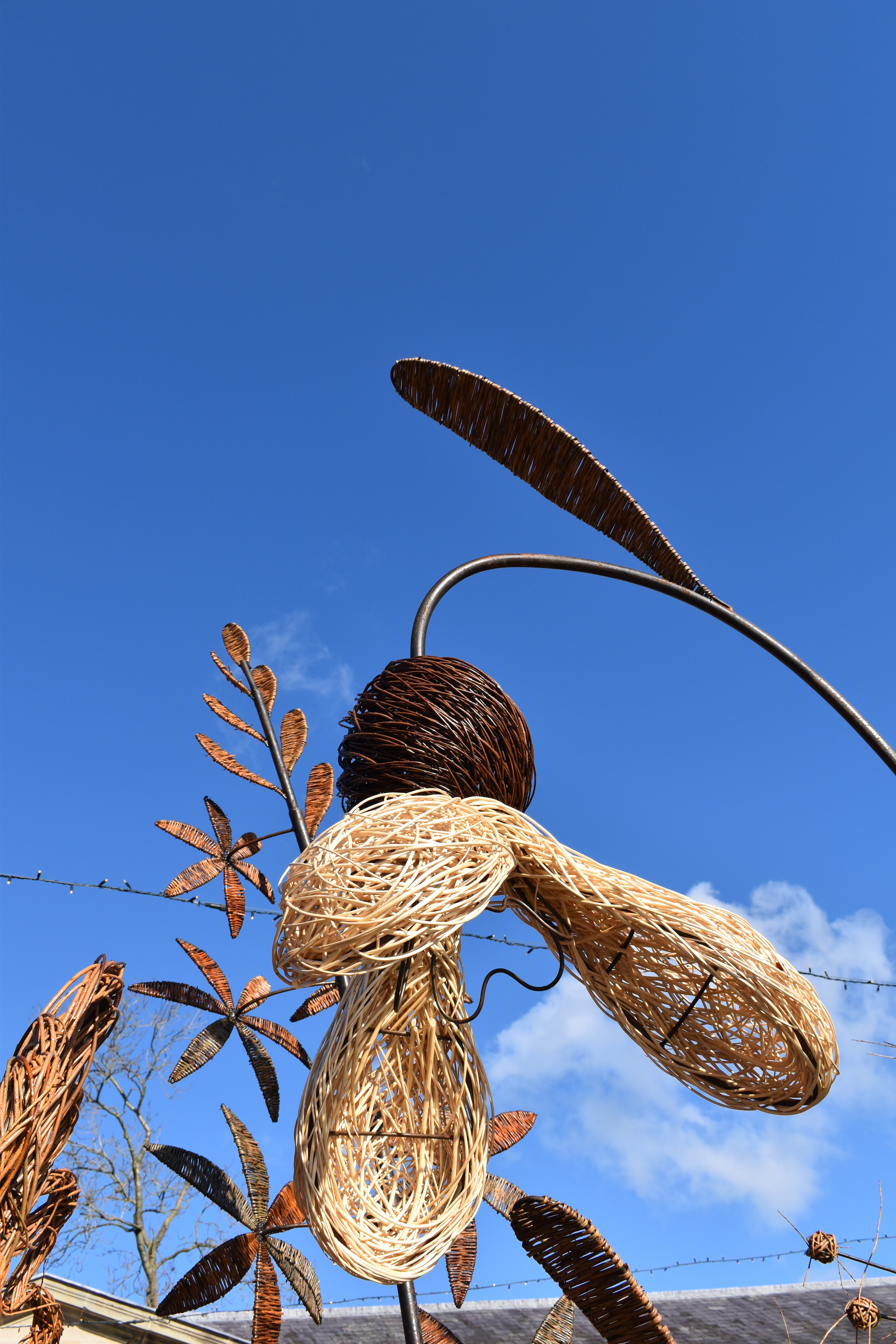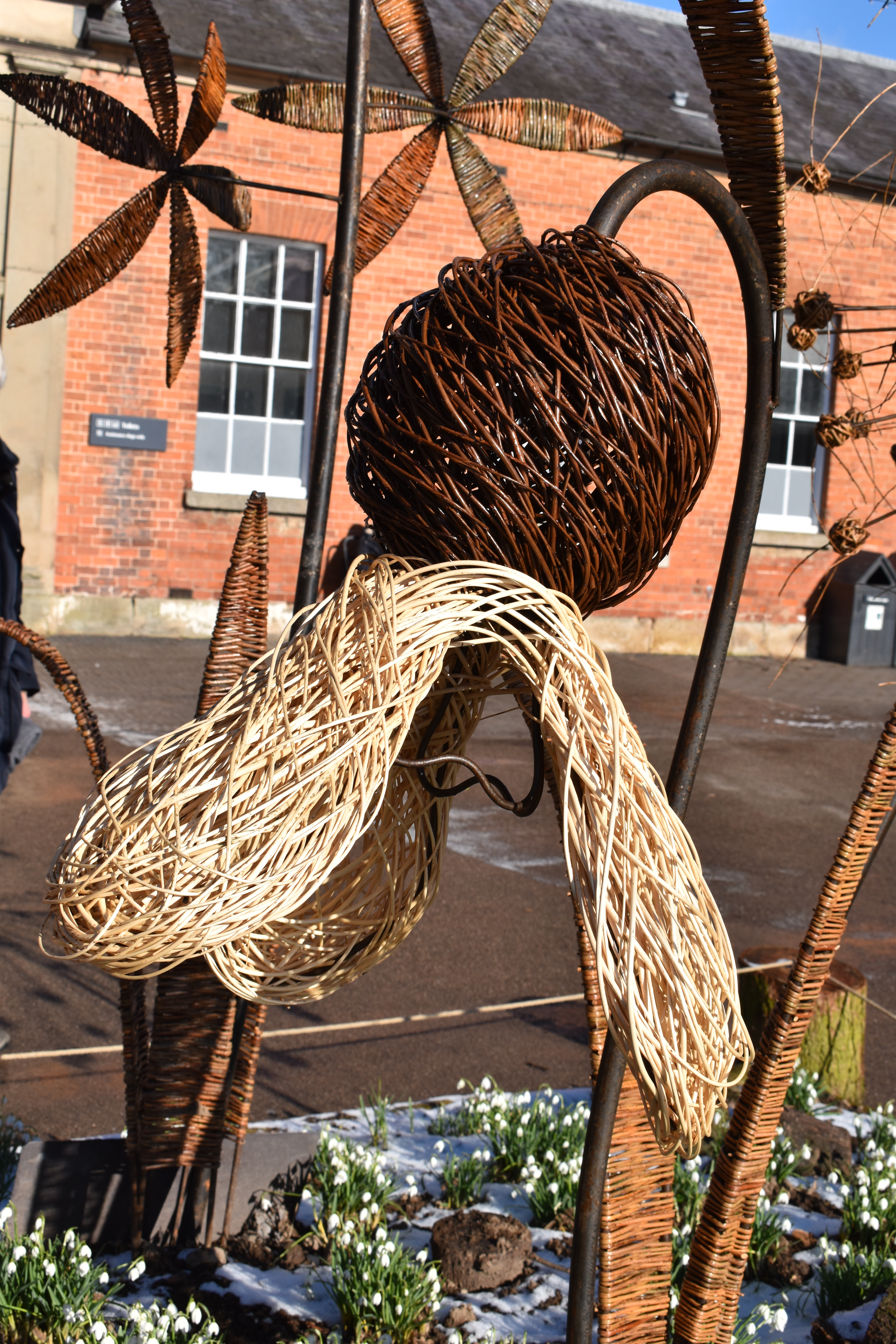 As we followed the gravel path to the stable yard these trees took our attention, silhouetted against a beautiful blue wintery sky. In the stable yard we collected our coffees and cookies and then admired the willow sculptures.