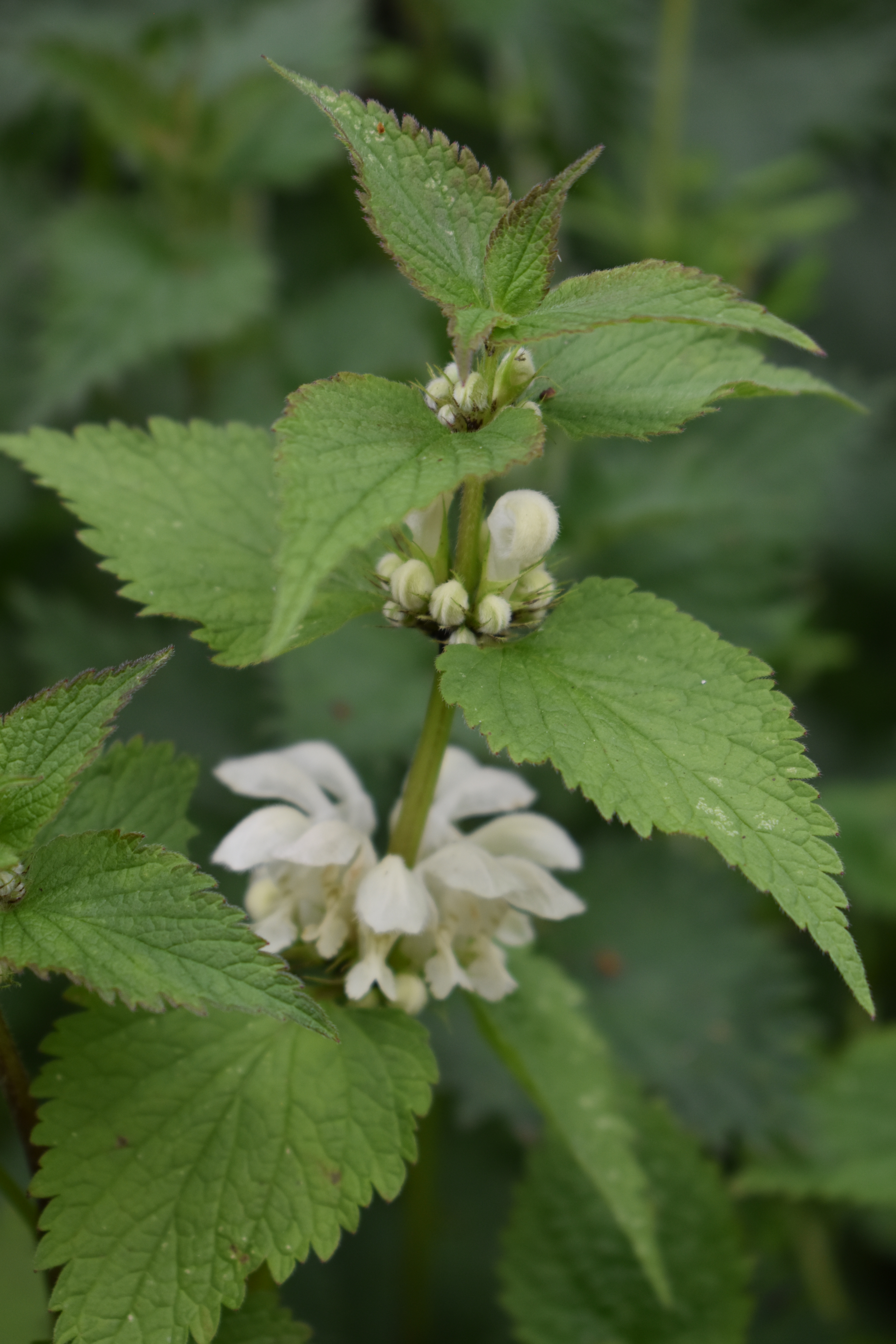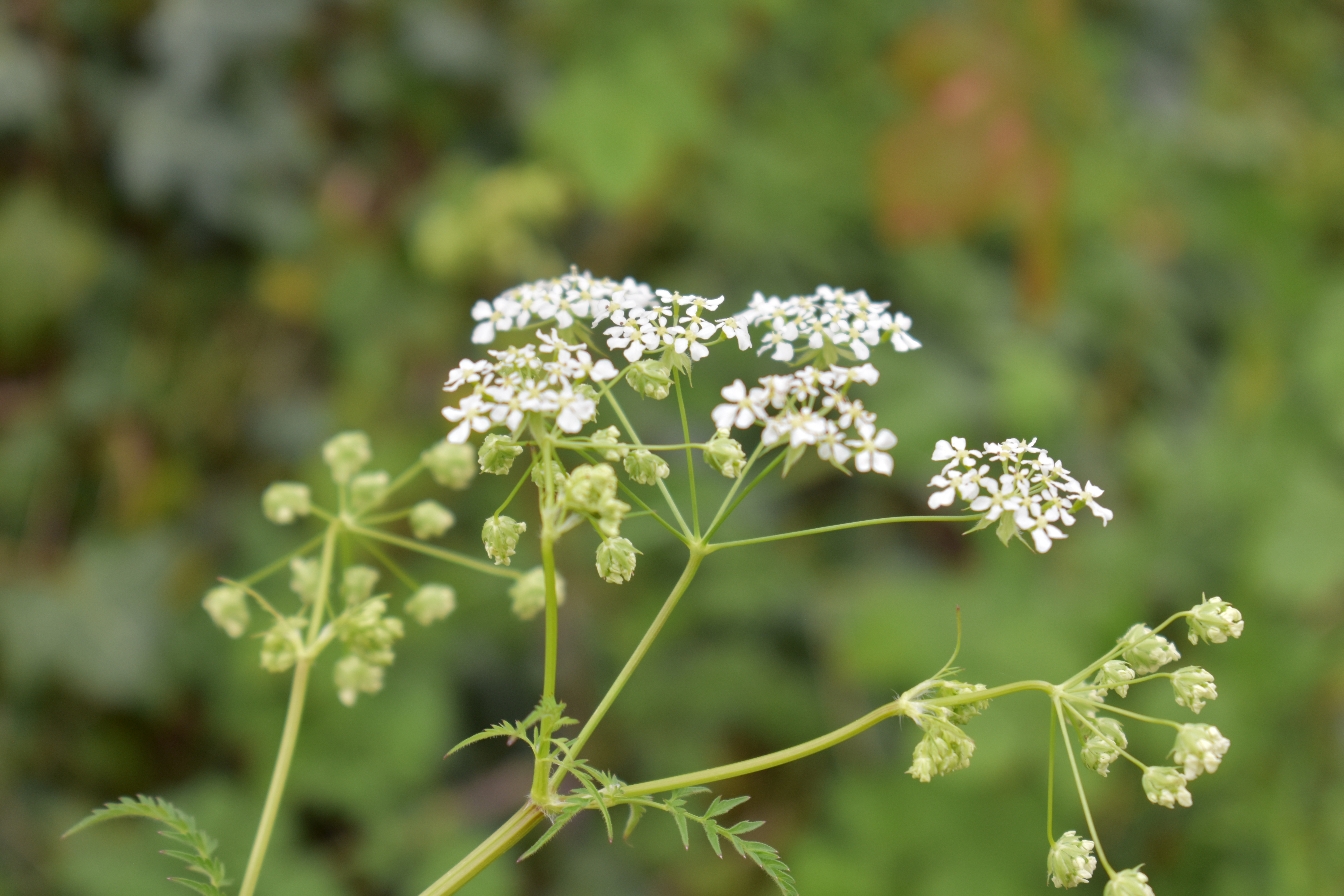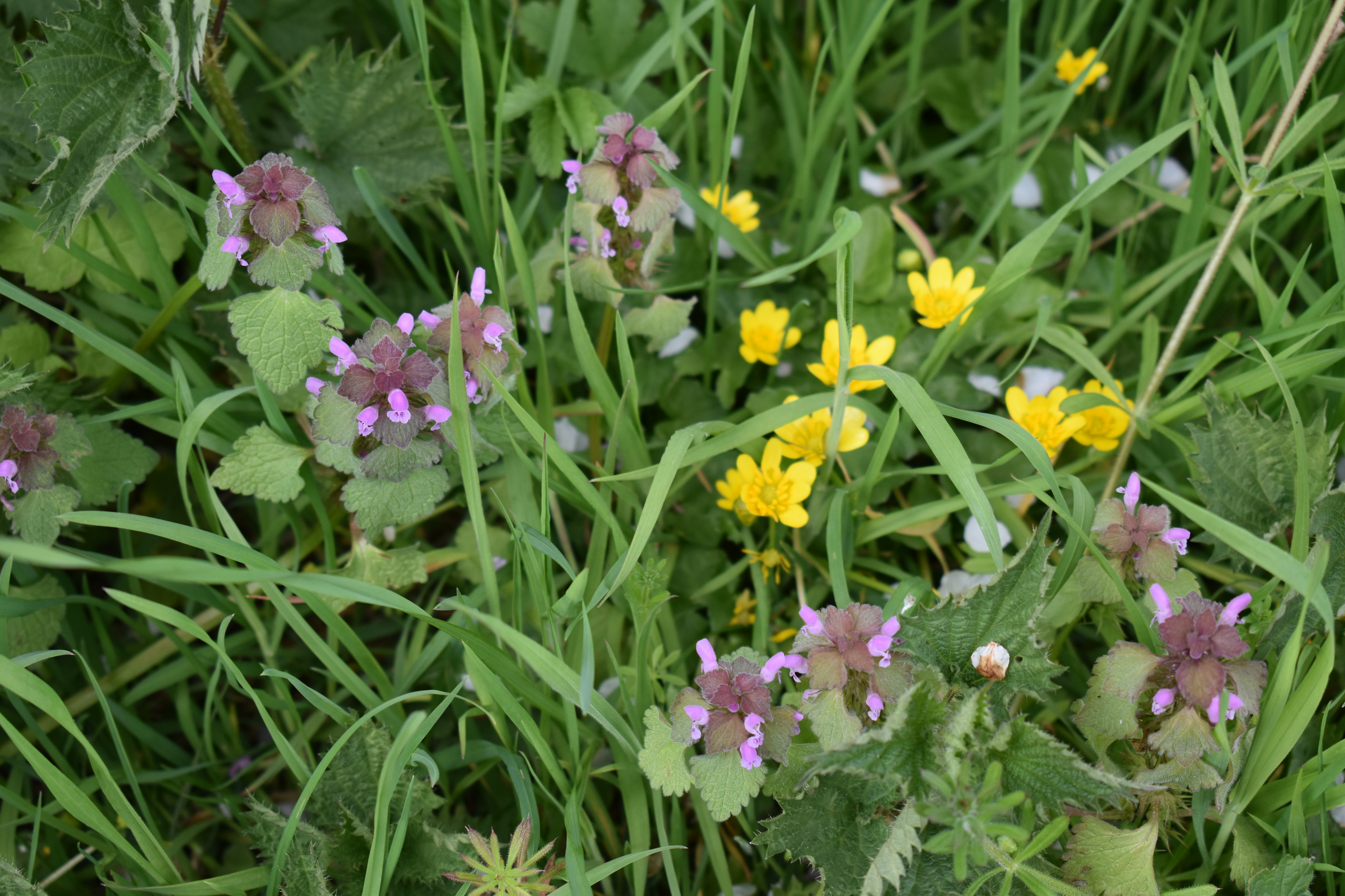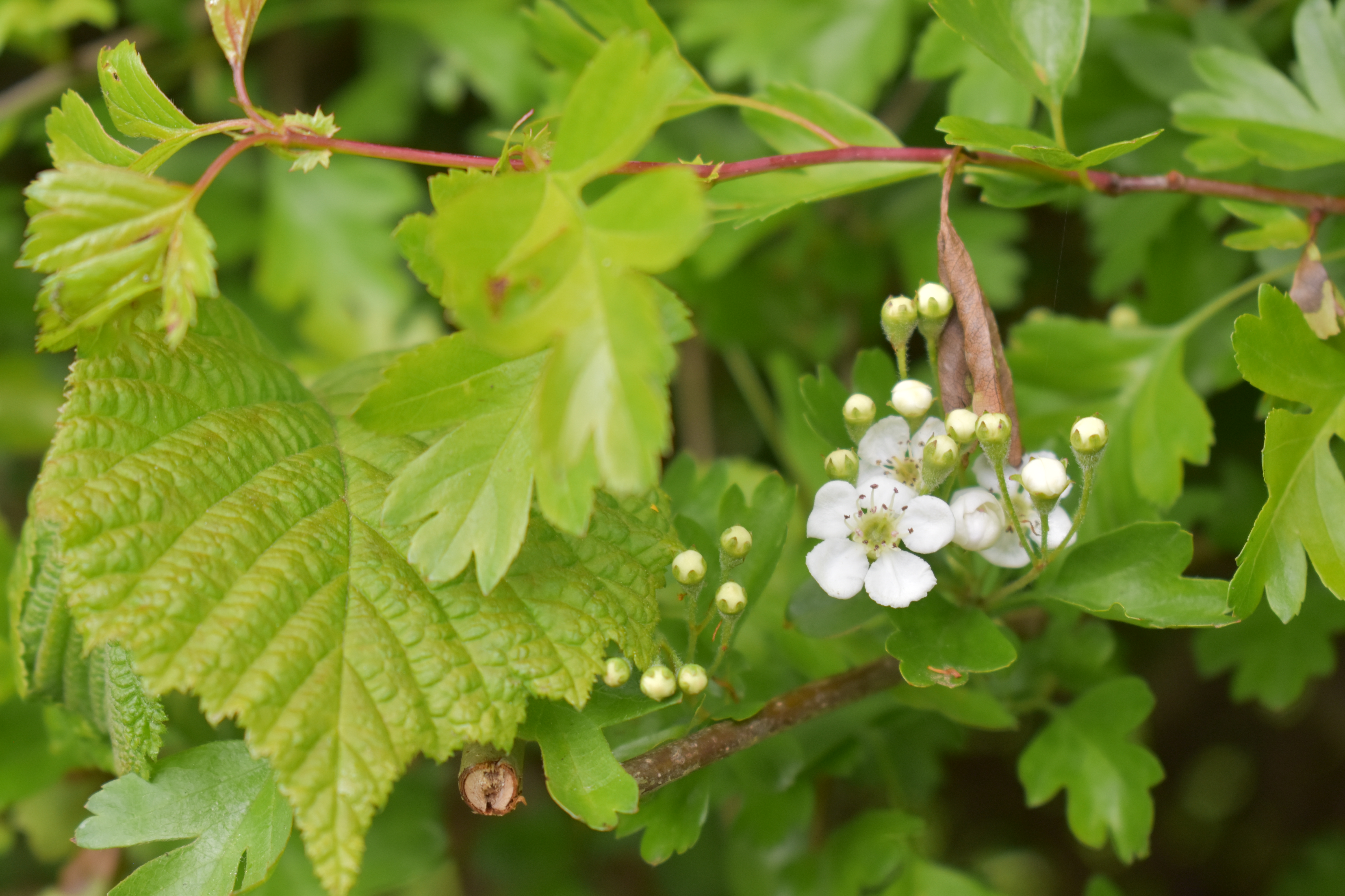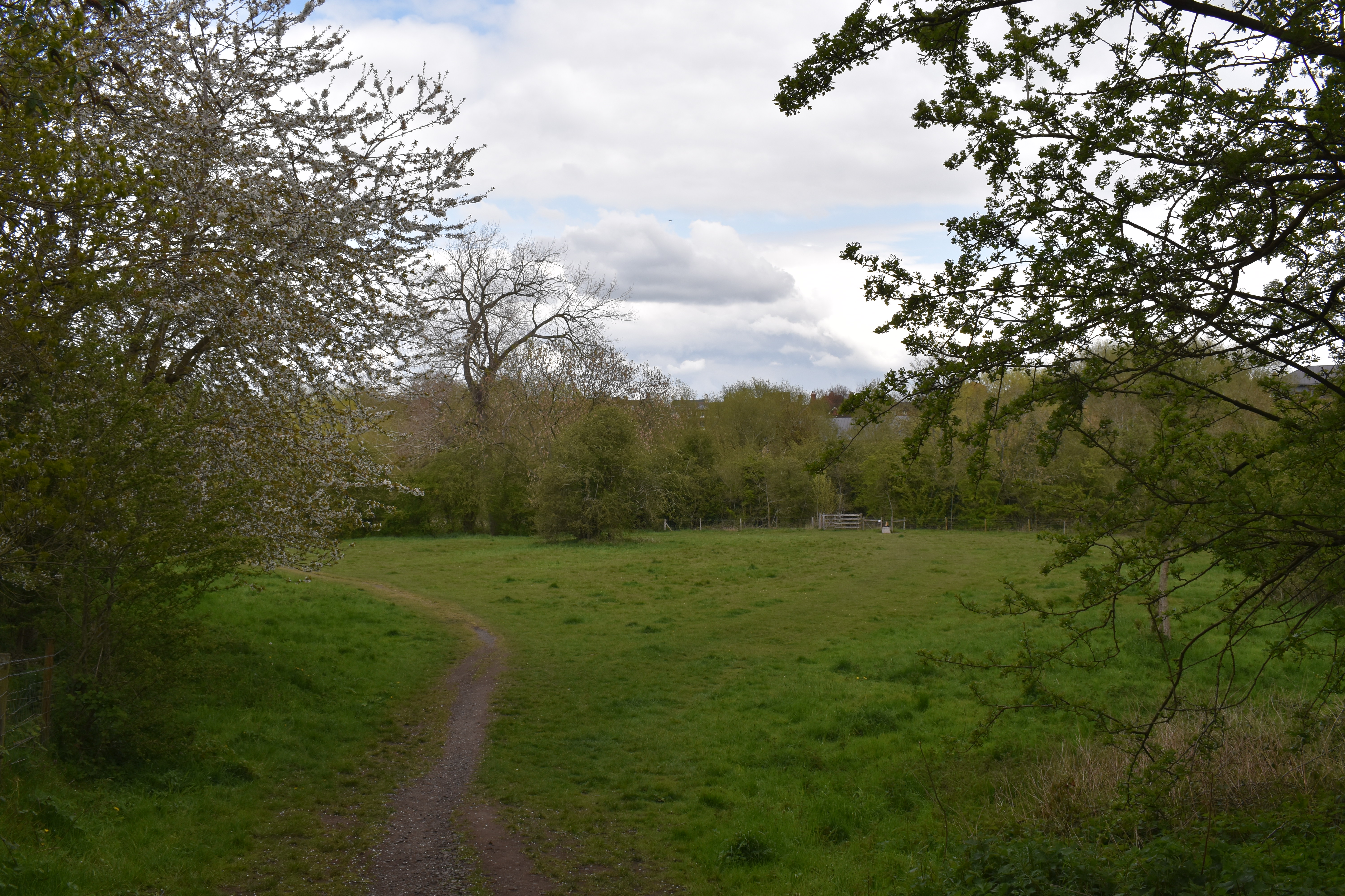 Our first real glimpse of the Rea Brook was to our left as we passed the supermarket where it ran at the bottom of a steep nettle covered bank. These would have provided plenty of food for caterpillars of some of our common butterflies. A little further on we enjoyed the blossom of an ornamental cherry. Soon, after wandering through a pasture field with shiny black cattle in, we found ourselves walking on the site of the Old Potts Railway track and here we found more wildflowers and even the odd reminders of its past.