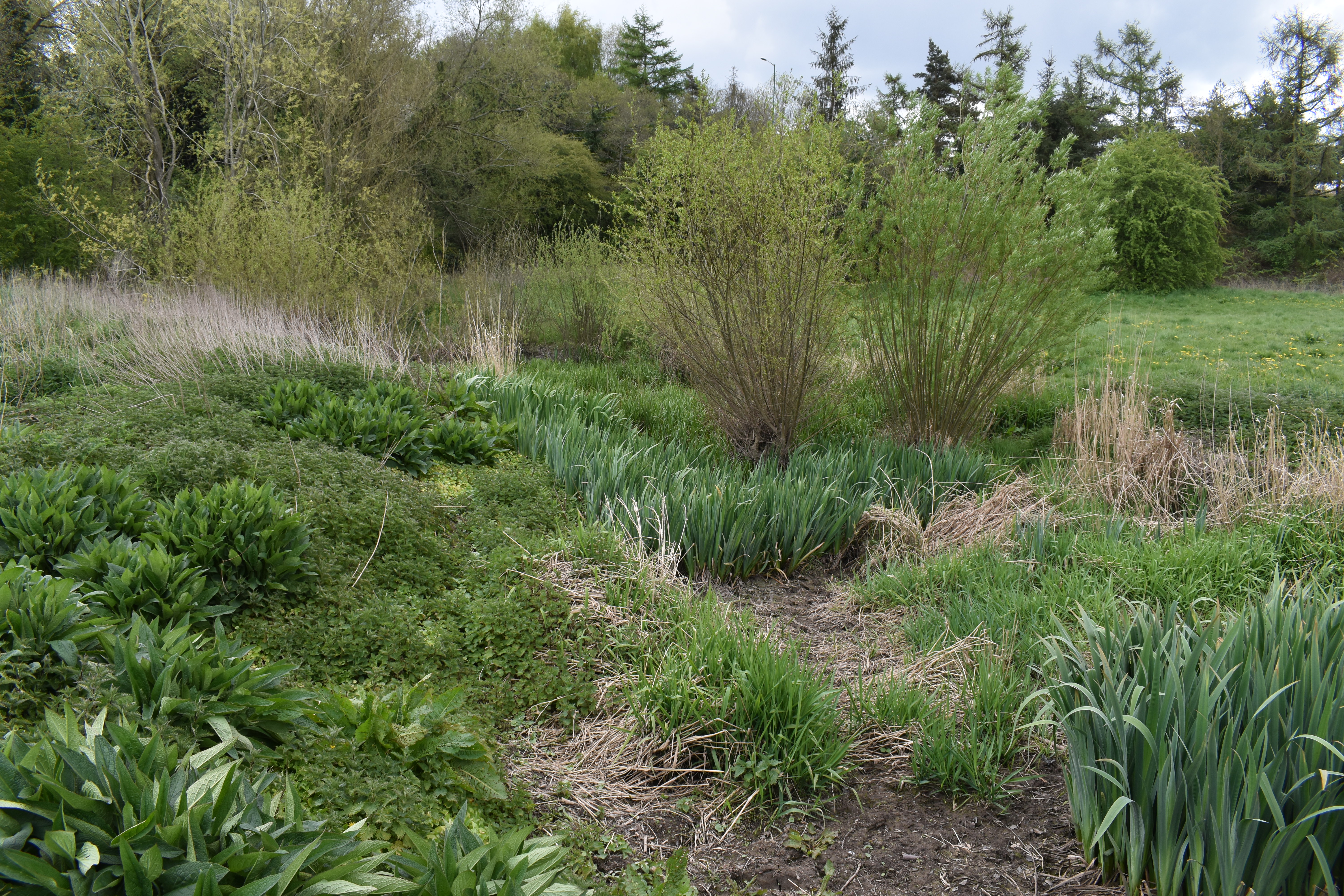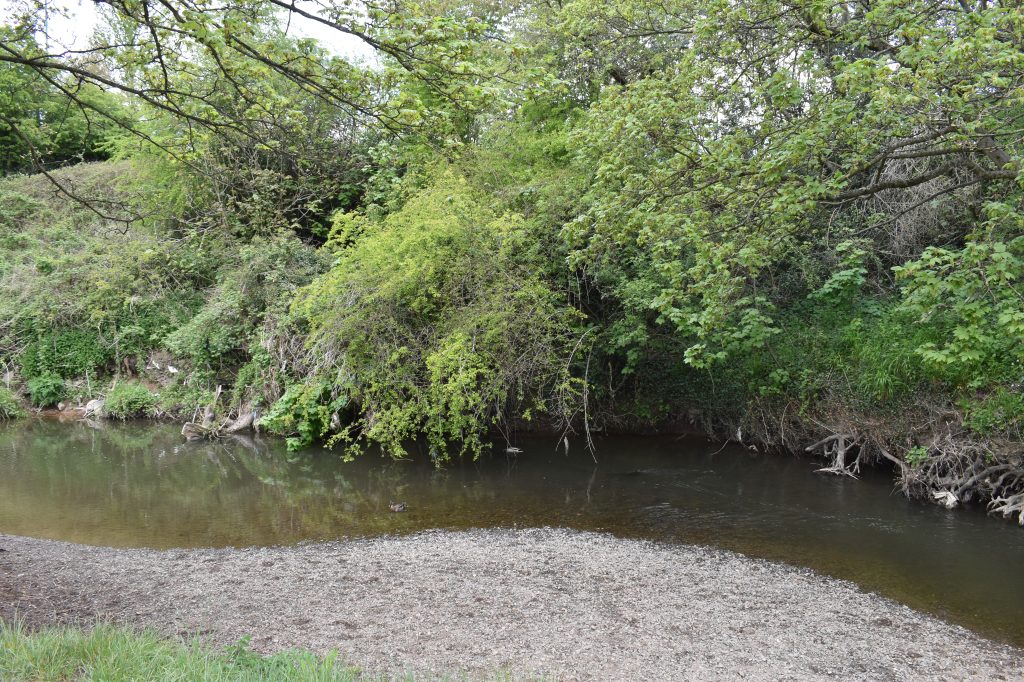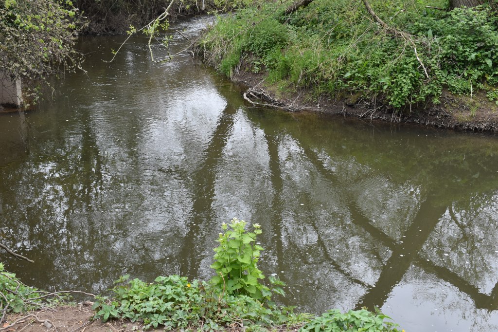 We began to notice that traffic noise started increasing as we approached the first of several tunnels and bridges we were to encounter along the way. These underpasses are such miserable places! When we were met by green pastureland on exiting this dark tube it felt so cheering. We began to get better views of the brook itself too. We found a dried up side stream coming across the grassland and providing a habitat for marsh/bog plants.