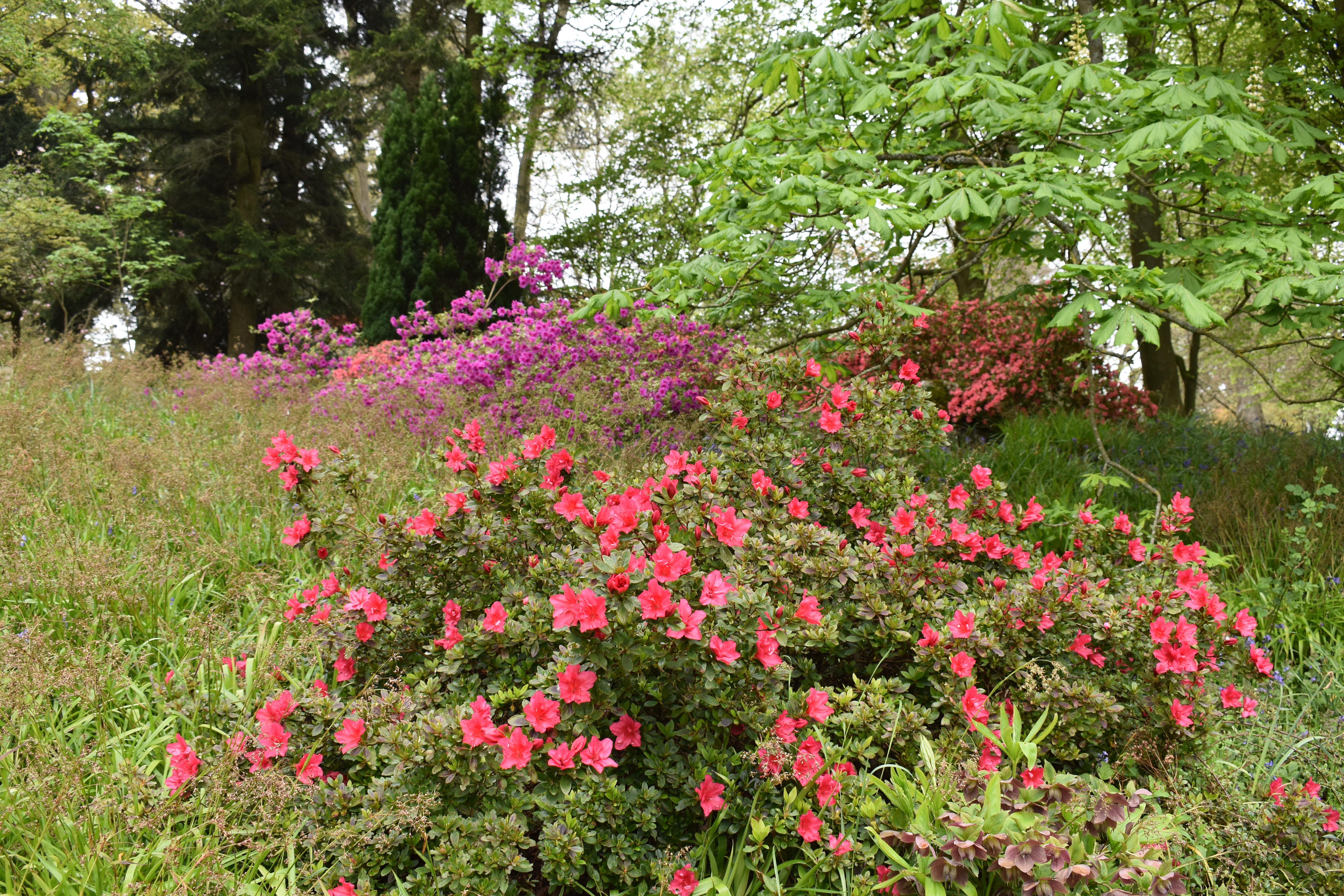 Just a few minutes into our walk brightly coloured azaleas and rhododendrons gave us a lively patch of colour beneath tall mature trees.